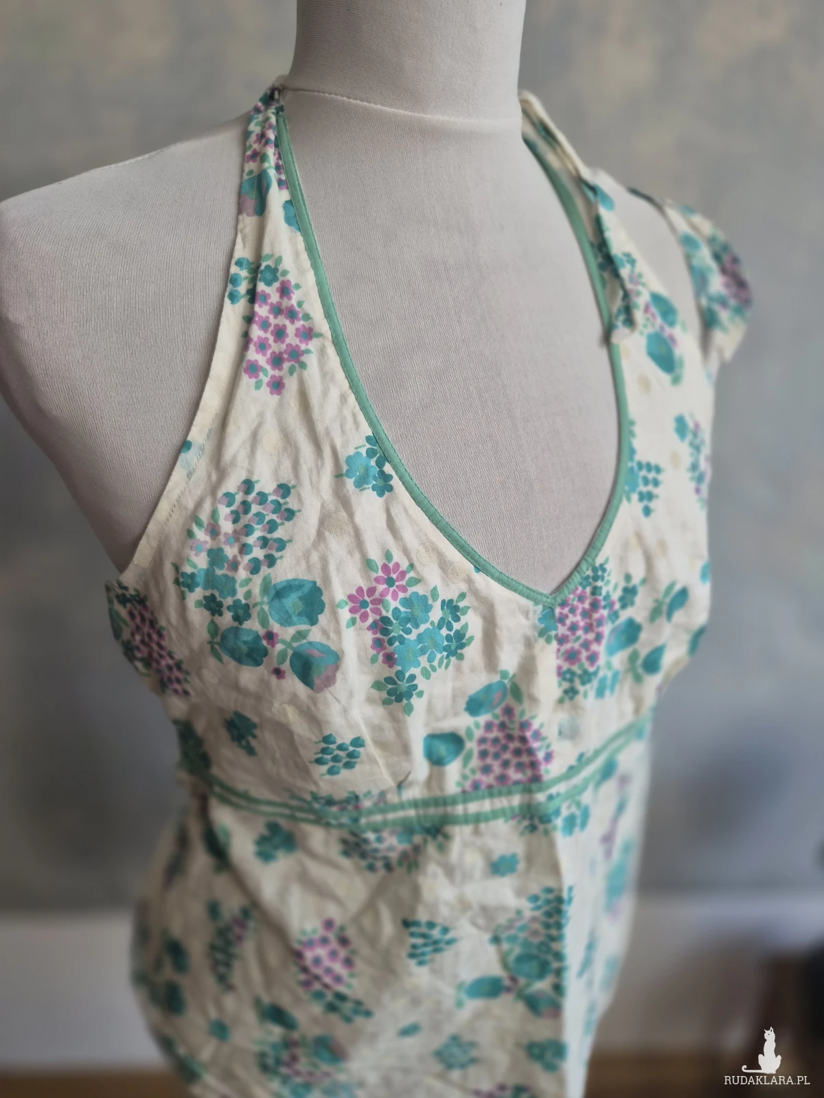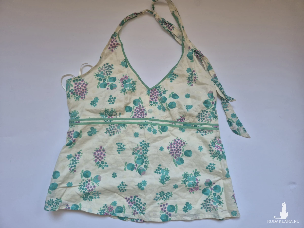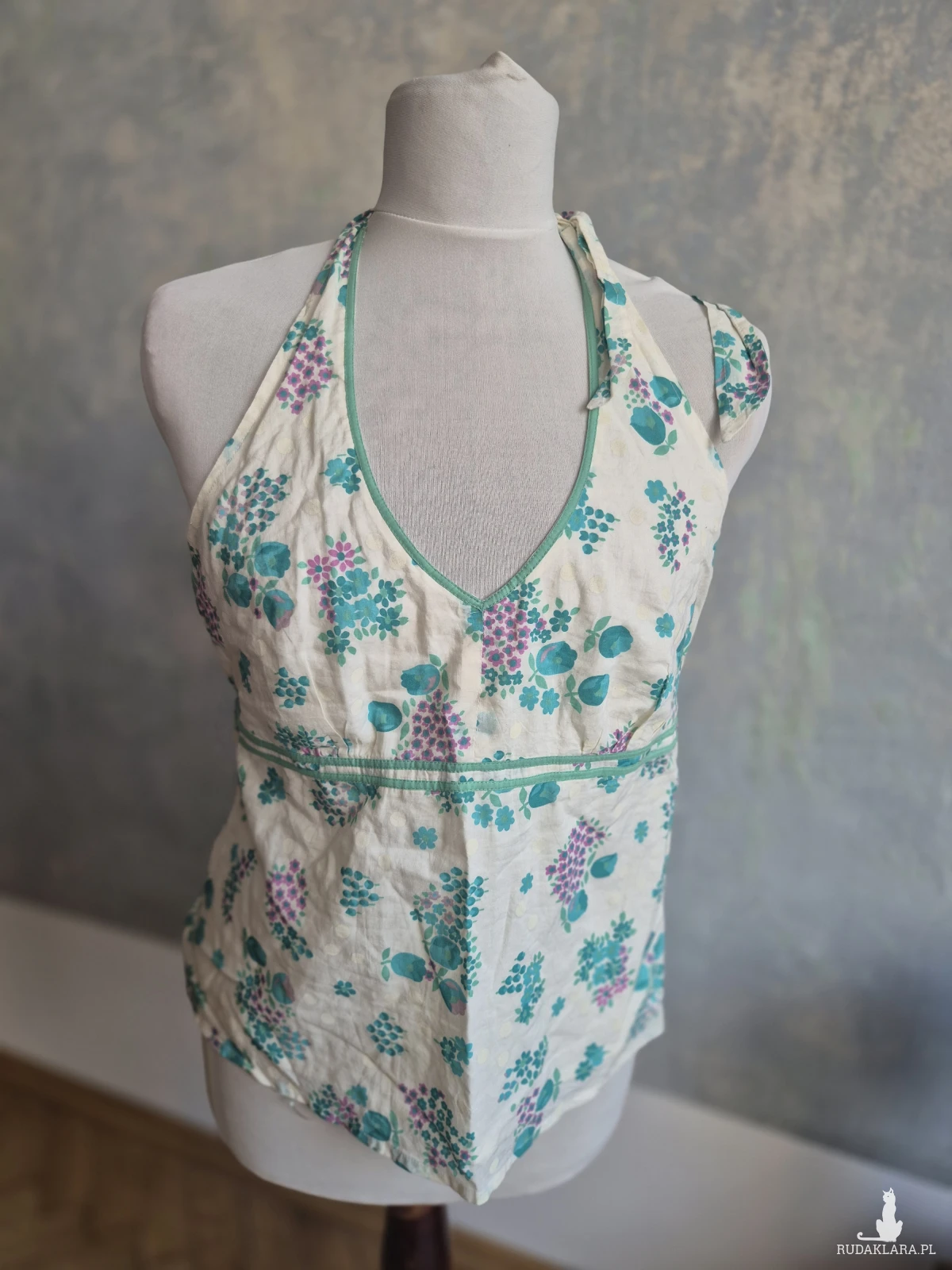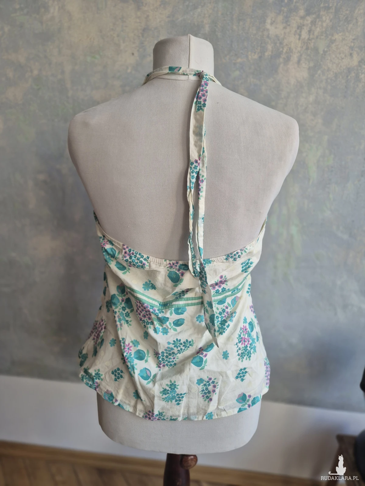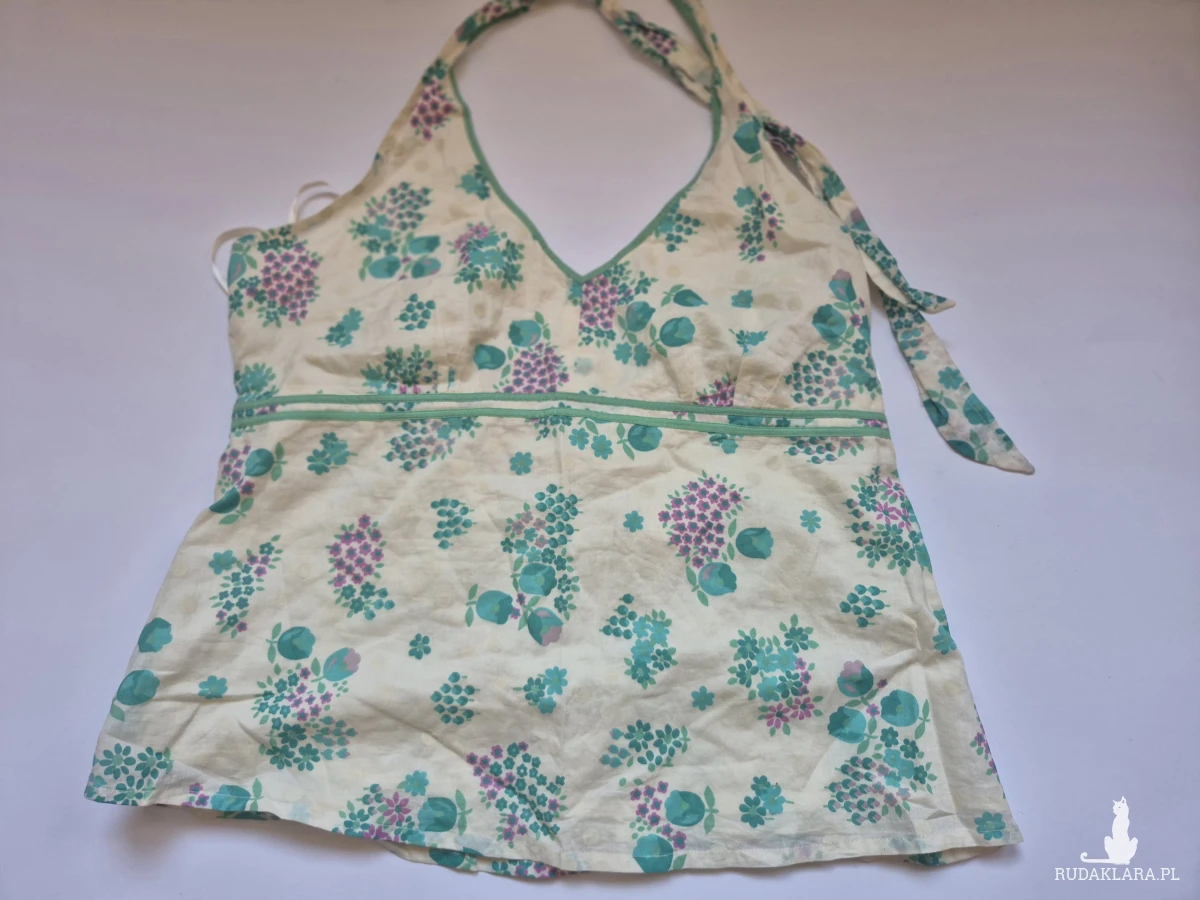 Bawełniany Top bez pleców rozmiar 42 firma Oasis zapinany z boku na suwak długość całości 50 cm pod biustem 86 cm Jest kapitalny w stylu retro