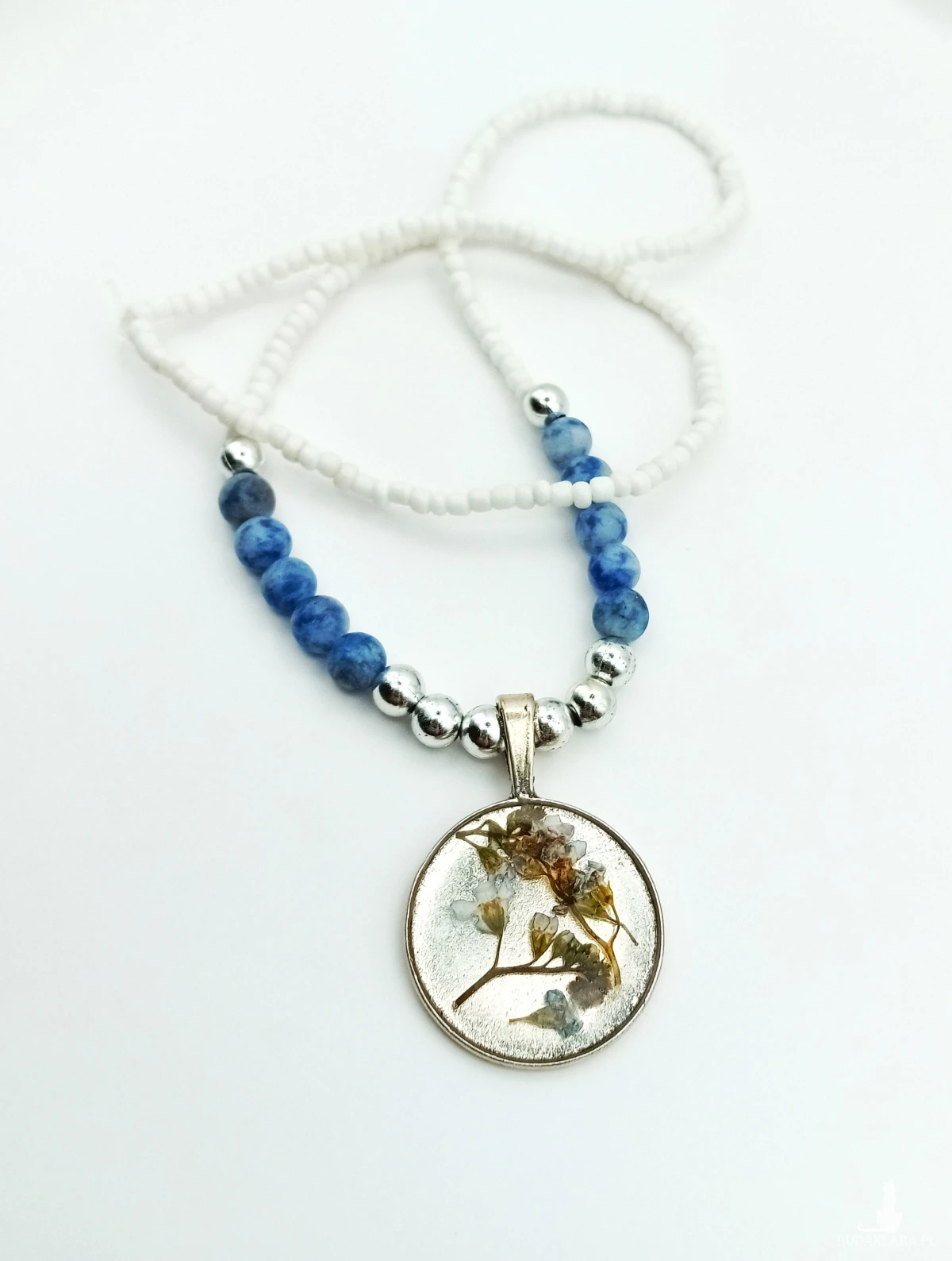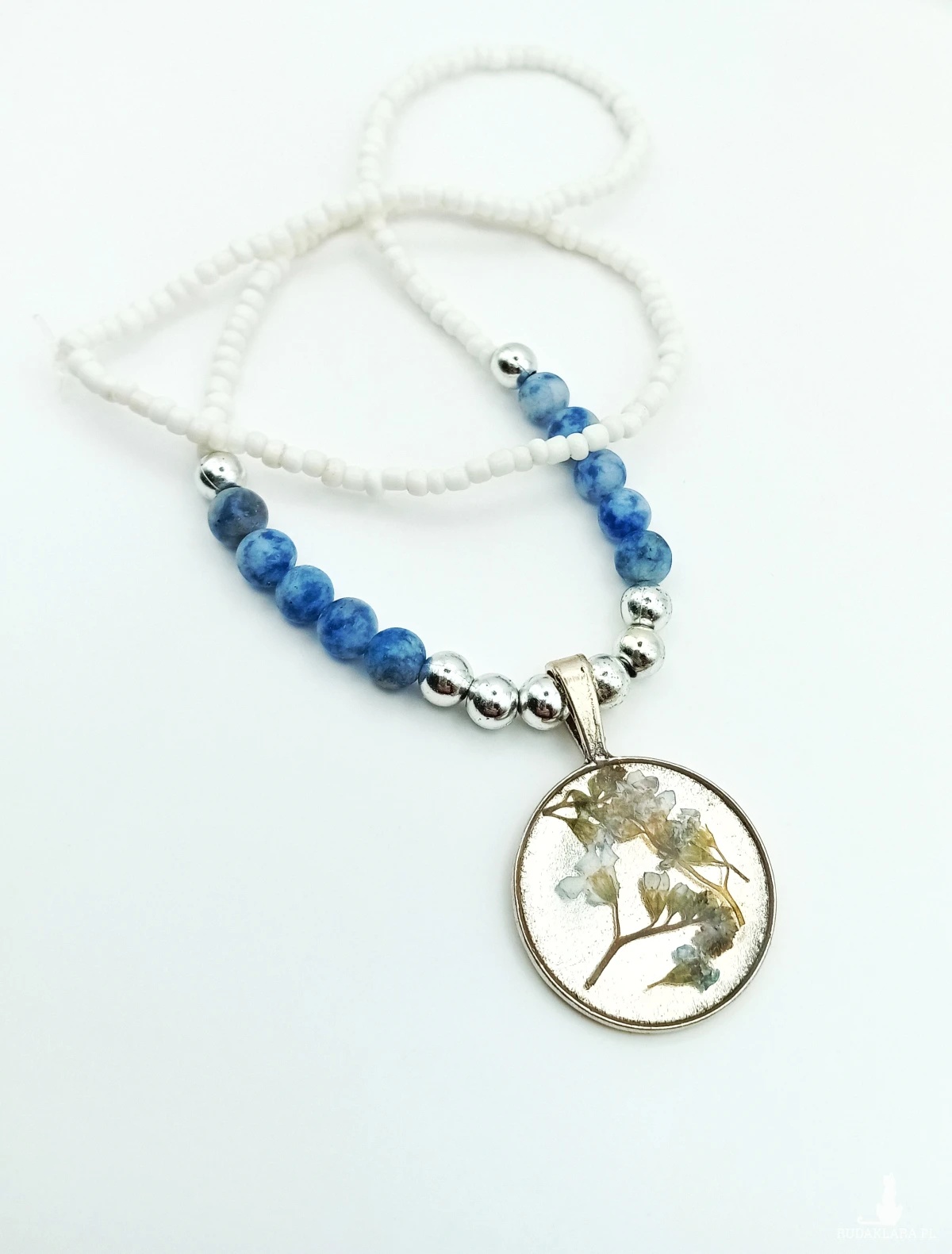 #NaszyjnikHandmade #Niezapominajka #BlueSpotStone #StylBoho #BiżuteriaArtystyczna #ŻywicaEpoksydowa #NaturalnaElegancja #PrezentIdealny 💙✨