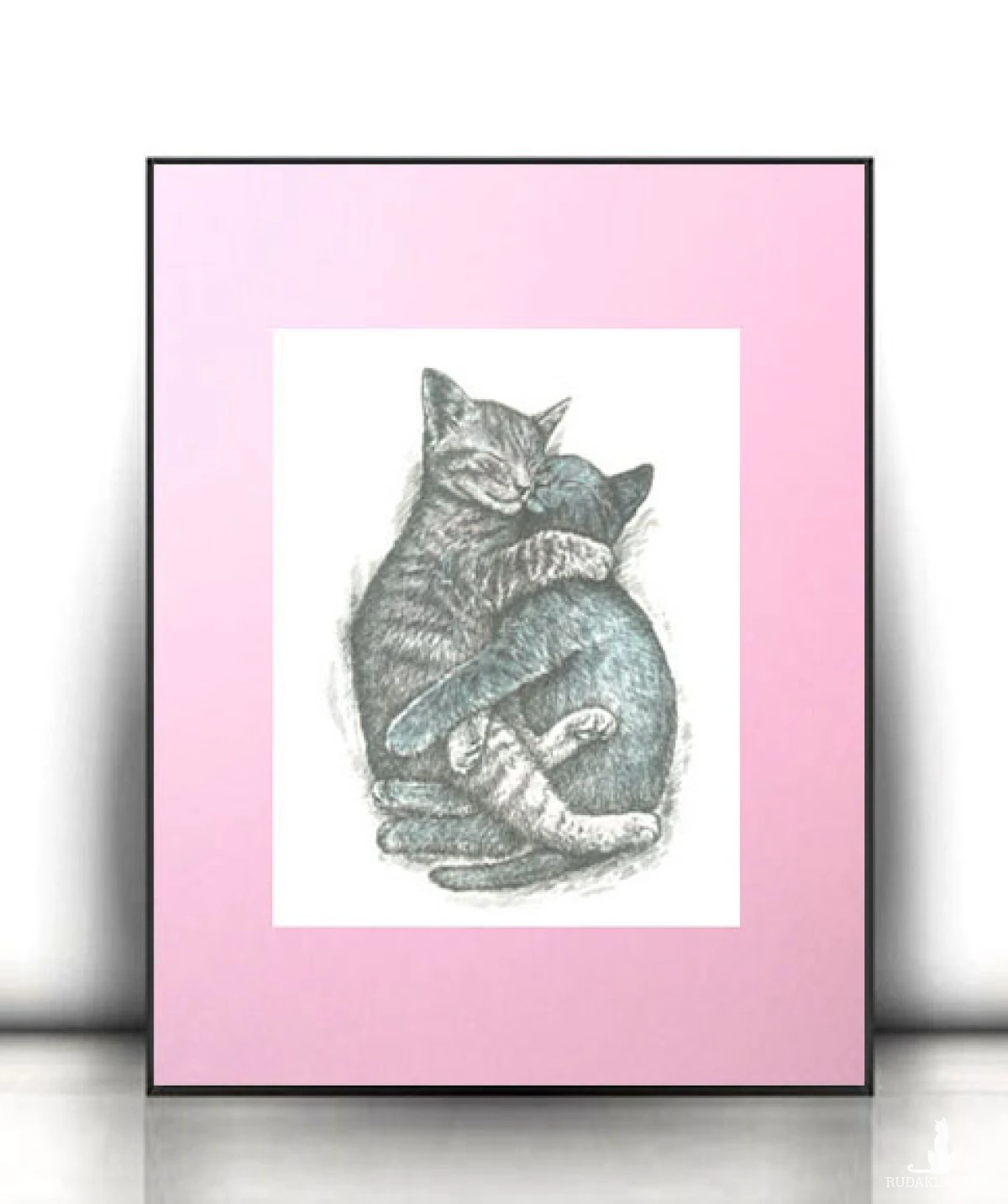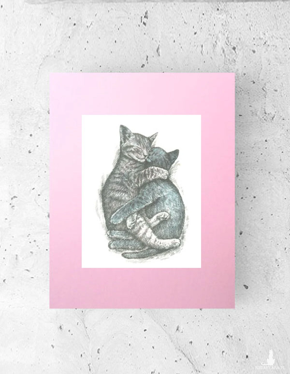Nowy plakat w stylu retro, grafika z kotkami na jasnoróżowym tle, gruby kartonik 21 x 30 cm. Poster do samodzielnej oprawy. Obrazek wystarczy tylko