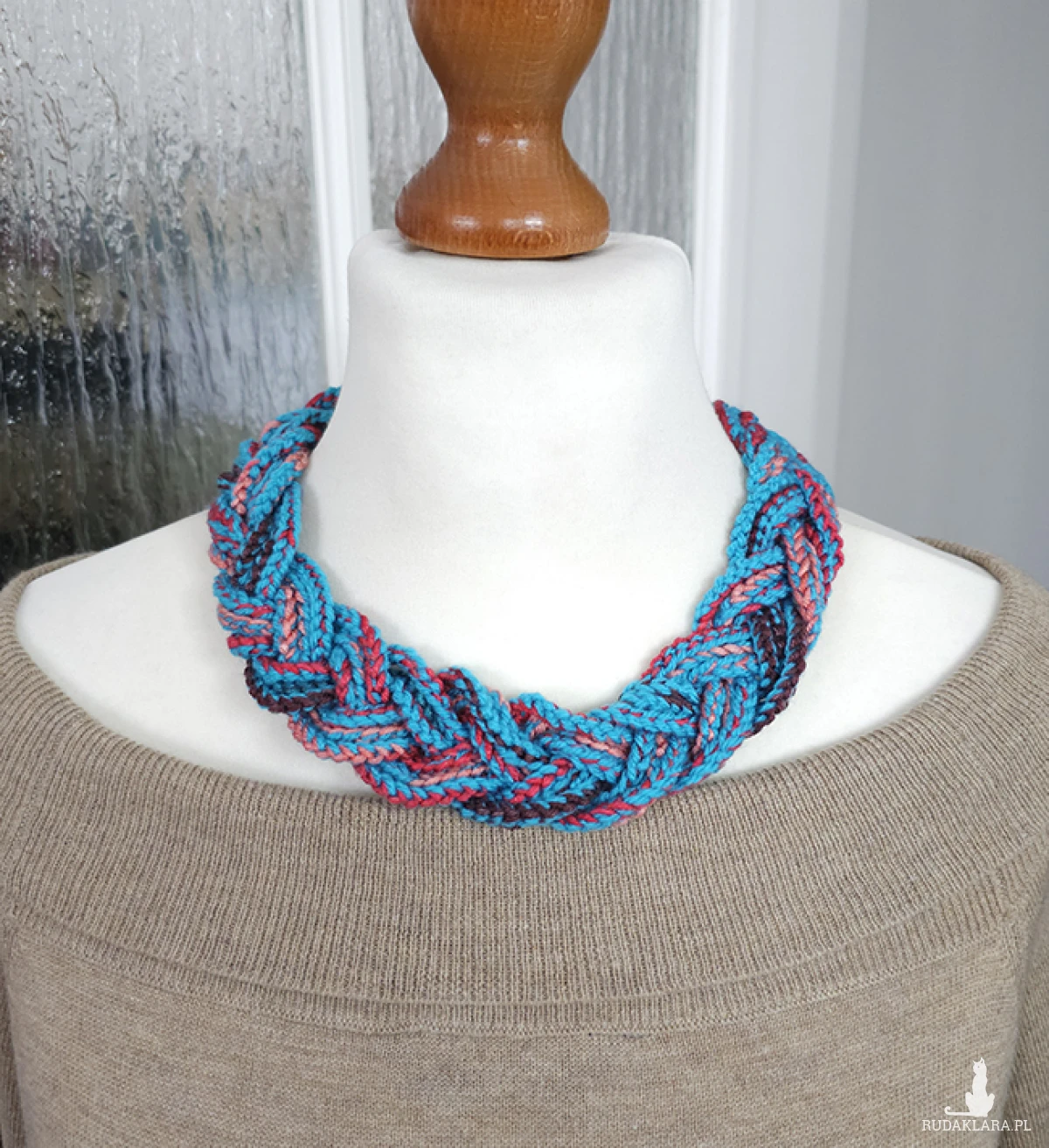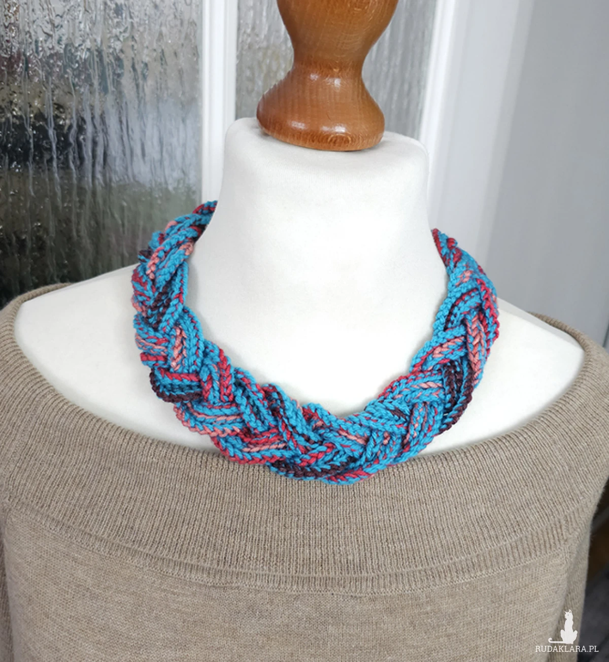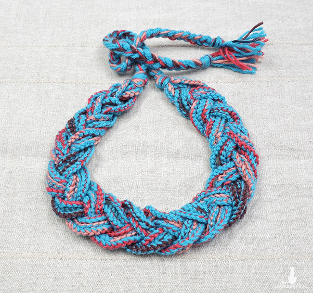 Naszyjnik wykonany z 9 szt. ręcznie plecionych sznurków, splecionych w luźny warkocz.
