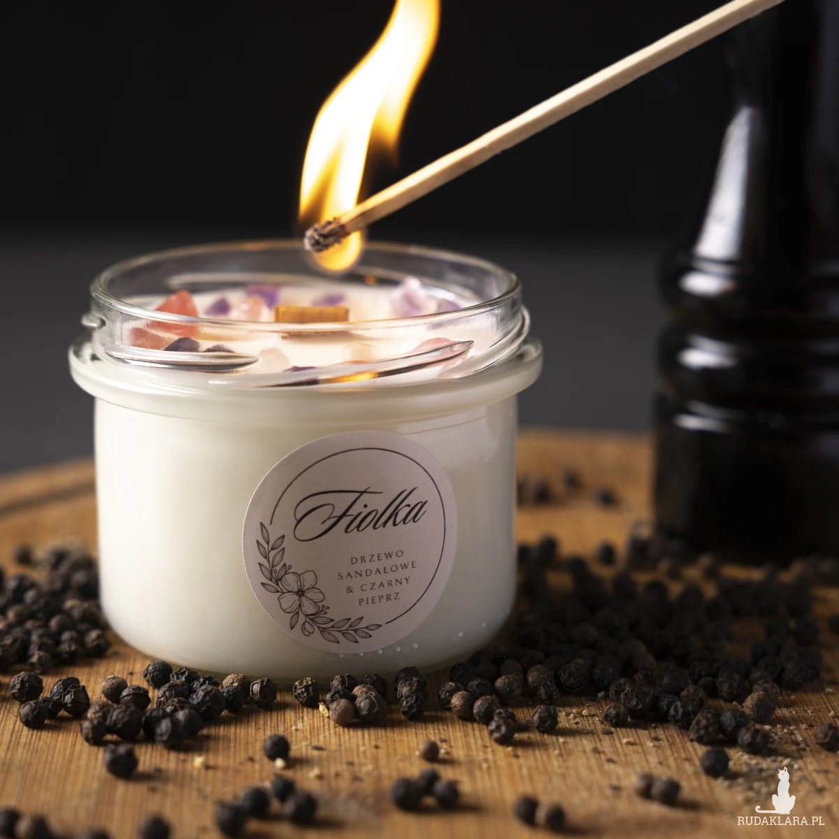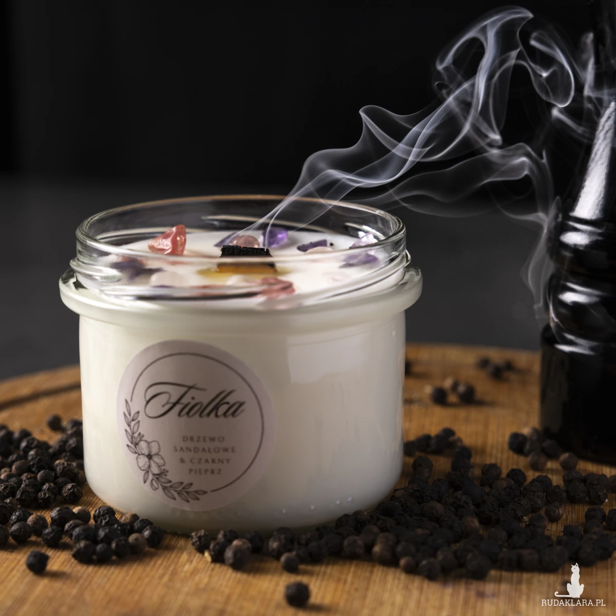 Świece sojowe wykonane z ogromnym sercem! 100% wosk sojowy. Pojemność słoika 235 mlŚwiece pakowane są w białe pudełko z wypełnieniem, zapałkami oraz instrukcja palenia. Całości uroku dodaje kokardka.