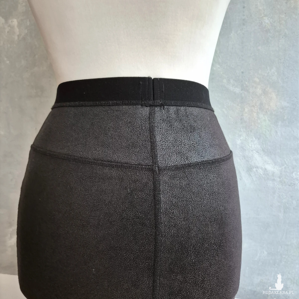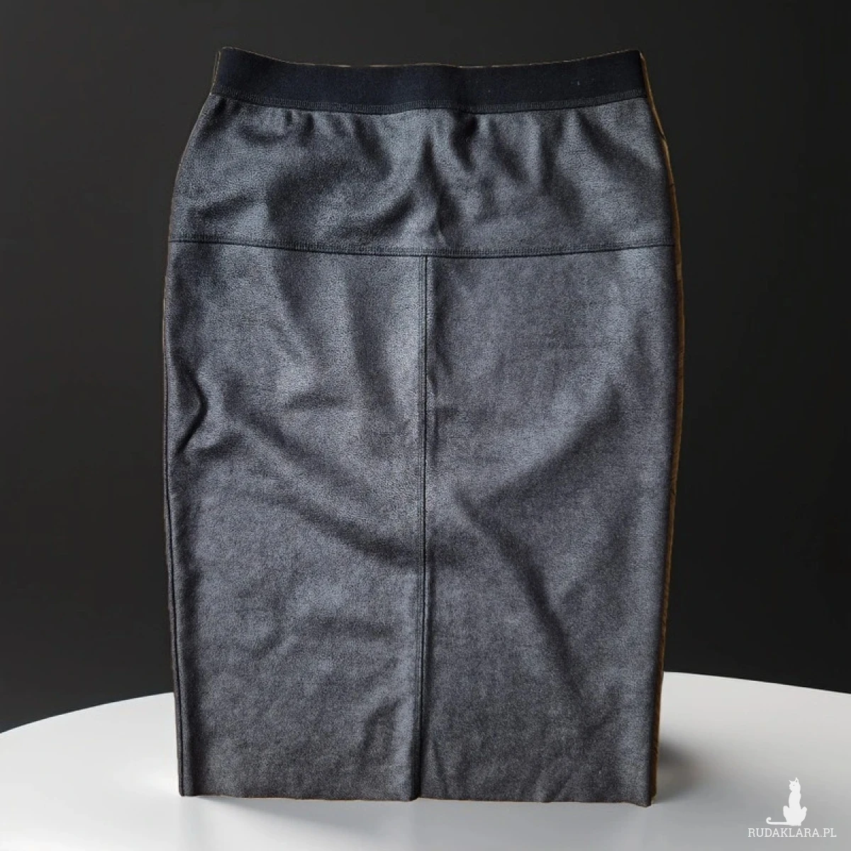 Rozmiar M, materiał w pasie gumka rozciąga się do 100 cm biodra obwód 102 cm długość całości 67 cm spódnica bardzo elegancka sexy z Włoch,wygląda skóra ale jest to rozciągliwa dzianina z elastanem Spójrz na metkę