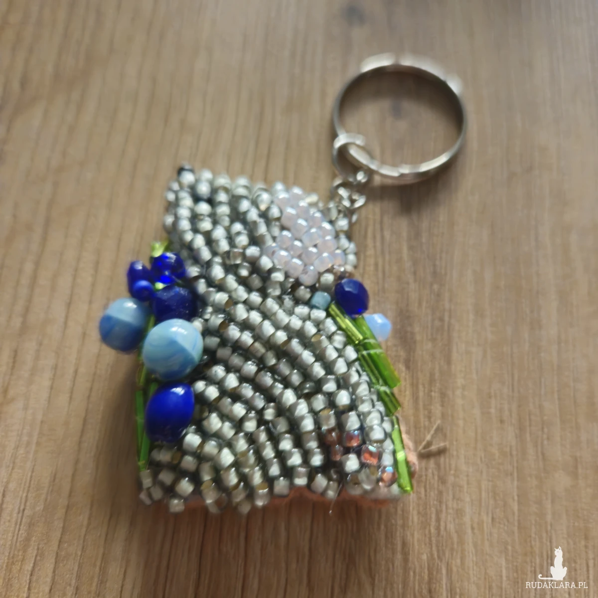 Brelok z haftu koralikowego myszka w niezapominajkach