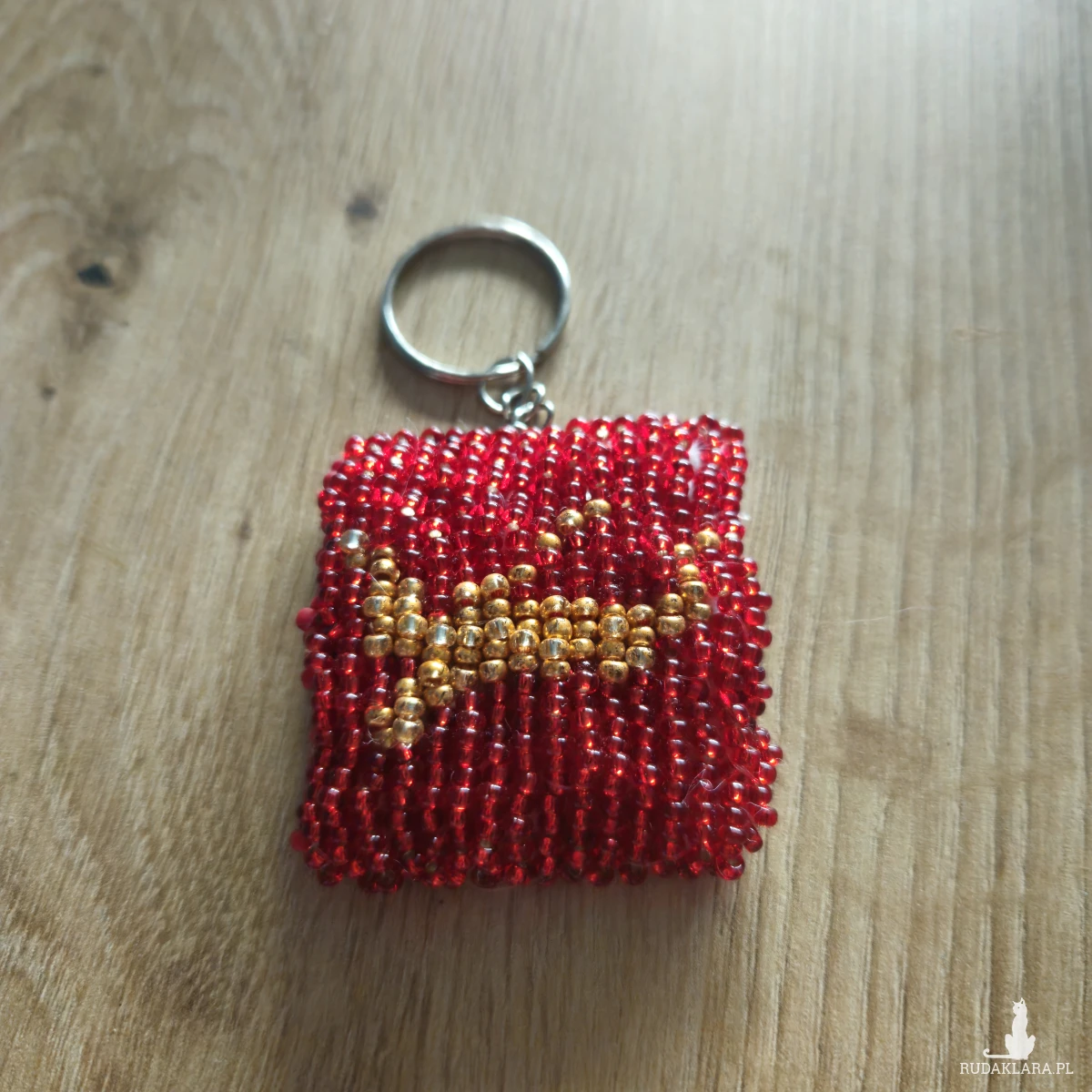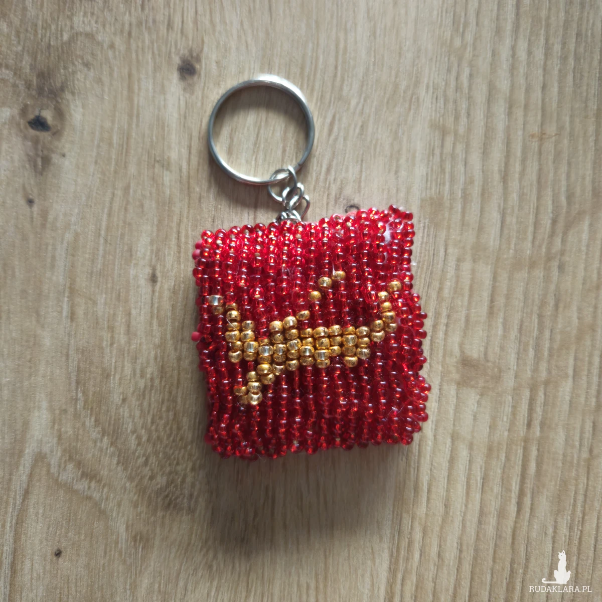 Brelok z haftu koralikowego brelok z herbem Łodzi