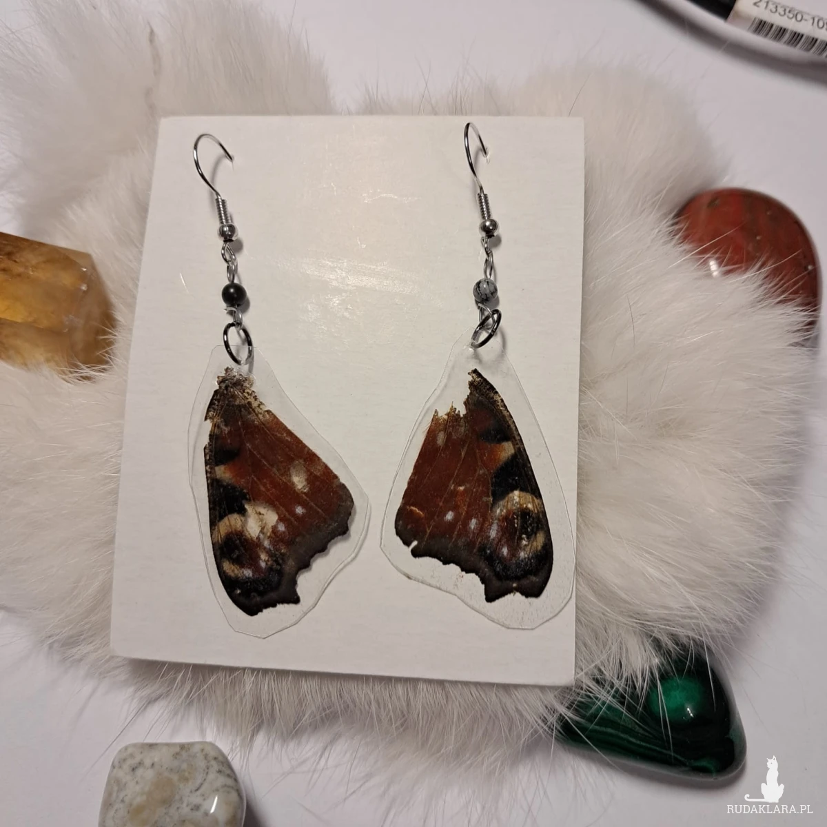 kolczyki ze skrzydeł rusałki pawik (pozyskanym etycznie)