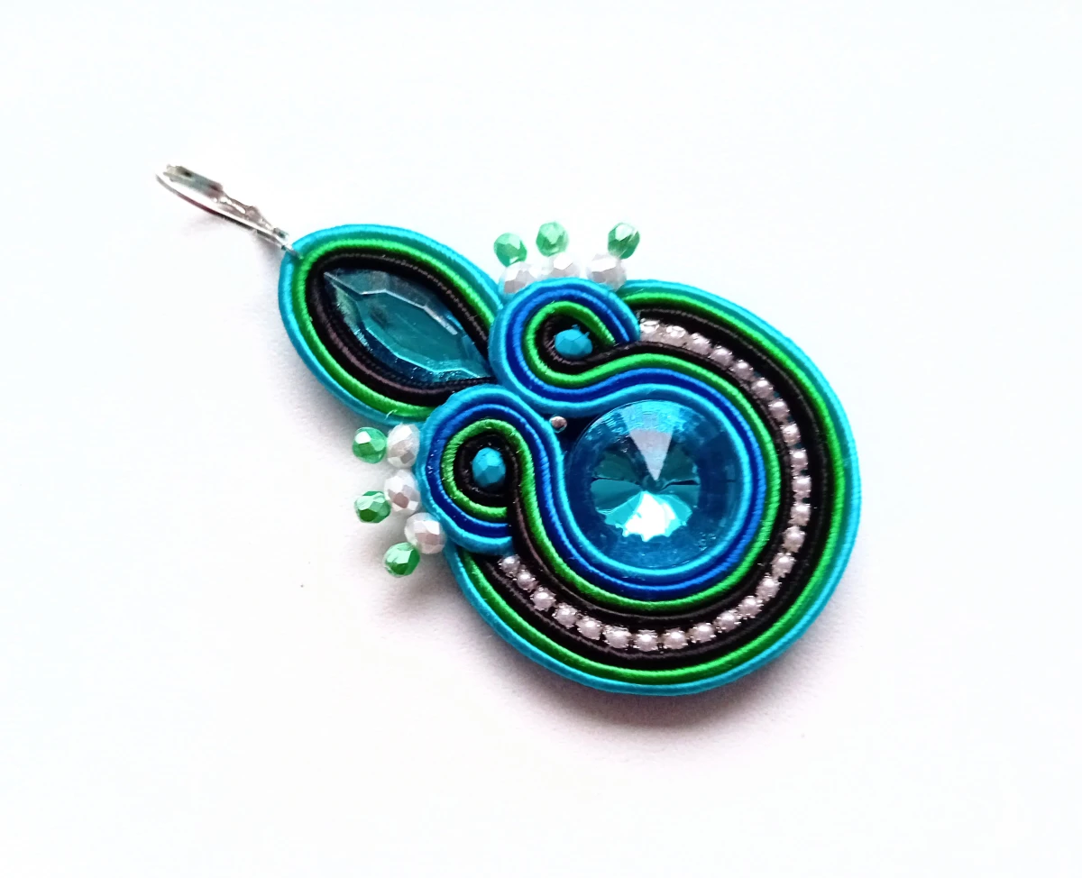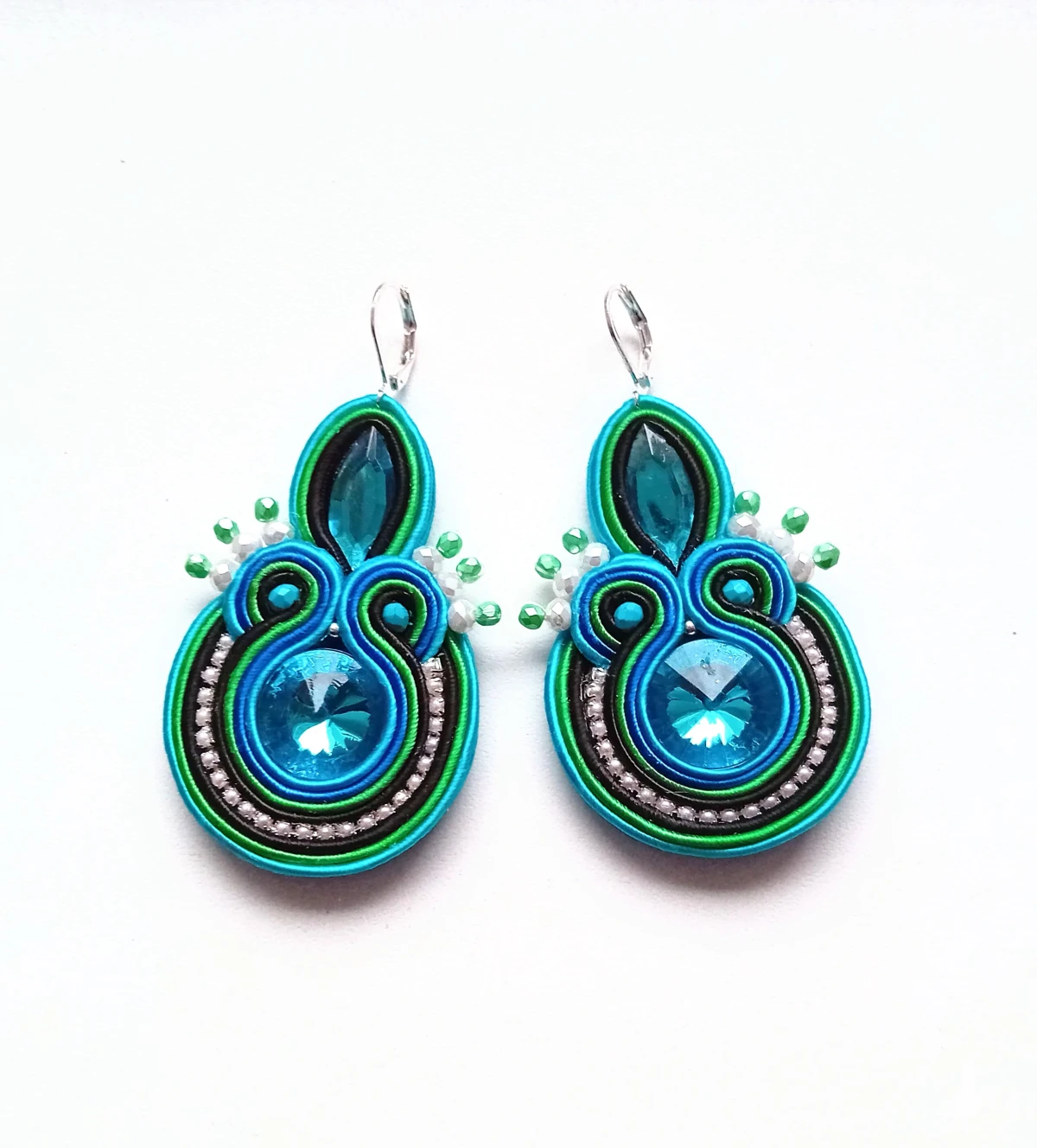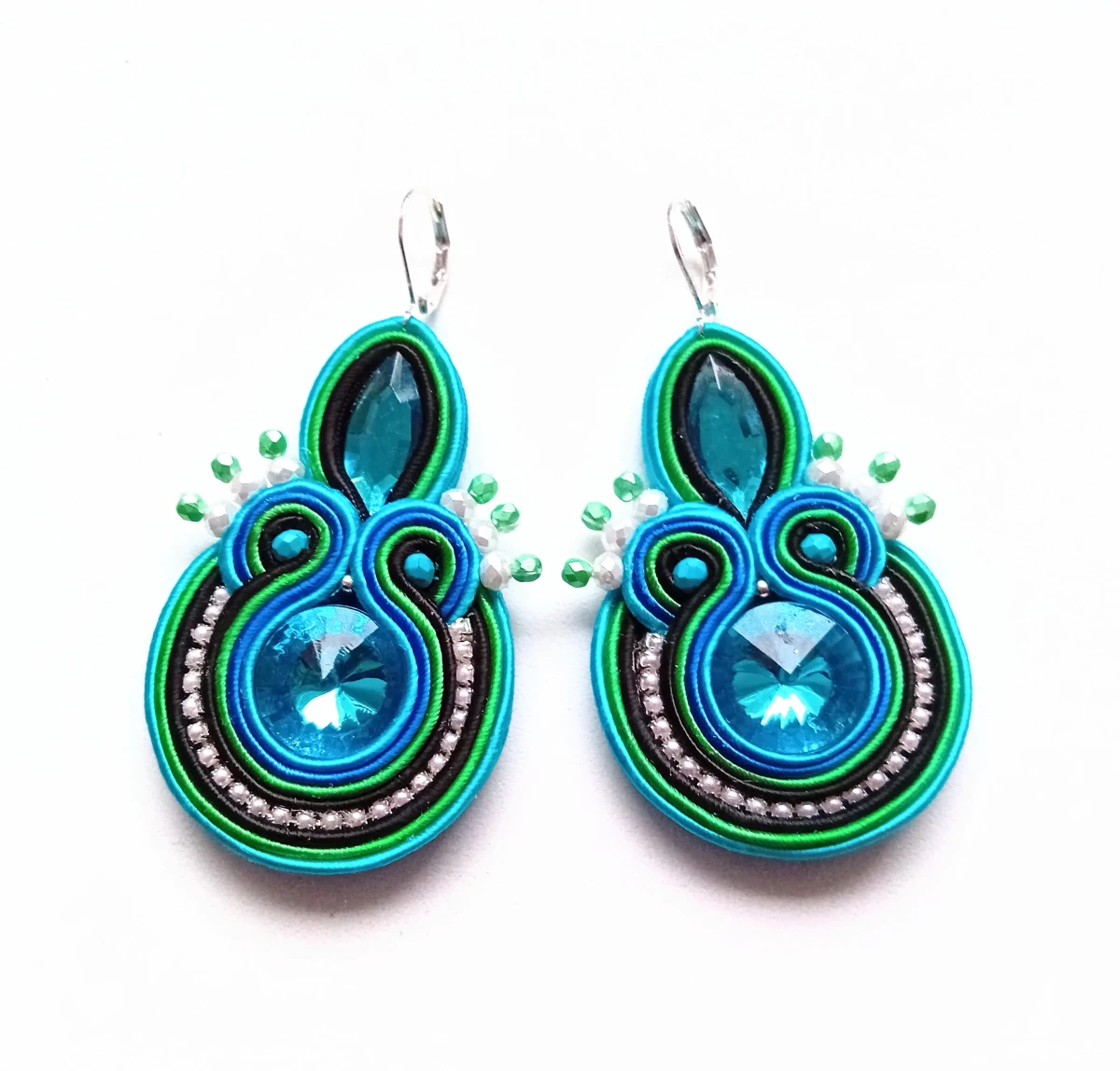 Materiał: kryształowy kaboszon, japońskie koraliki Toho, sutasz,taśma perełkowa, koraliki Fire Polish.