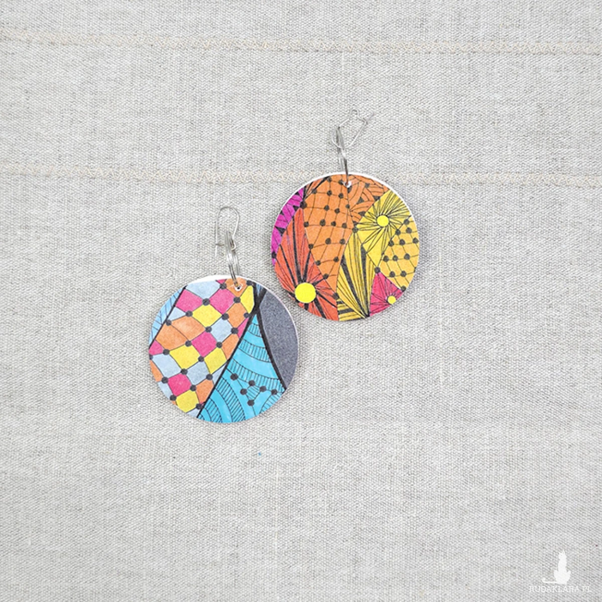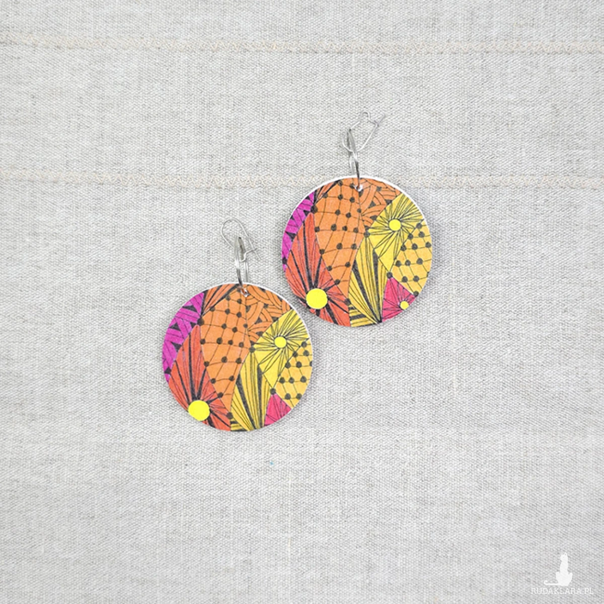 6490 kolorowe, niepowtarzalne, duże, dwustronne kolczyki; 4 w 1; pomarańczowe, żółte, abstrakcja