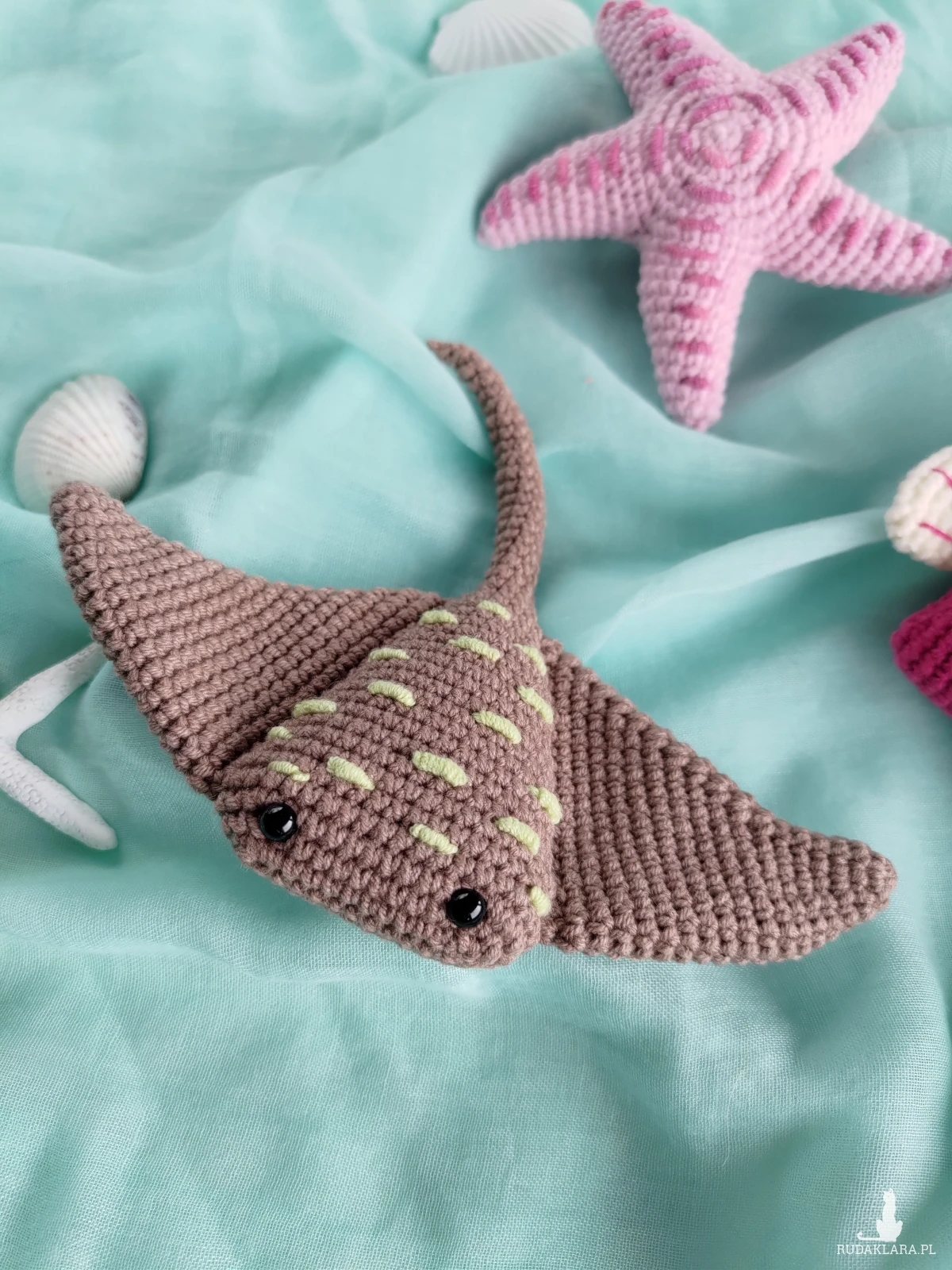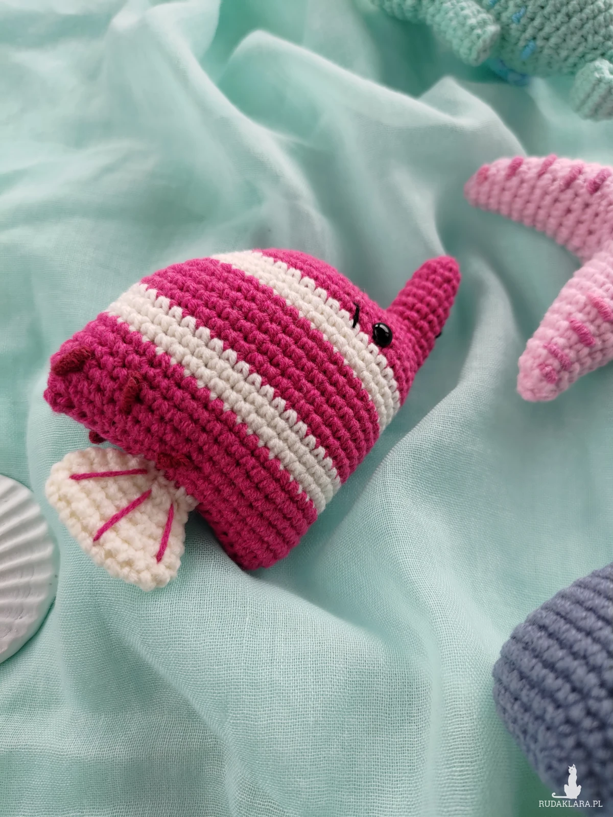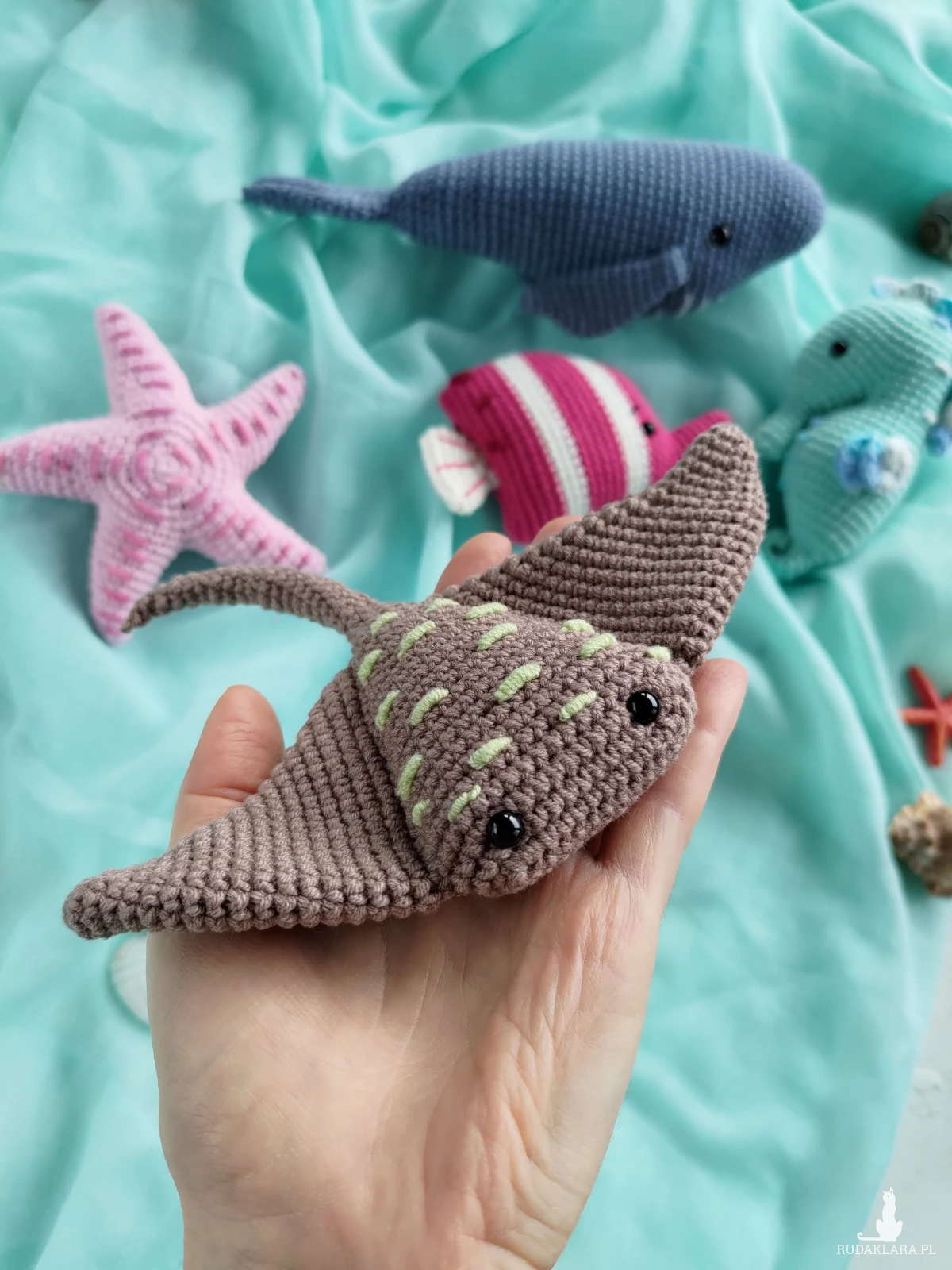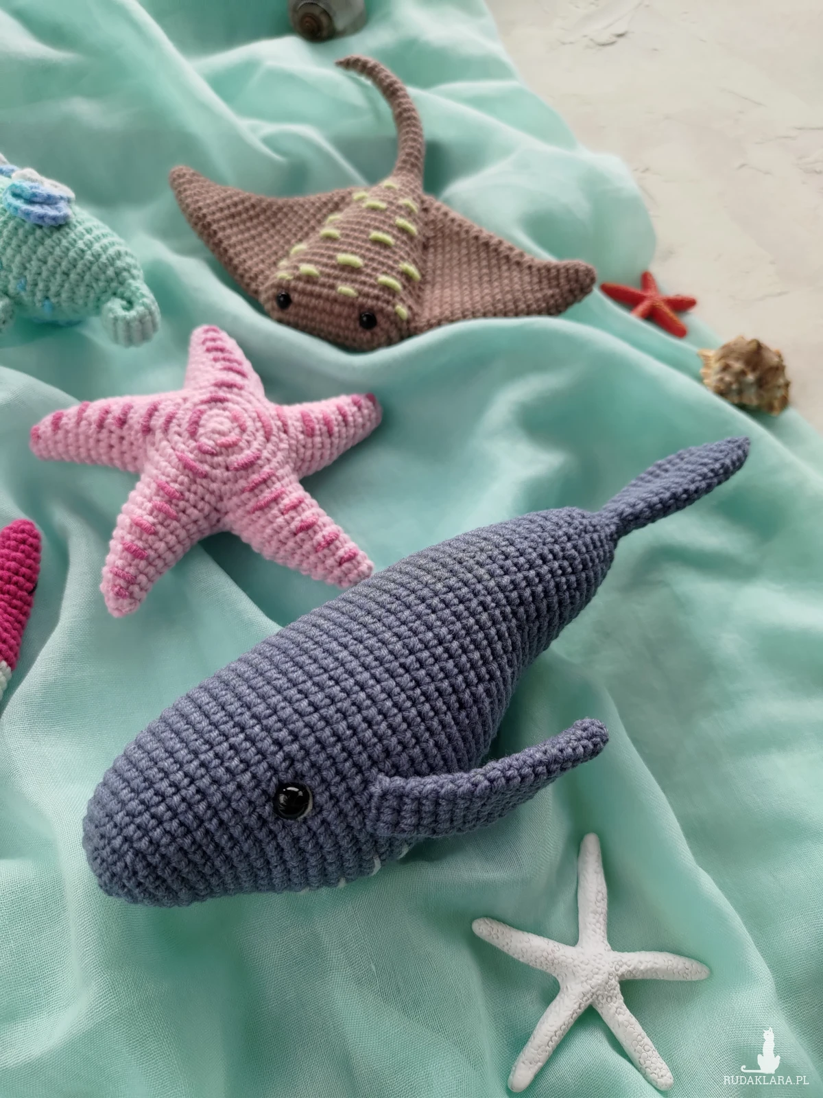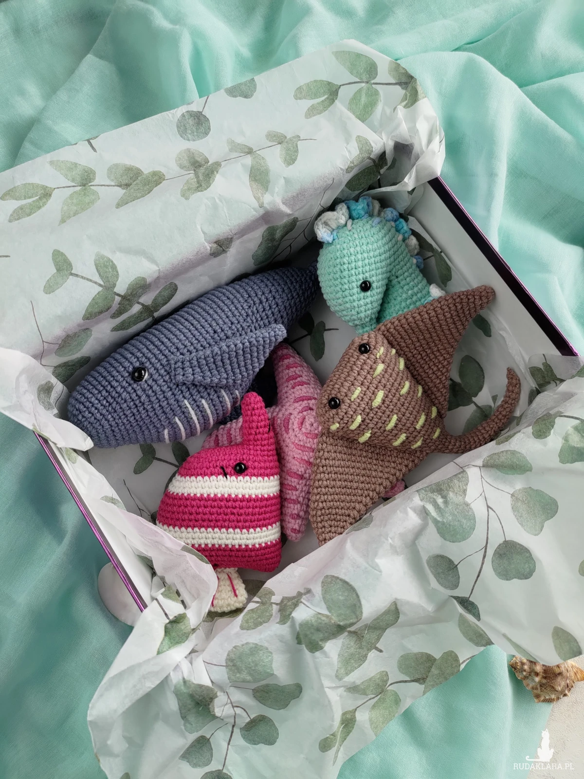 Morskie zwierzęta nie są zbyt małe, co sprawia, że są bardziej zauważalne i mniej prawdopodobne, że zgubią się w dziecięcym pokoju. Zwierzęta wykonane są z wysokiej jakości włóczki półbawełnianej (55% bawełny, 45% akrylu).