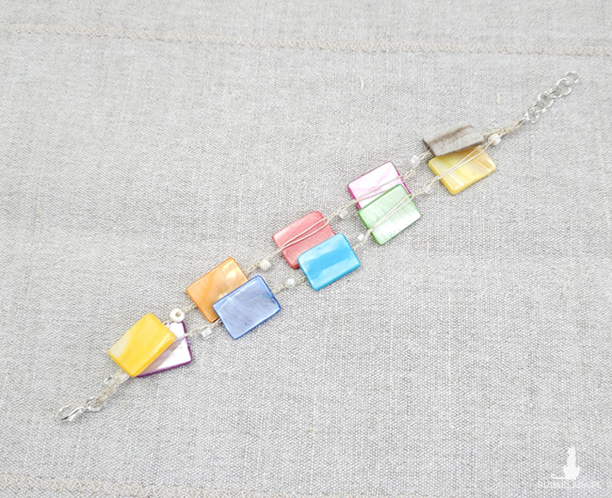 6242 kolorowa, tęczowa bransoletka; masa perłowa, szkło