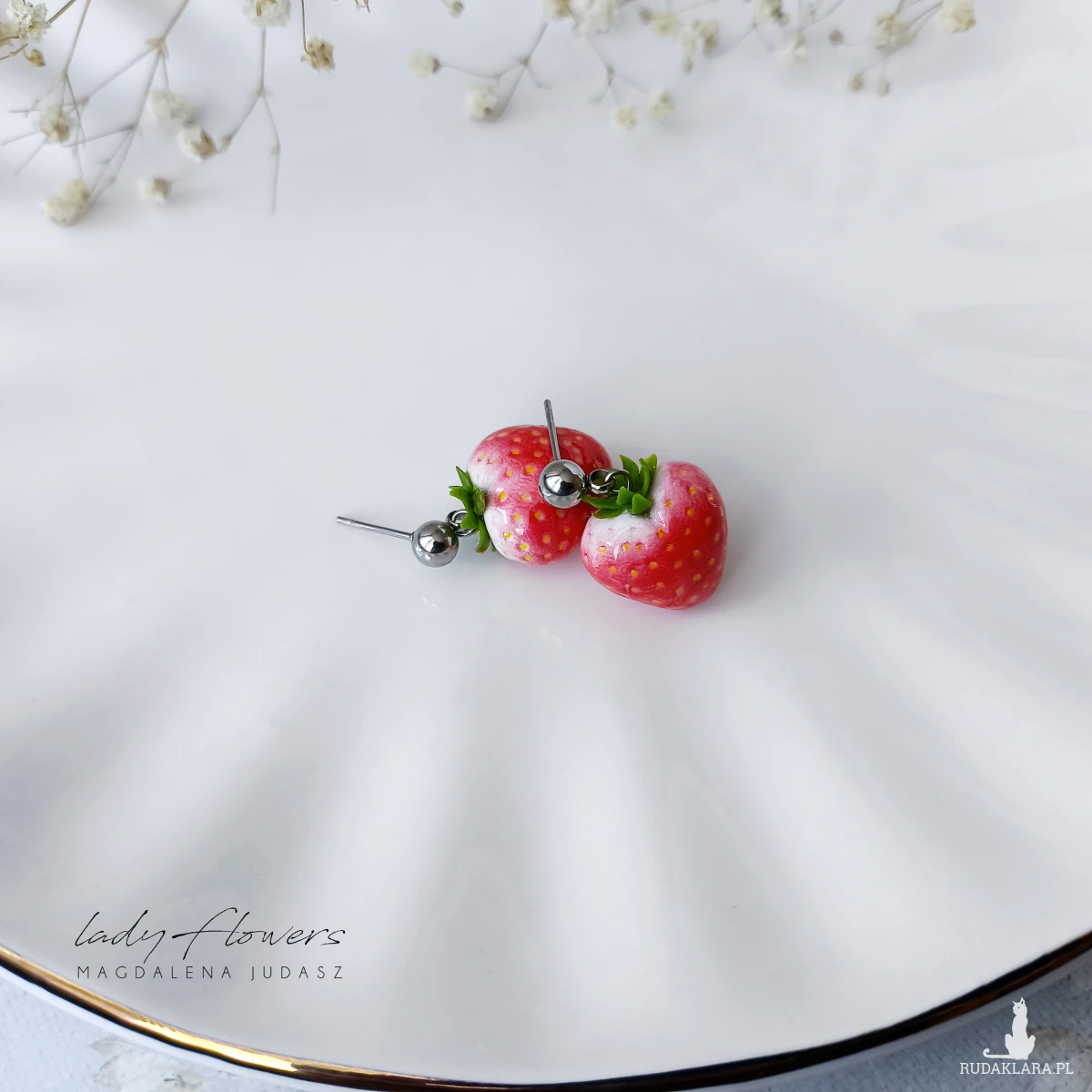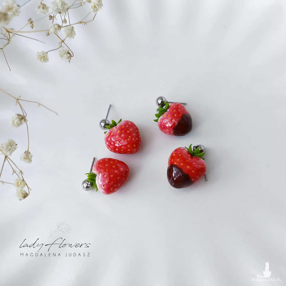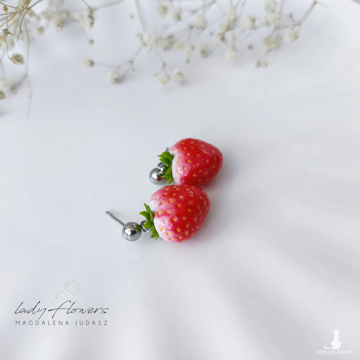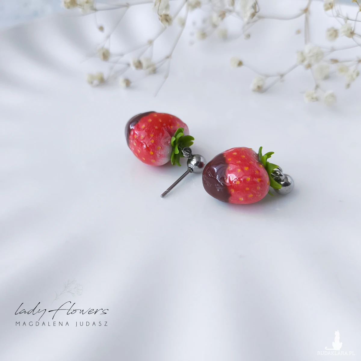 Urocze ręcznie wykonane kolczyki z truskawkami.