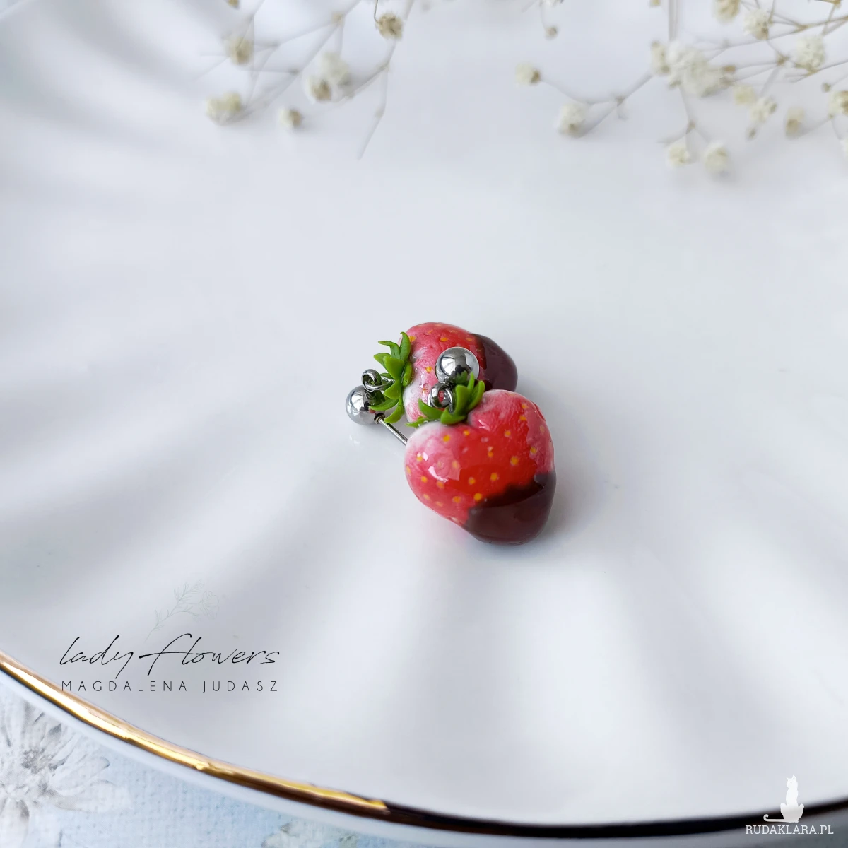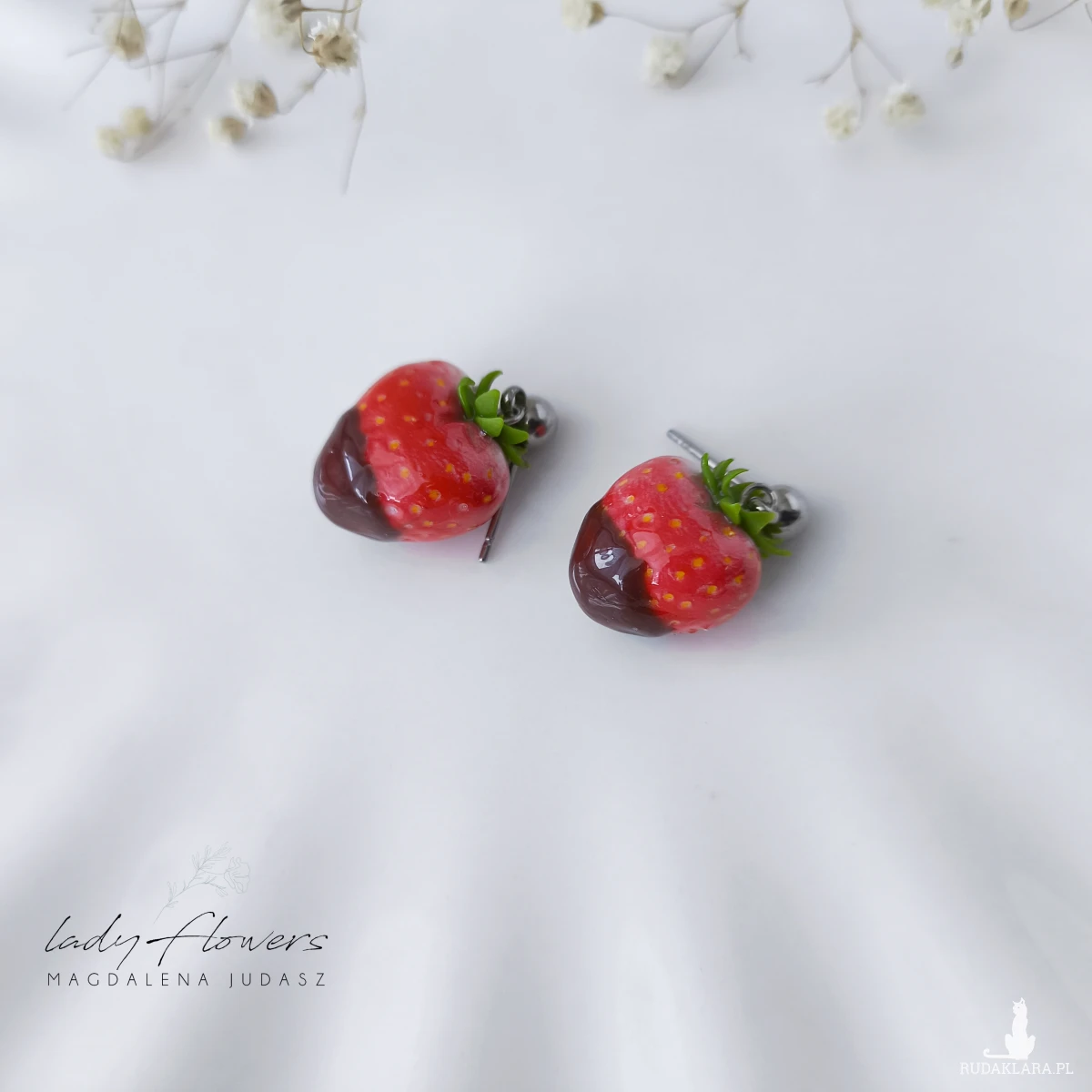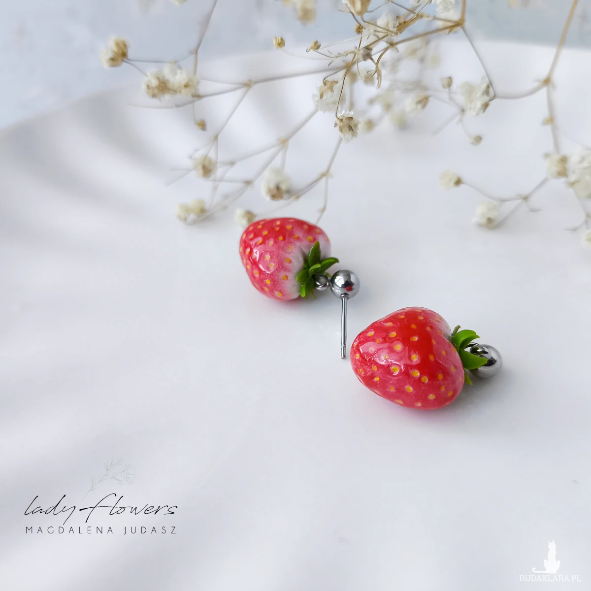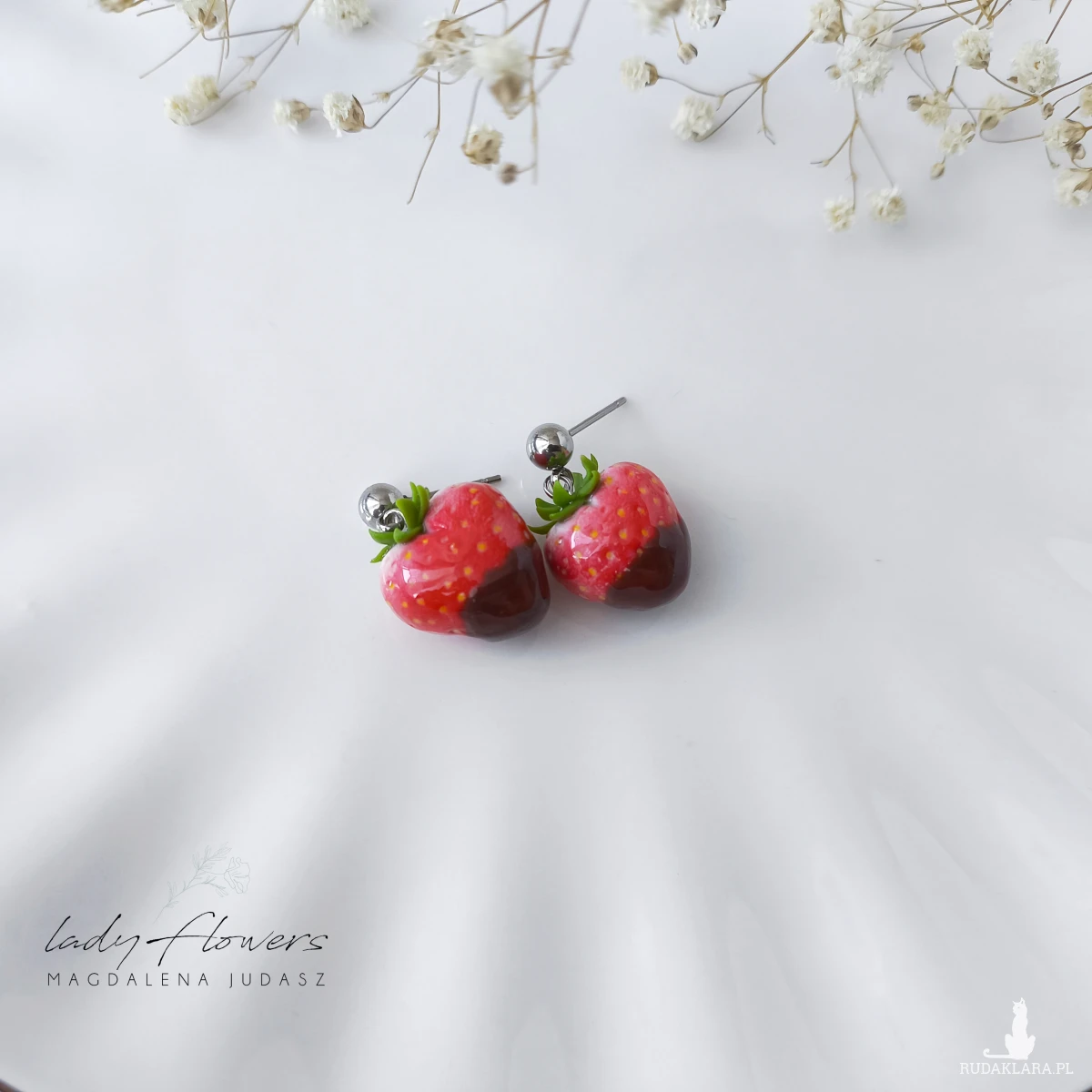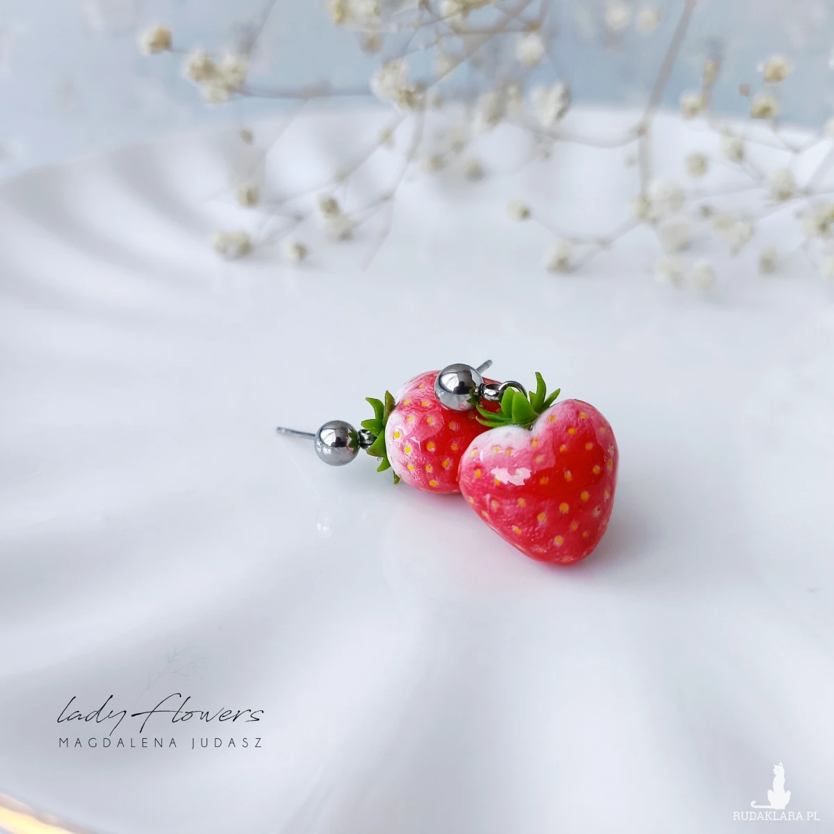 Urocze ręcznie wykonane kolczyki z truskawkami.