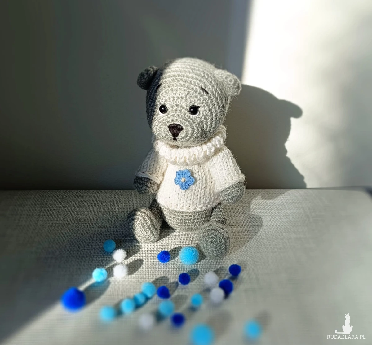 Mis i sweterek są wykonane ręcznie - miś za pomocą szydełka, a sweterek na drutach. Bardzo równiutko, z dużą starannością, niezwykle precyzyjnie i ogromną dbałością o każdy szczegół. Ręcznie dziergane z zachowaniem wszelkich zasad higieny.