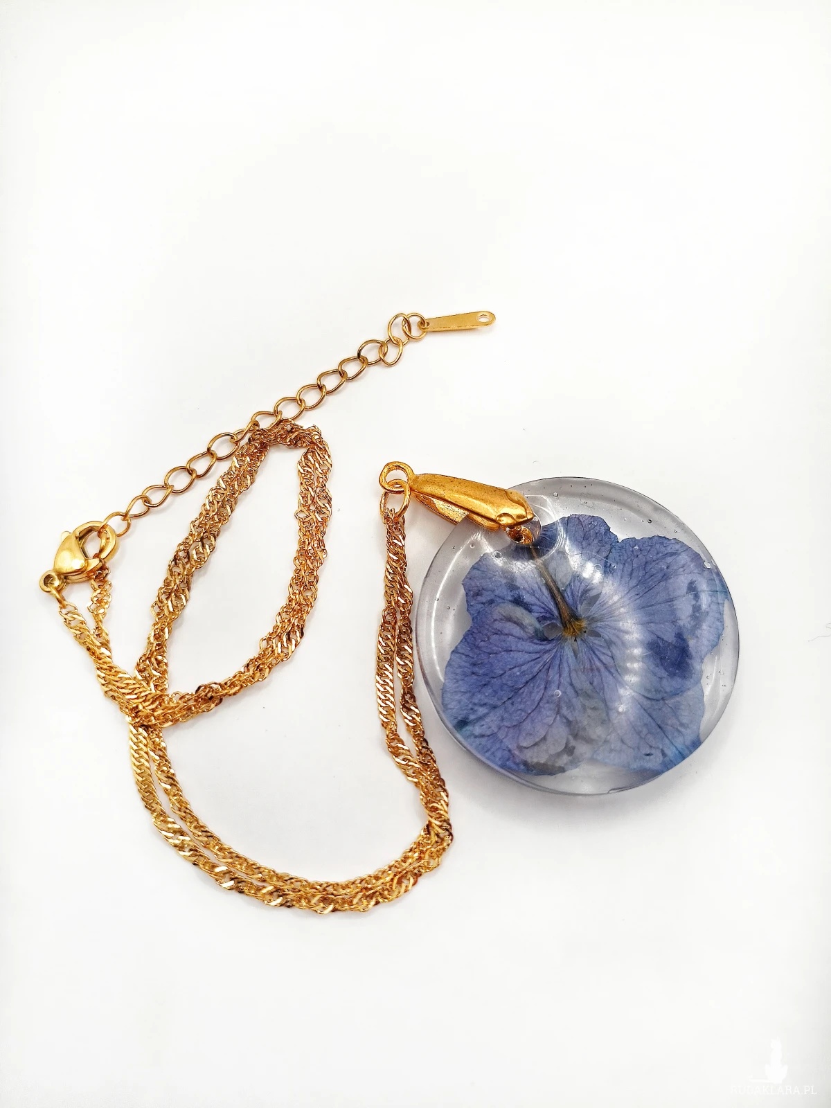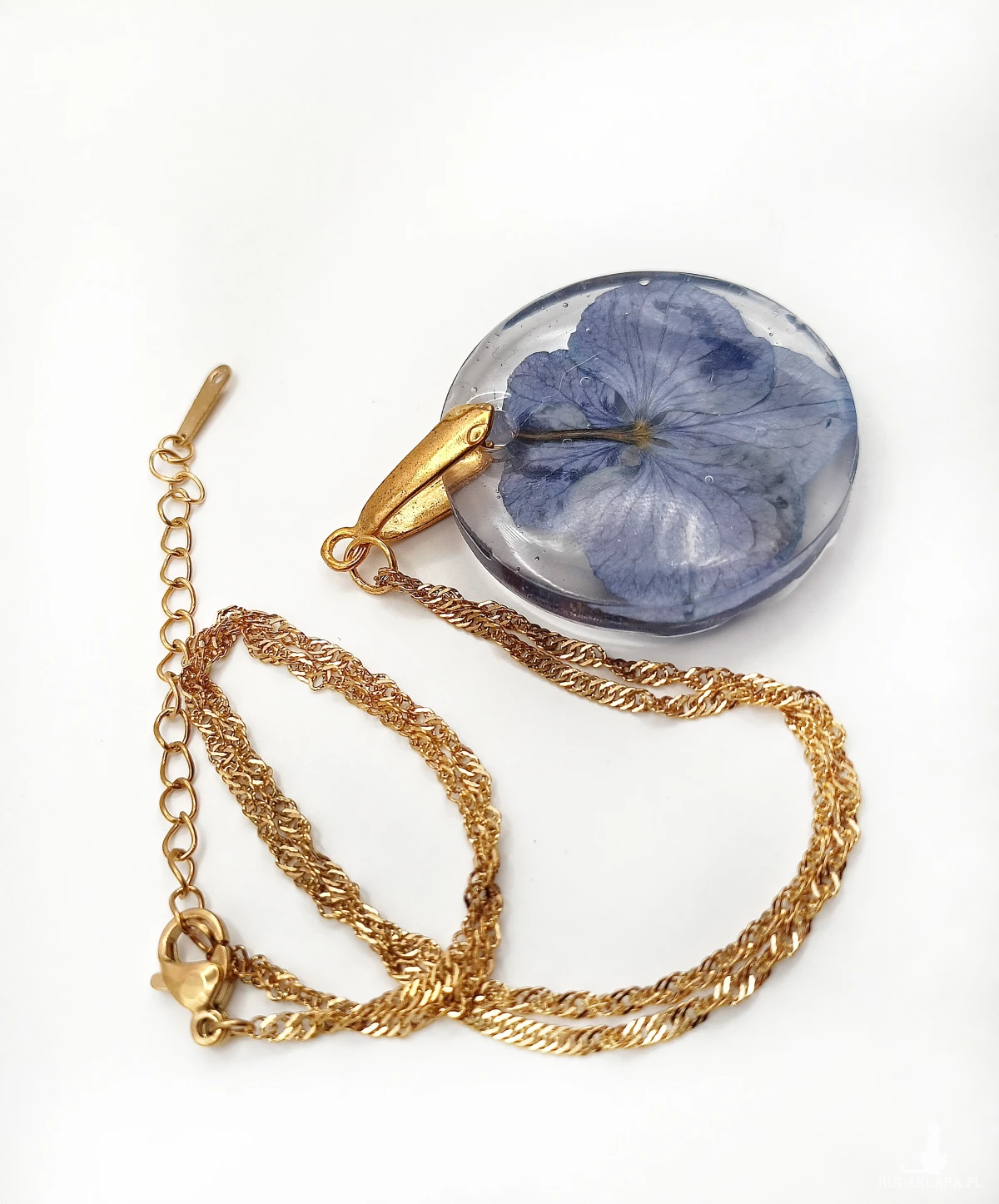 Podkreśl swój styl wyjątkowym naszyjnikiem z suszoną hortensją, zatopioną w przejrzystej żywicy. To subtelne połączenie naturalnego piękna i ponadczasowej elegancji, idealne dla kobiet, które cenią unikatowe dodatki.