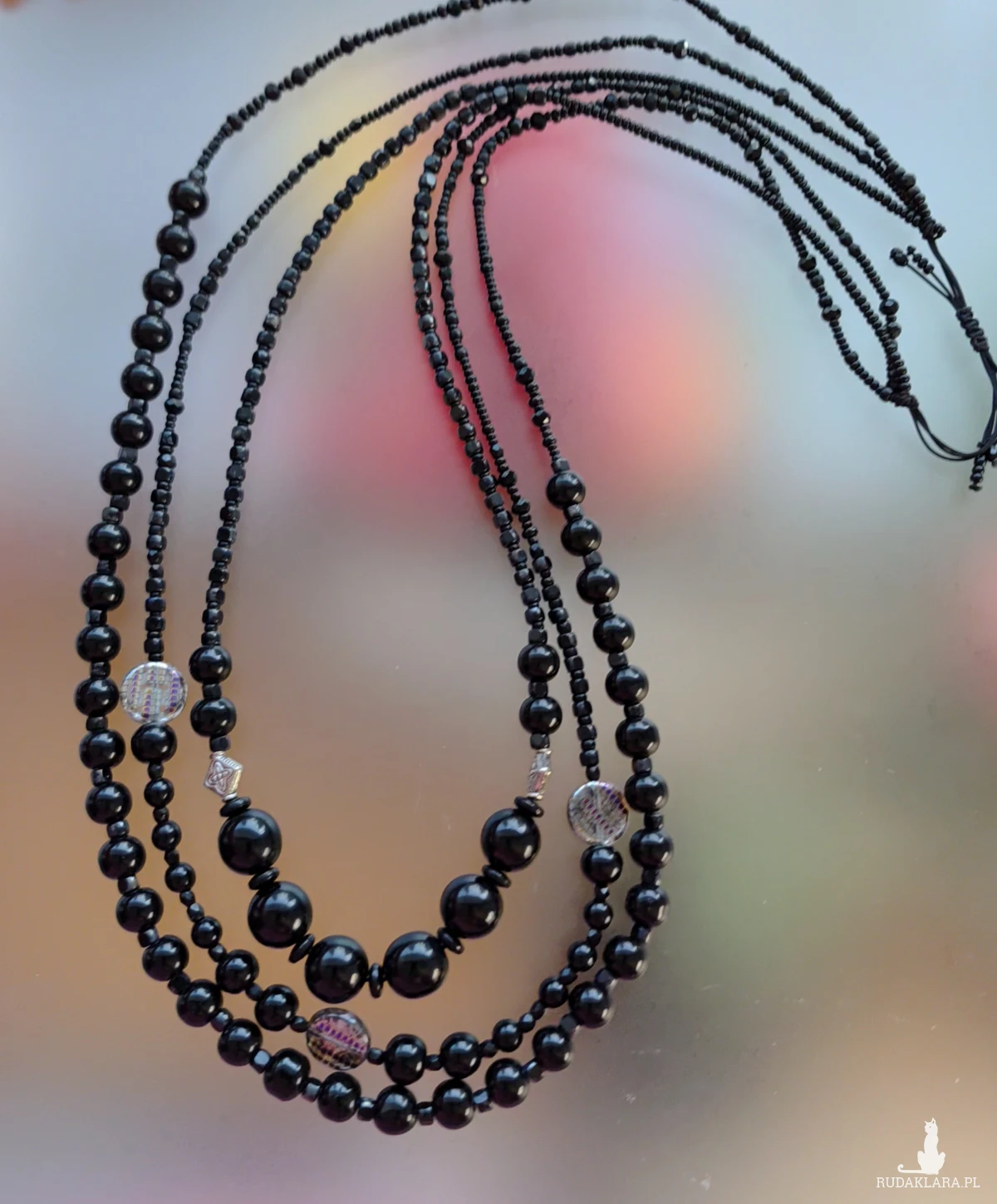 onyx kamień, czeskie szkło, sznurek syntetyczny
