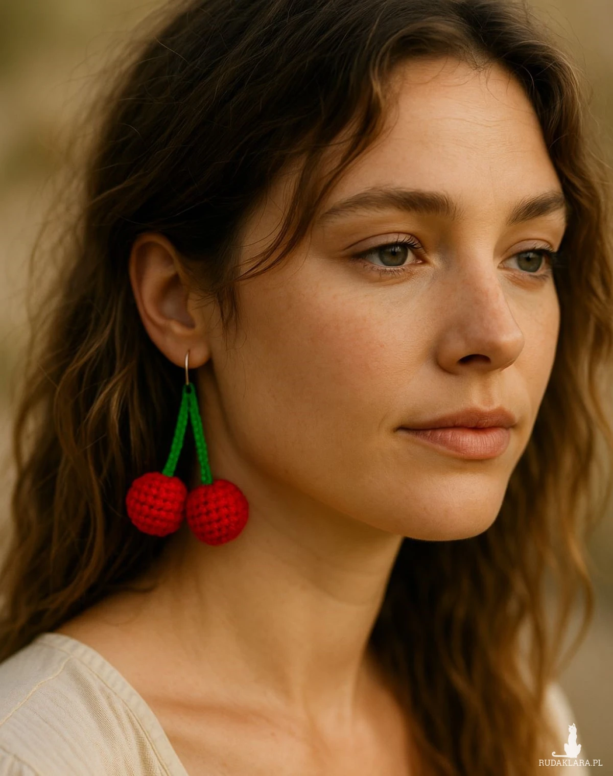 Proszę, oto kolczyki wisienki zrobione na szydełku, przywołujące wspomnienia z dzieciństwa.