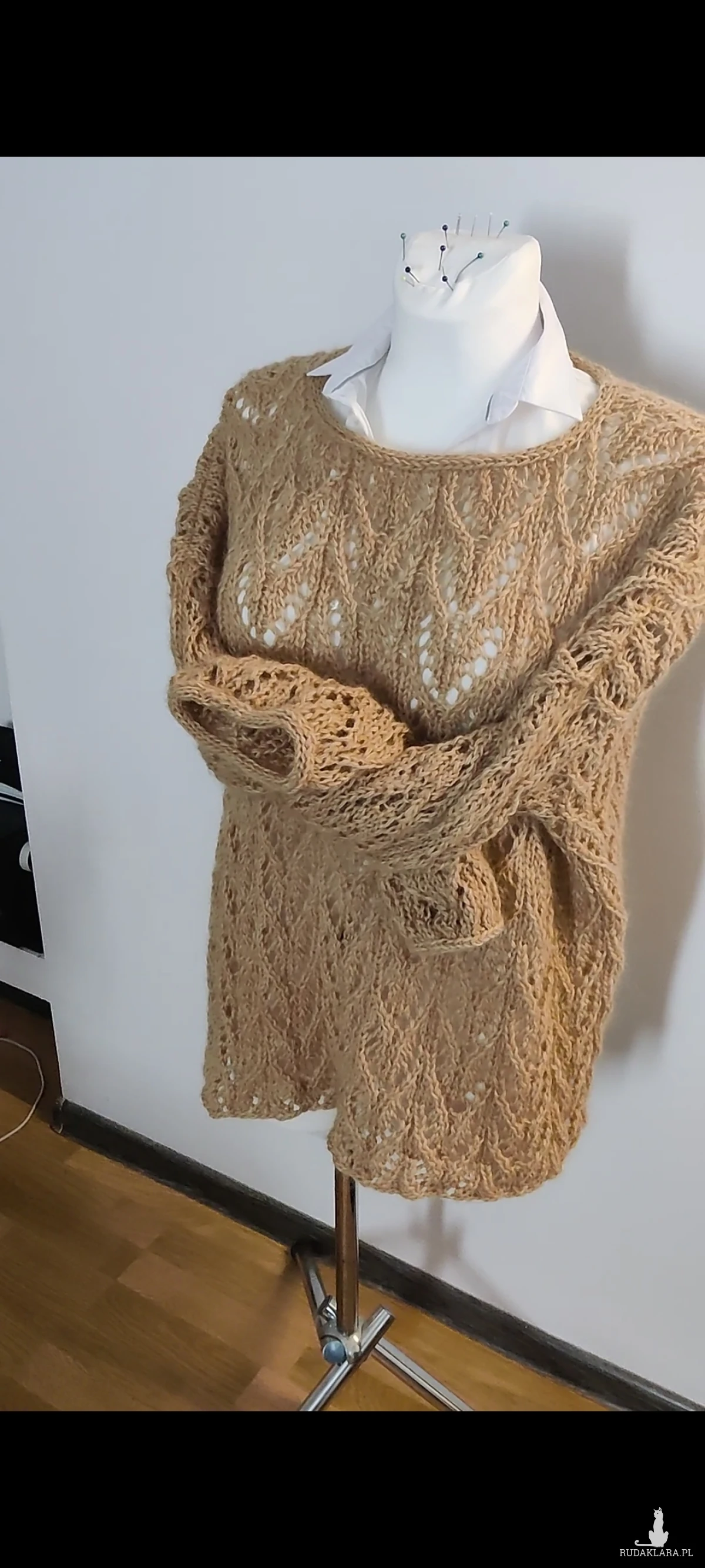Sweterek ażurowy z naturalnych włókien wielbłąda 🐫 i kid silk.