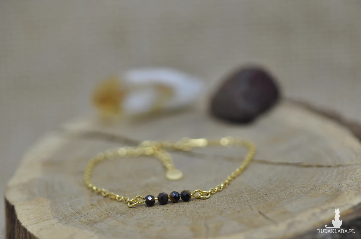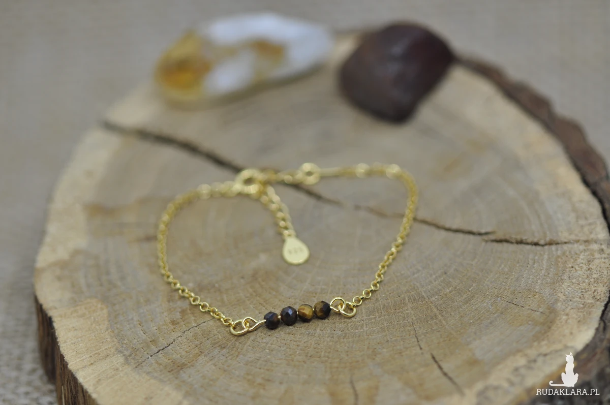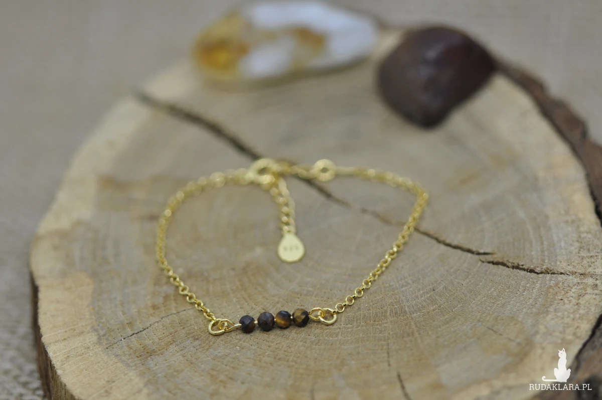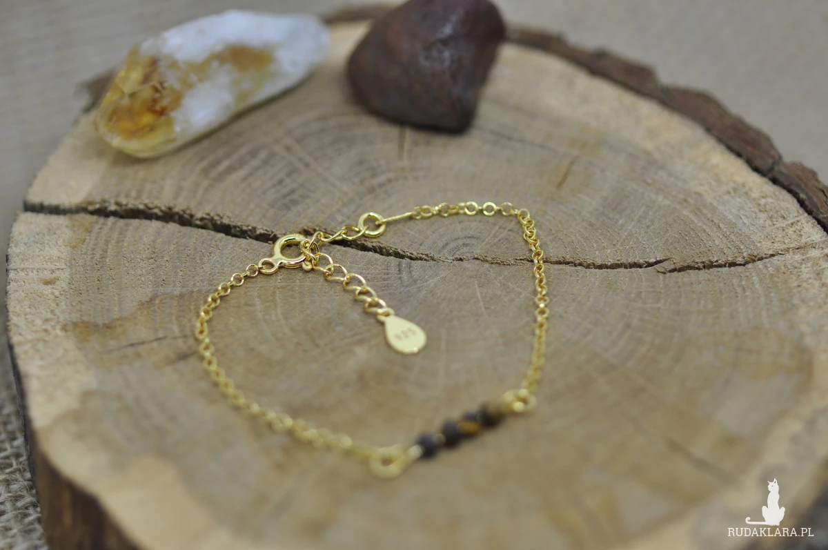 Delikatna bransoletka łańcuszkowa ze srebra próby 925 pokrytego 24 karatowym złotem z kamieniem naturalnym - Tygrysim Okiem💎