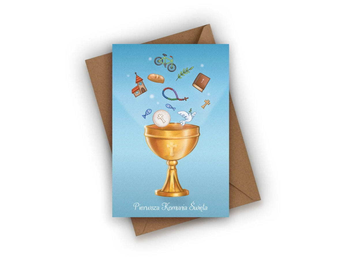Kartka z okazji Komunii Świętej- Kielich komunijny