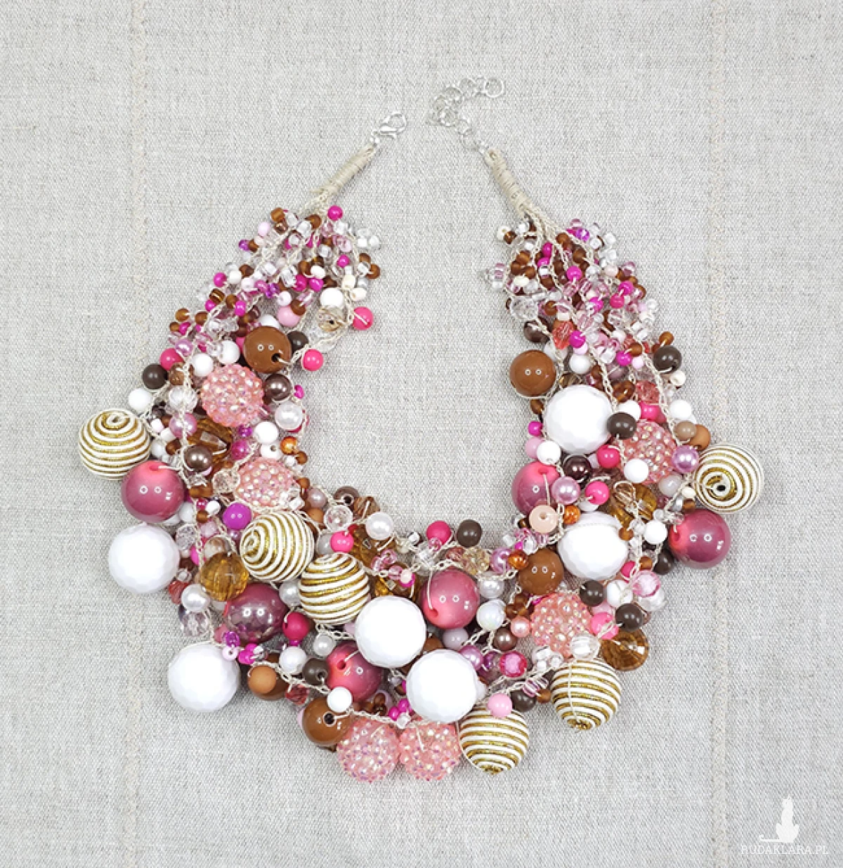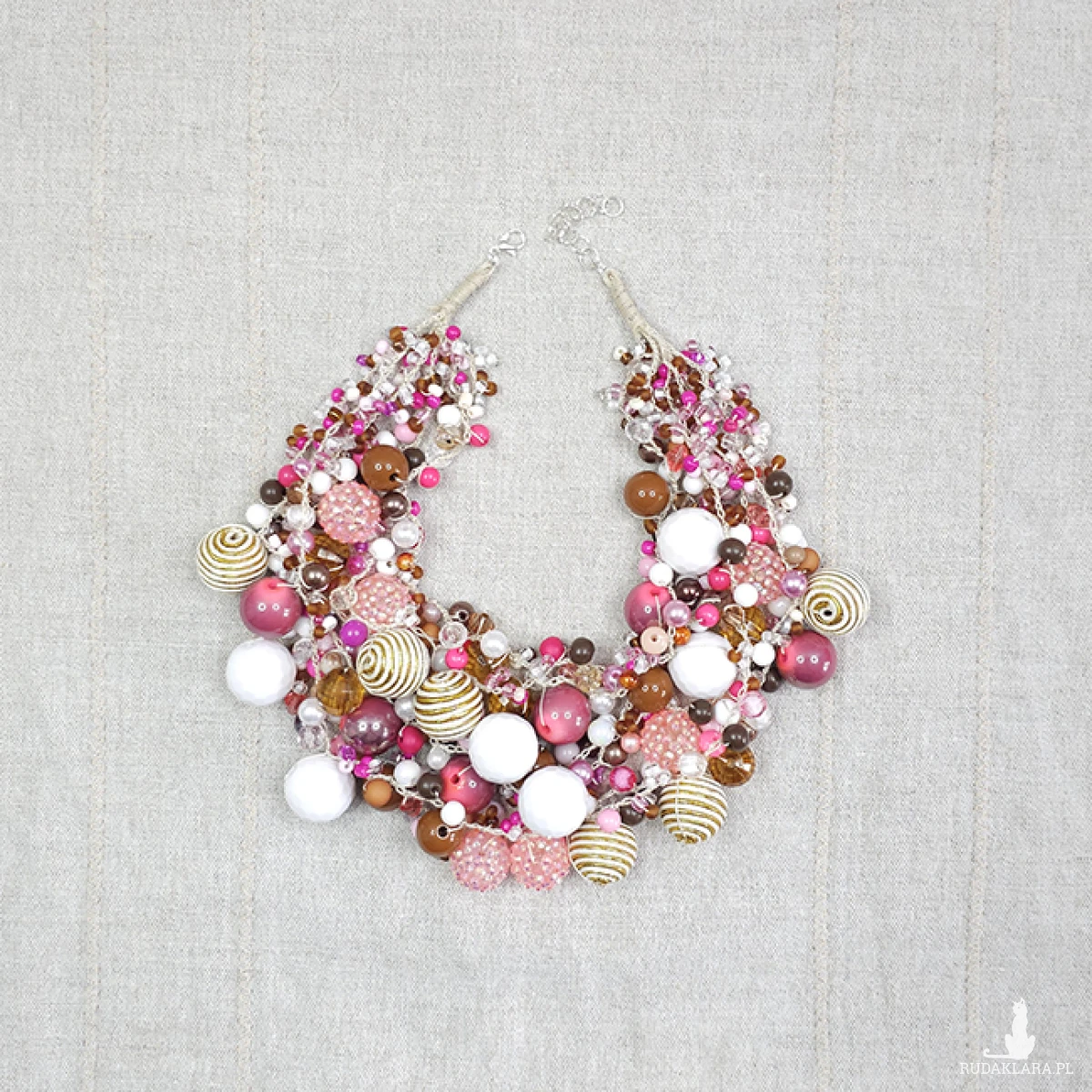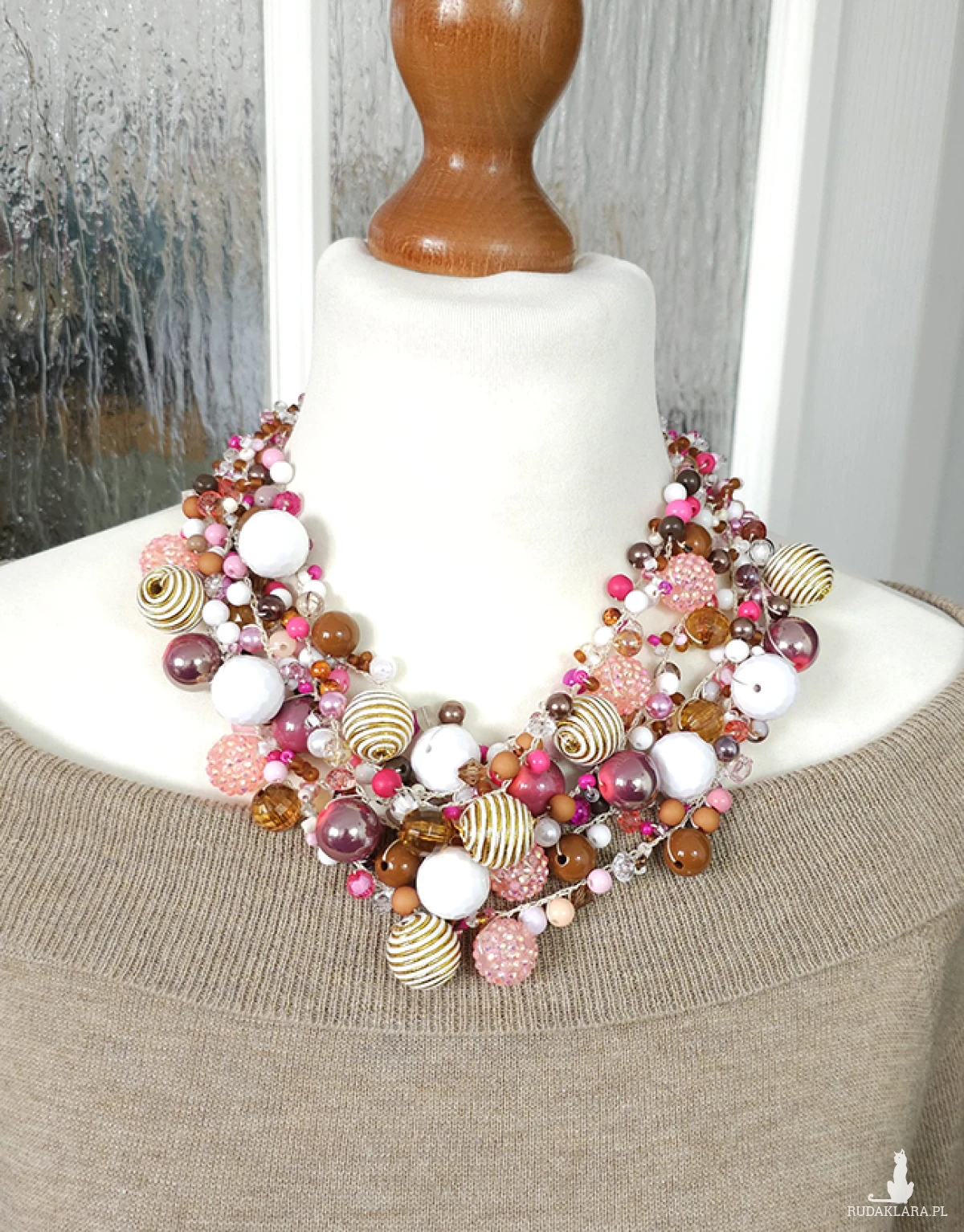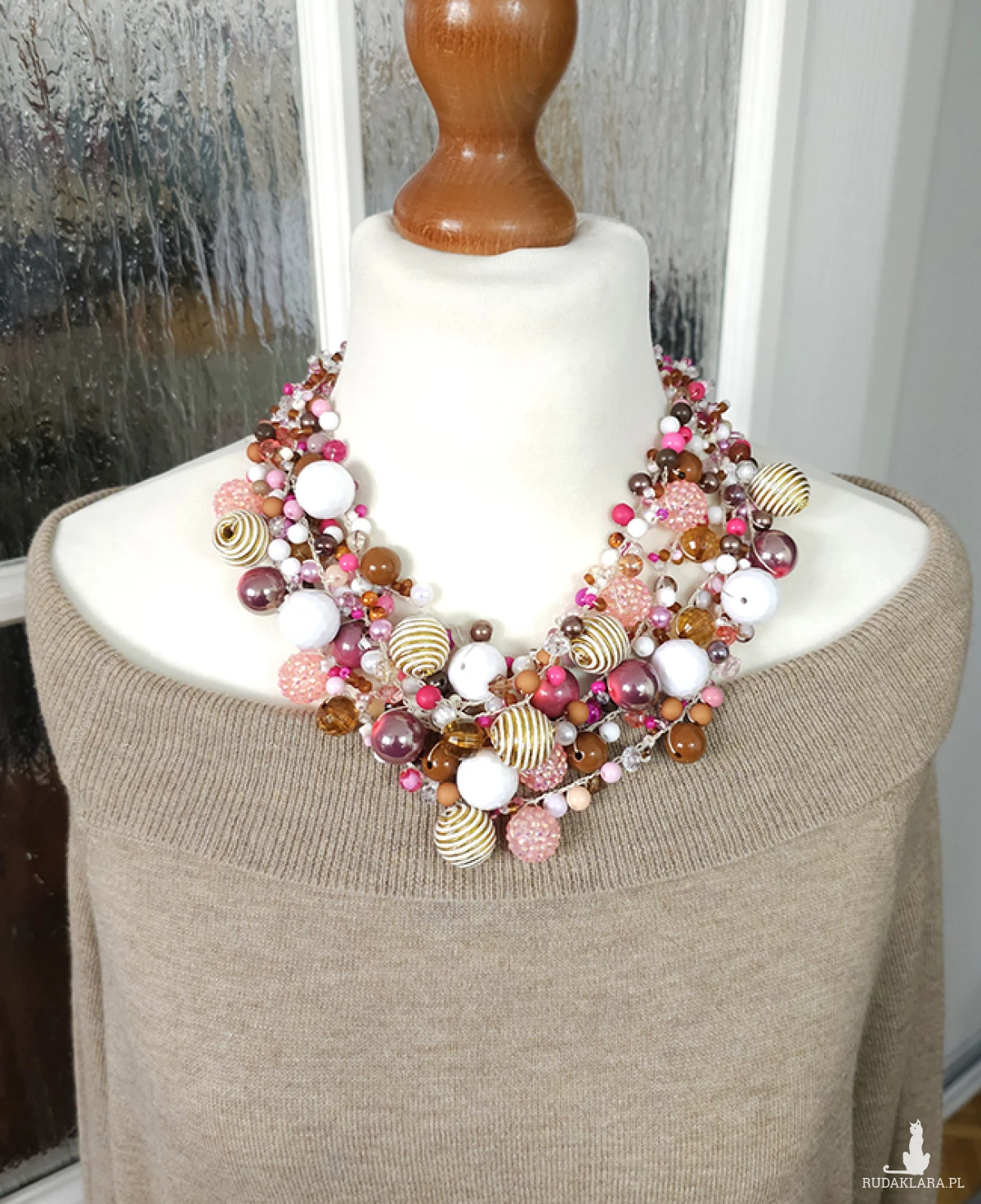 6662 biały, różowy, brązowy naszyjnik; kolia