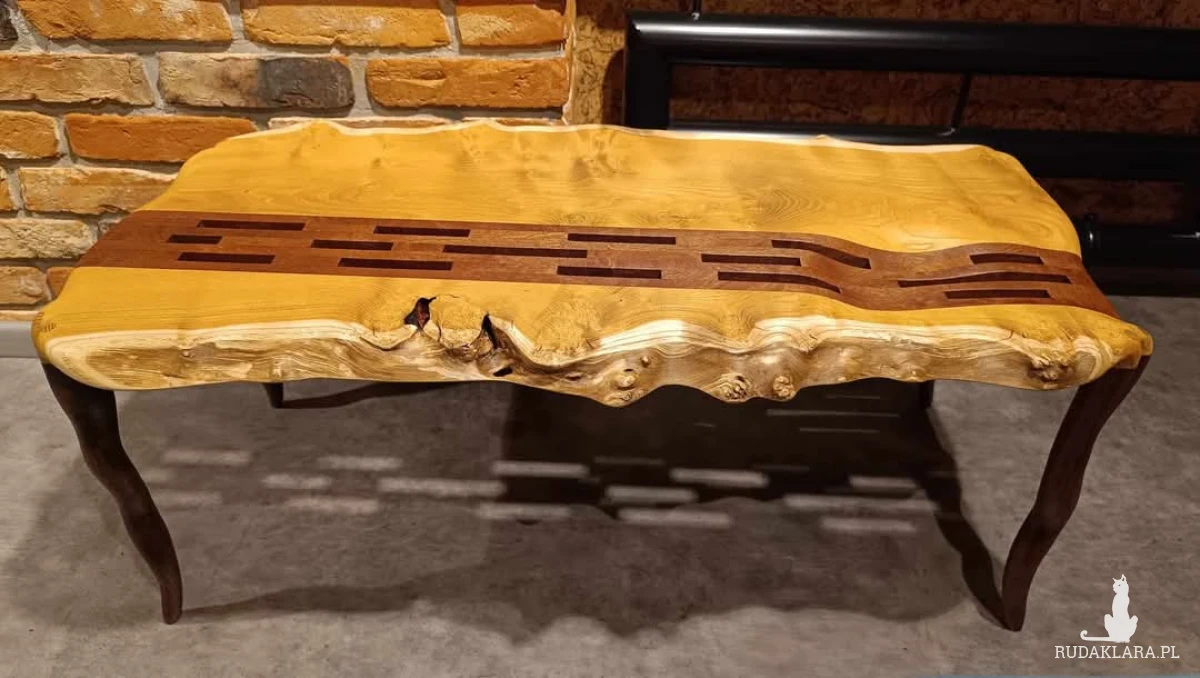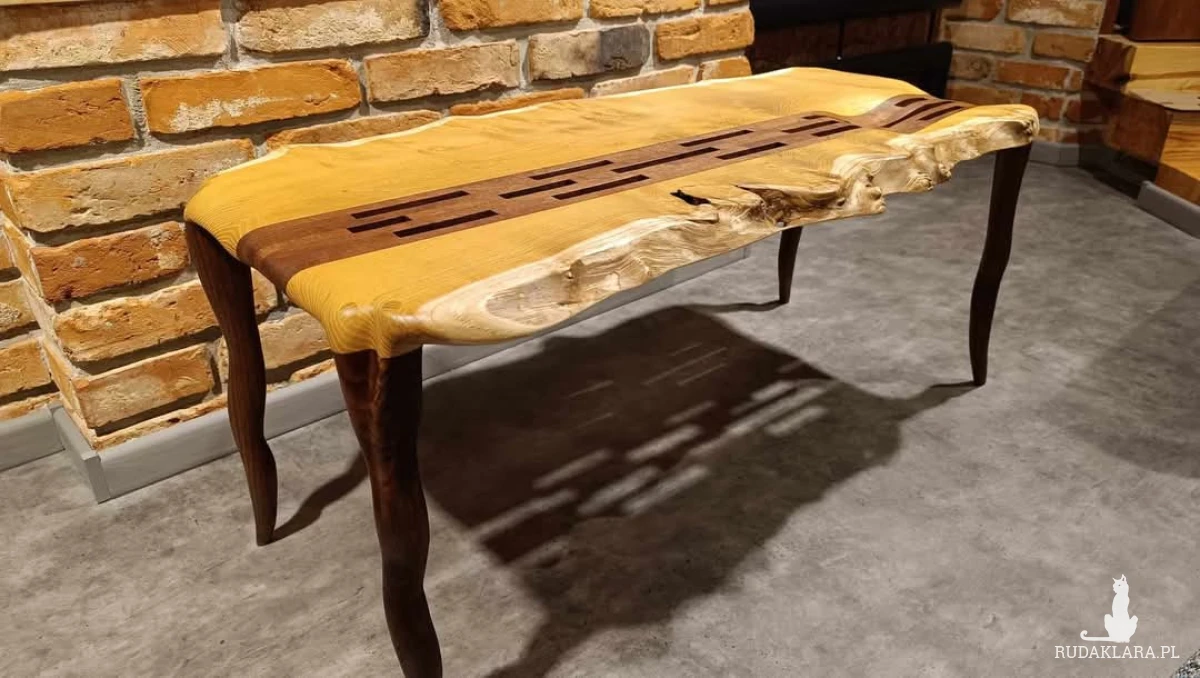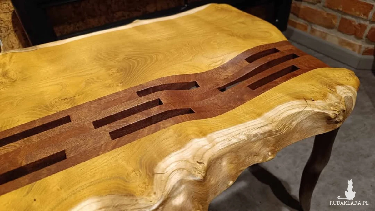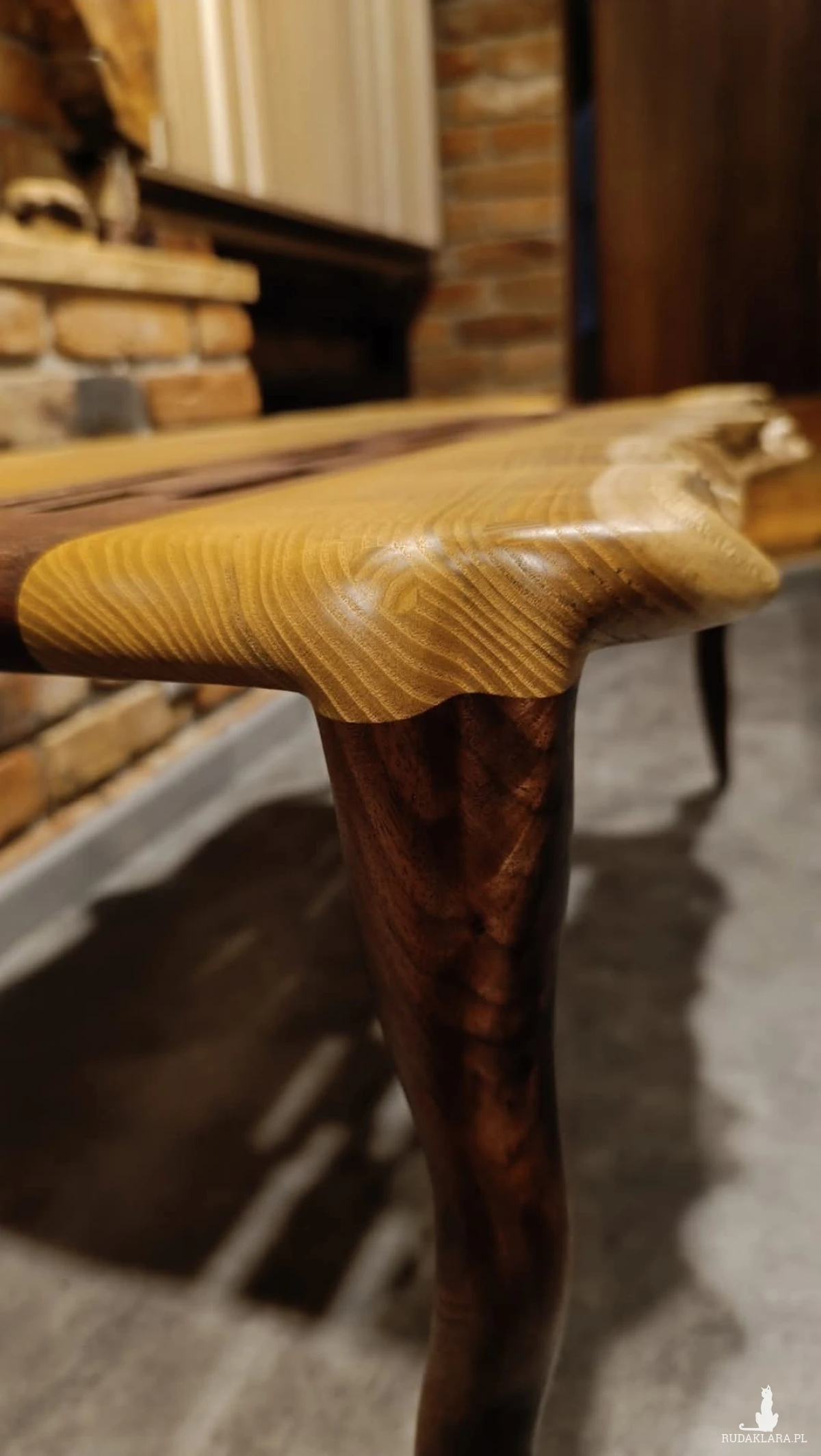 Dłuższe boki blatu w naturalnej formie (live edge) wygładzone dla bezpieczeństwa. Nie ma ostrych krawędzi.