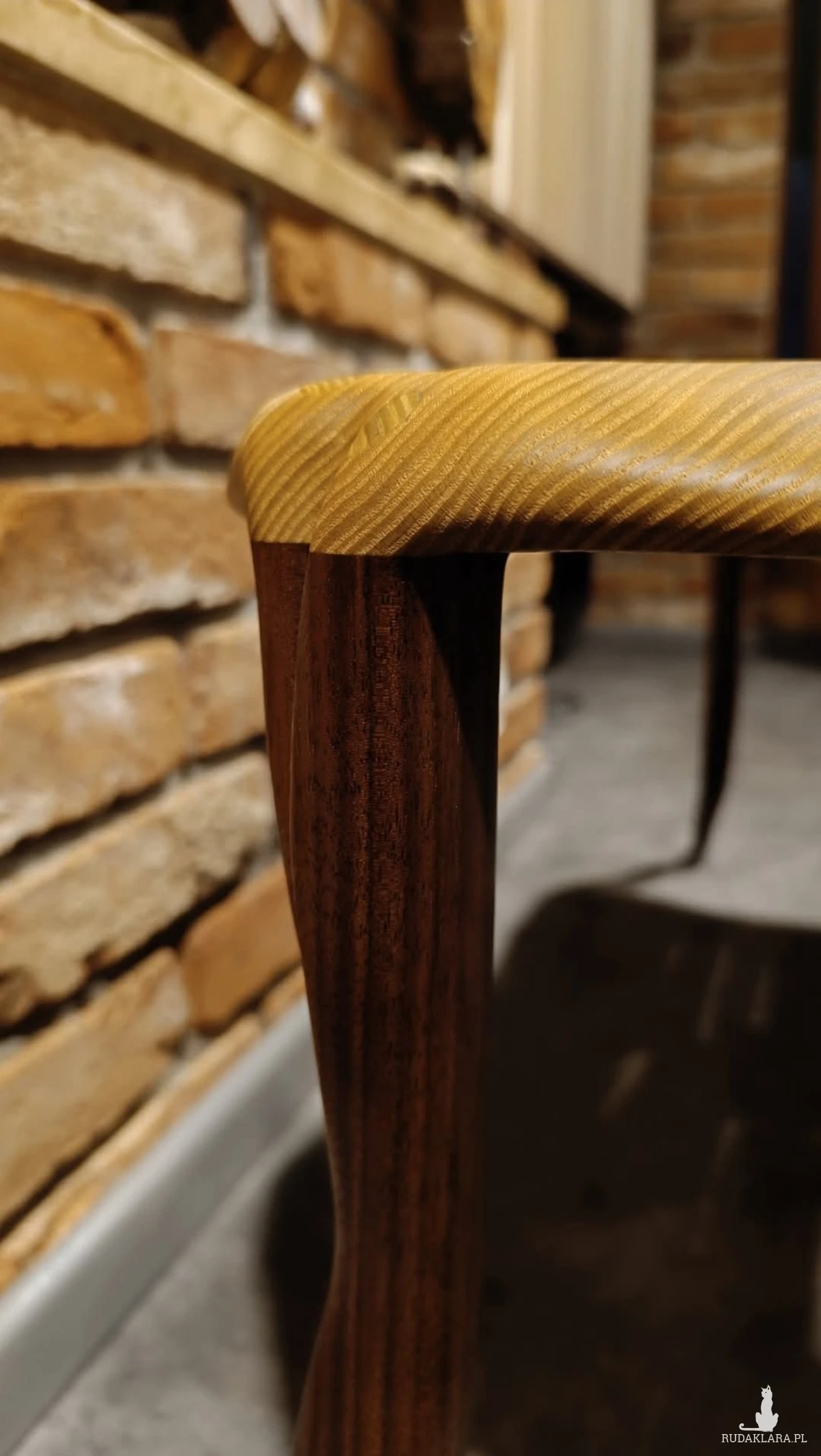 Nogi z drewna Orzecha amerykańskiego o ciemno brązowym/czekoladowym odcieniu. Również rzeźbione ręcznie - bez powtarzalności, choć starałem się zachować podobny wzór każdej z nich.