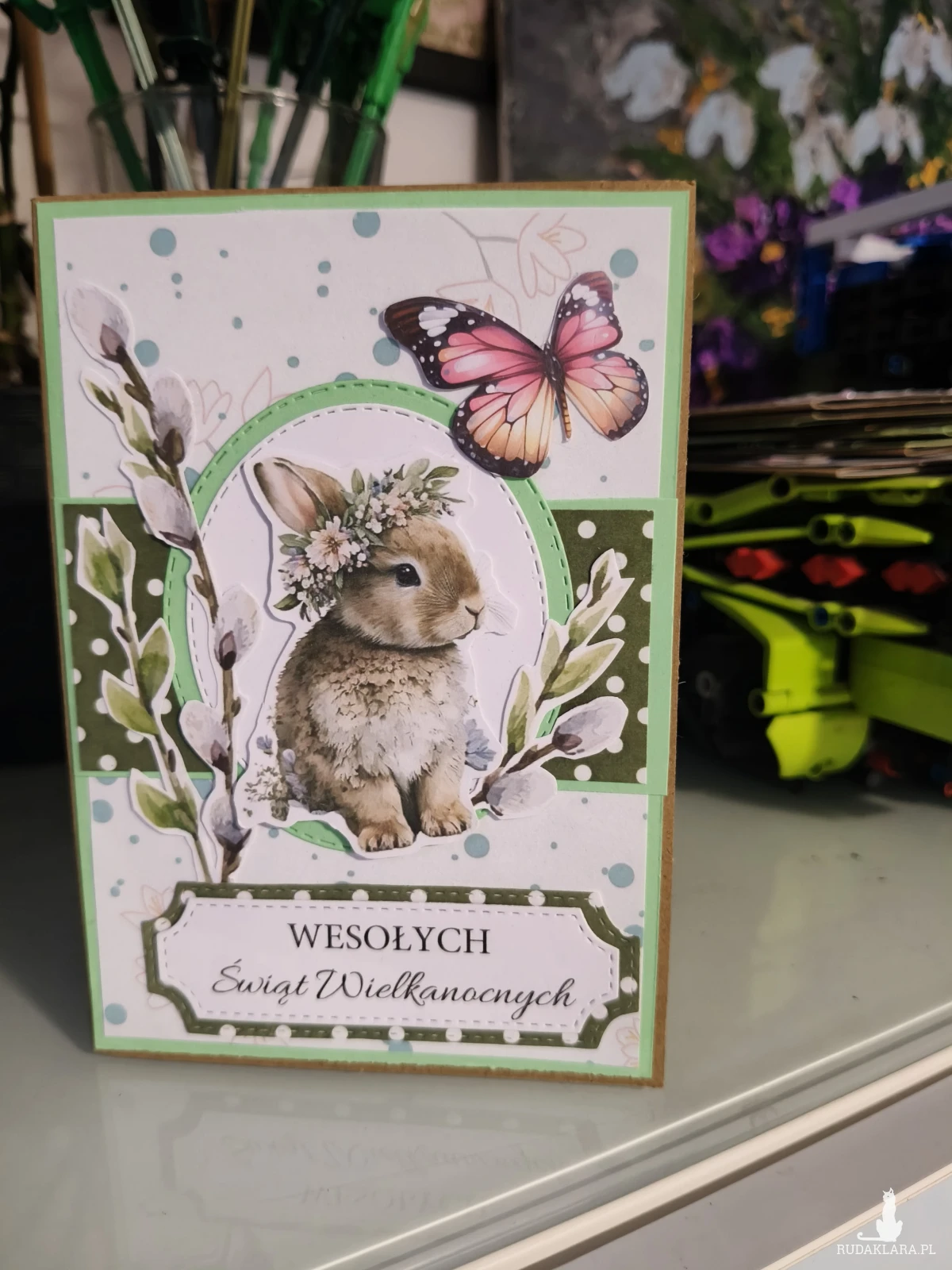 Elegancka, ręcznie robiona kartka wielkanocna