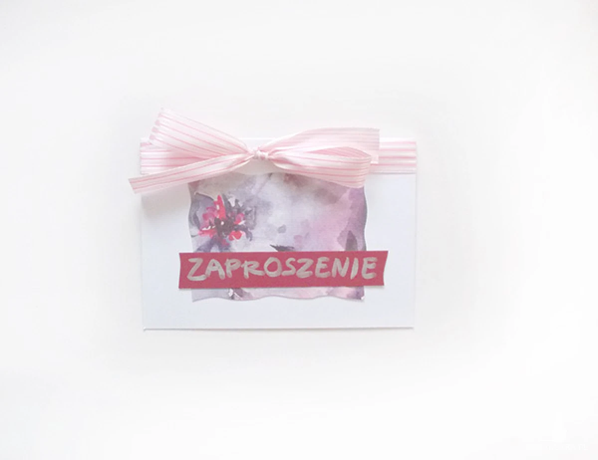 Otwierane, uniwersalne zaproszenie na dowolną imprezę, uroczystość, okazję, perłowy kartonik, pudrowa wstążka, zaproszenie jest bez tekstu, dołączona biała koperta.