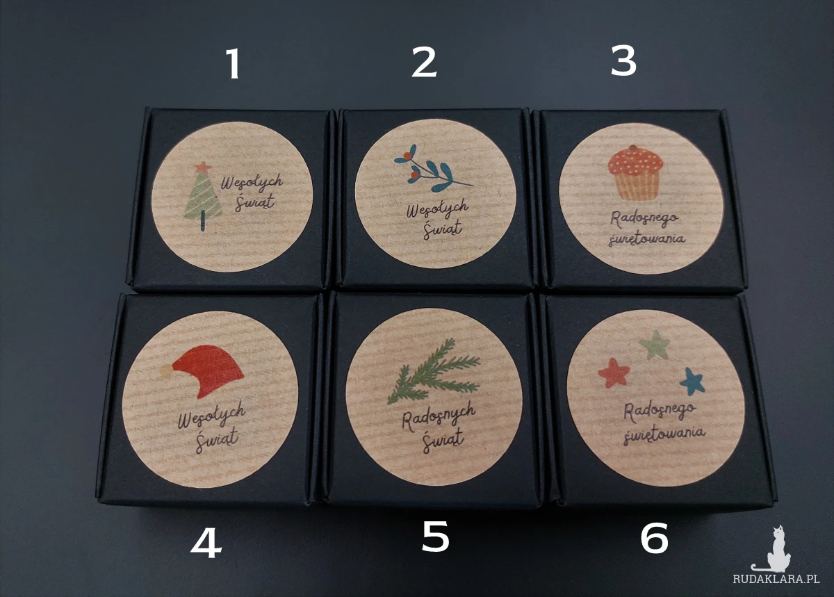 Specjalnie na Święta Bożego Narodzenia jest możliwość wyboru pudełeczka ze specjalną świąteczną naklejką, zamiast naklejki z moim logo.