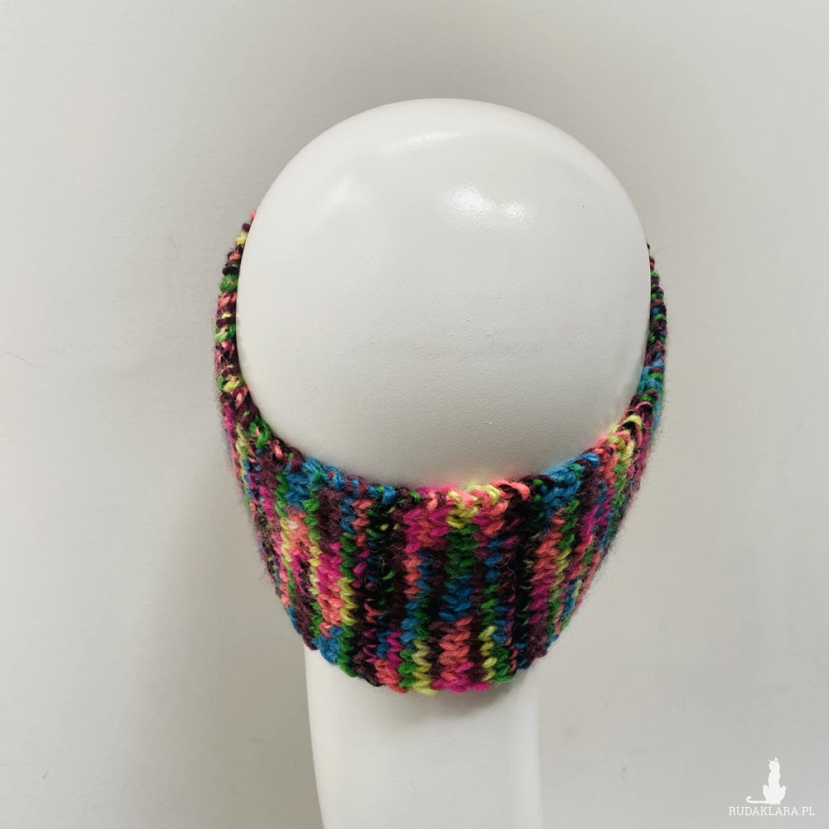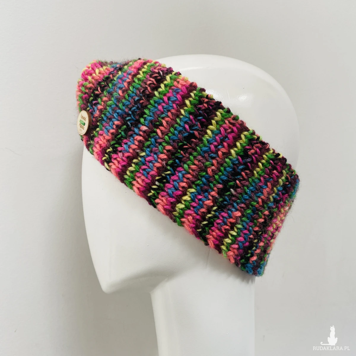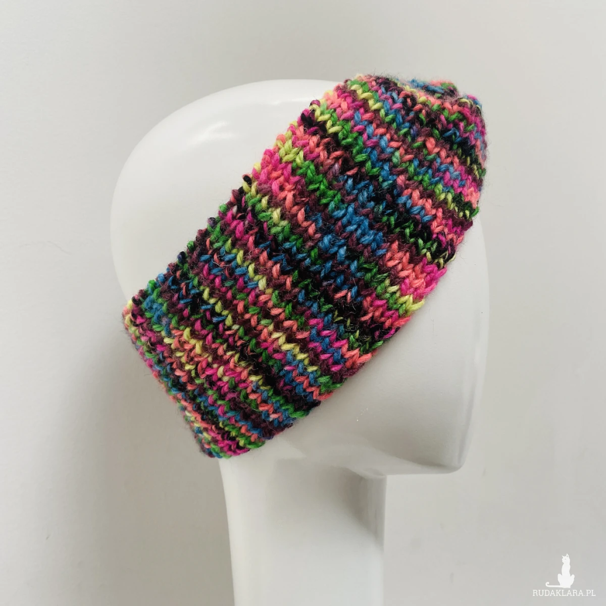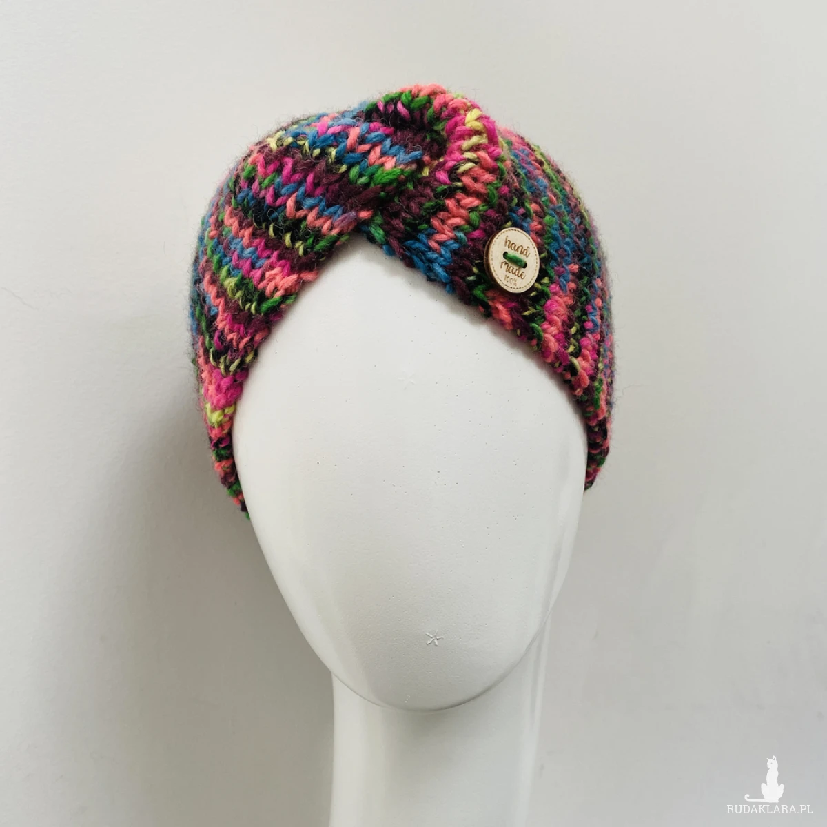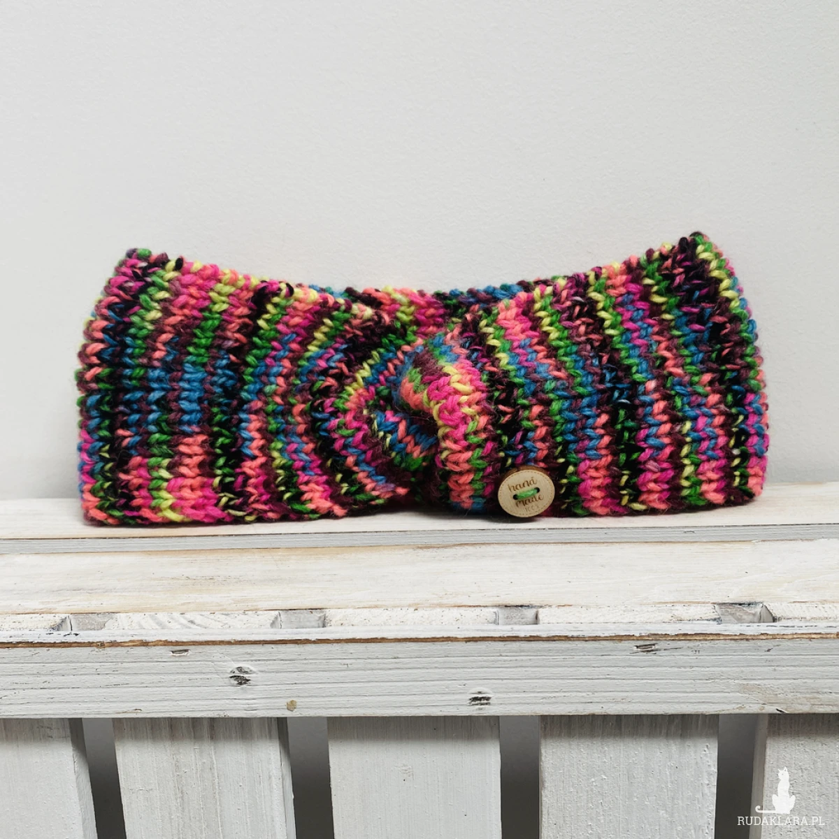 Kolorową opaskę twist wykonałam na drutach z wysokiej jakości włóczki wełniano- akrylowej, która zapewnia wygodę noszenia przez cały dzień chroniąc uszy przed zimnem.