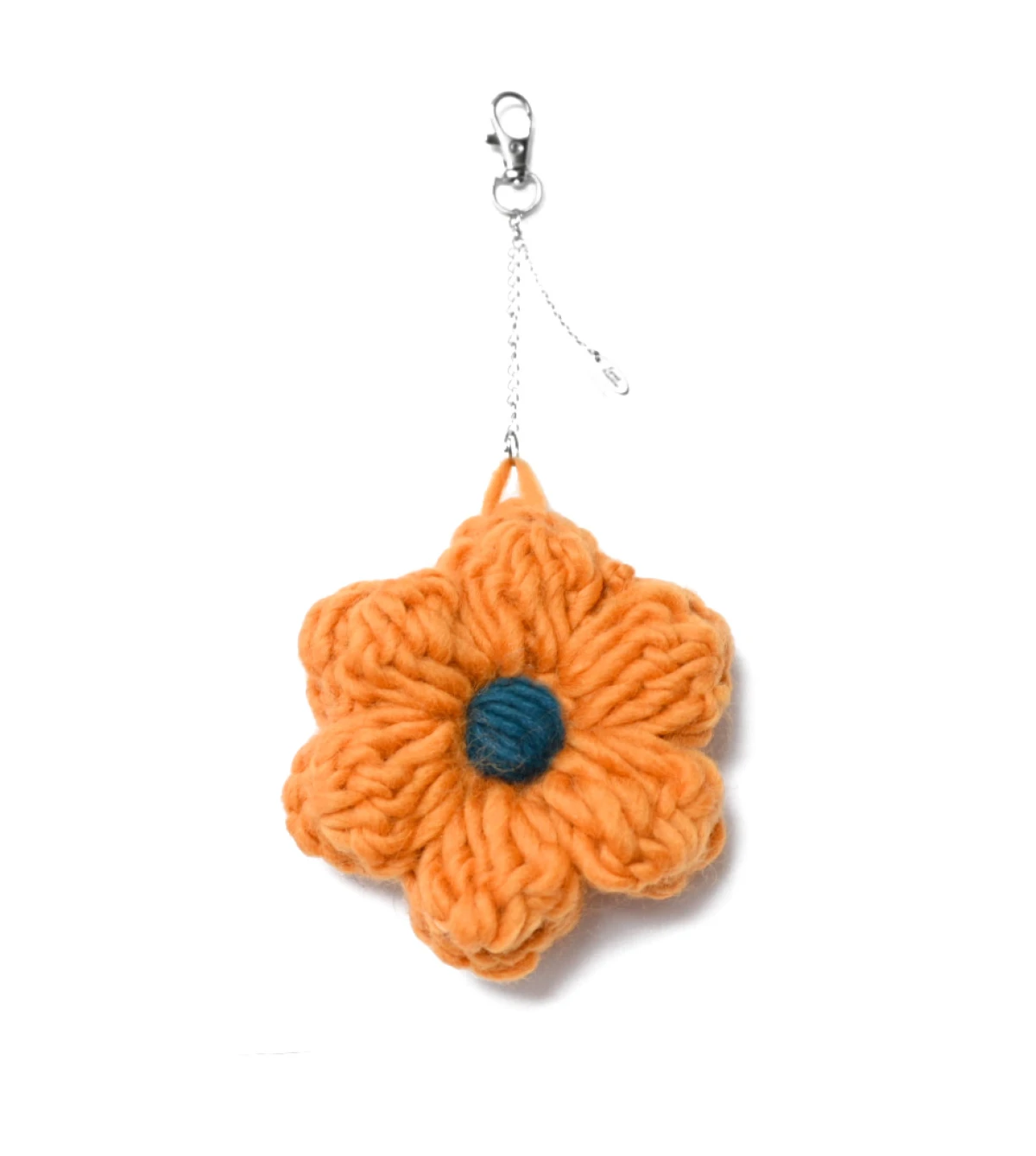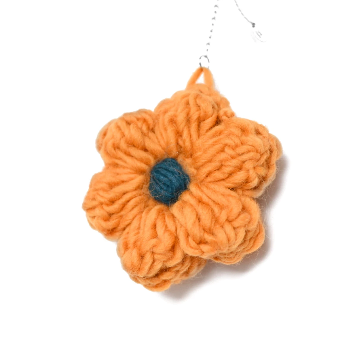 Brelok Sol Grande, Ręcznie robiony brelok kwiat z włóczki – elegancki dodatek do torebki lub kluczy