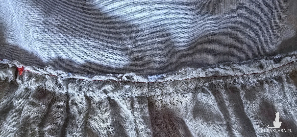 Do stworzenia tej koszuli użyłam koszuli męskiej nie zmieniając zapięcia (zapina się zatem jak męska koszula).