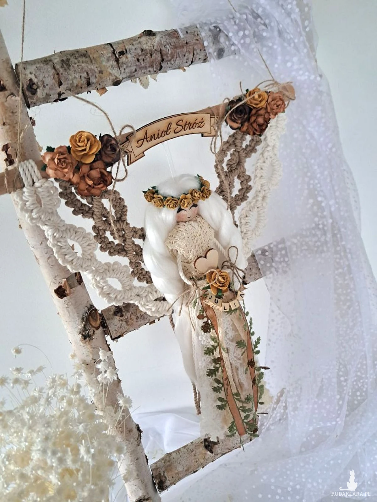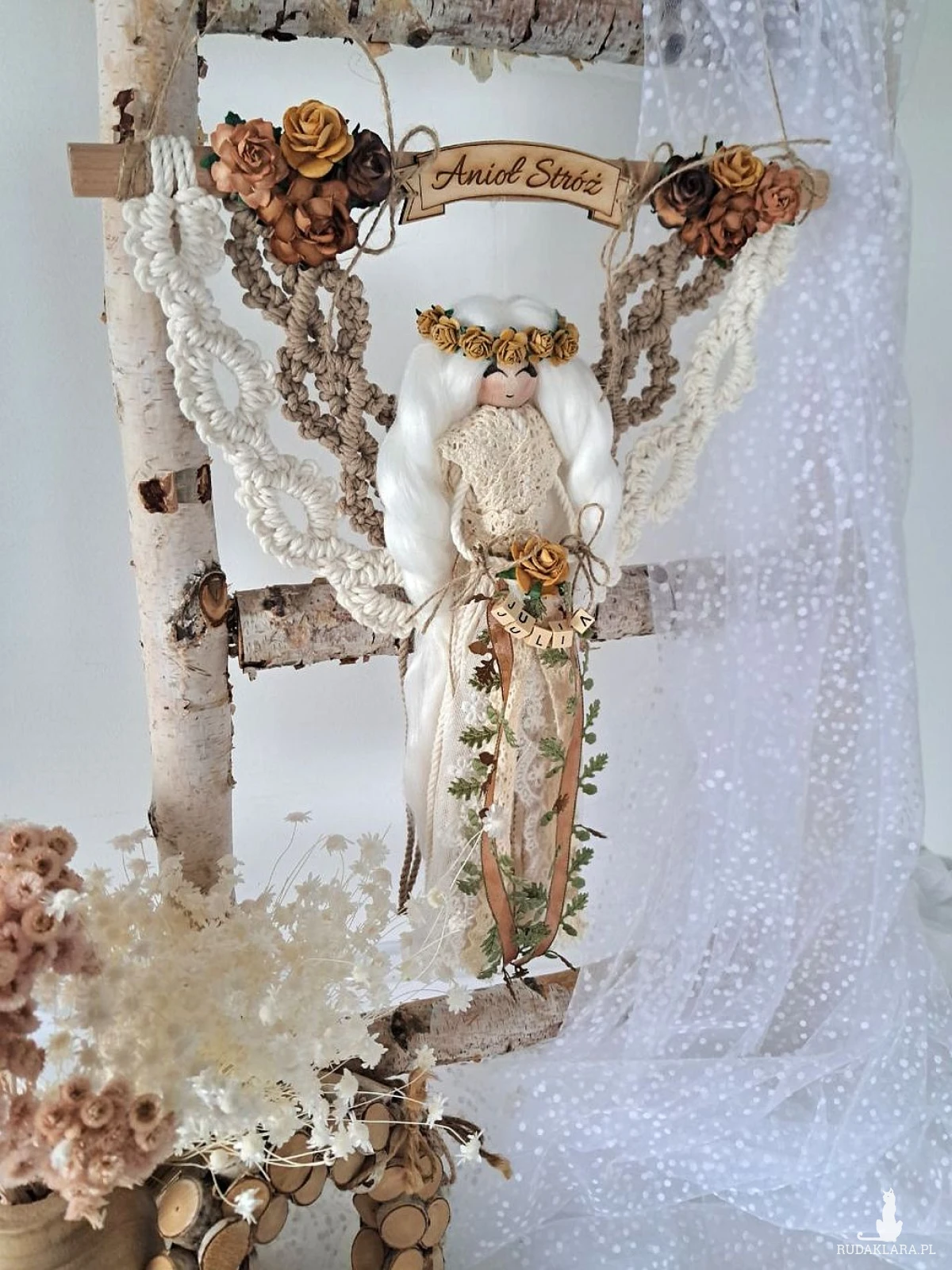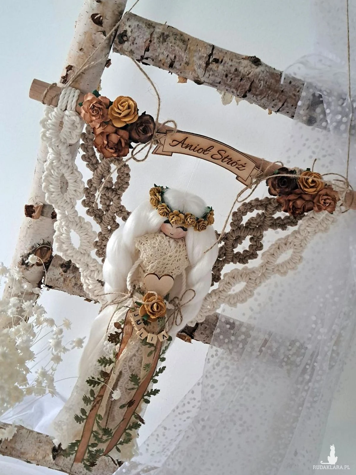 zrobiony metodą makramy. Proszę zwrócić uwagę na wyjątkowość skrzydełek.