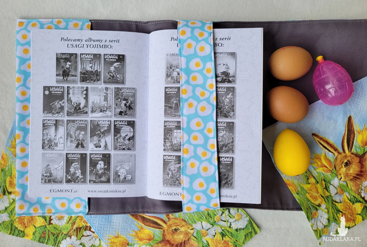 - zapięcie na gumkę, dzięki czemu książka się nie otwiera, a okładka dostosowuje się do grubości tomu;