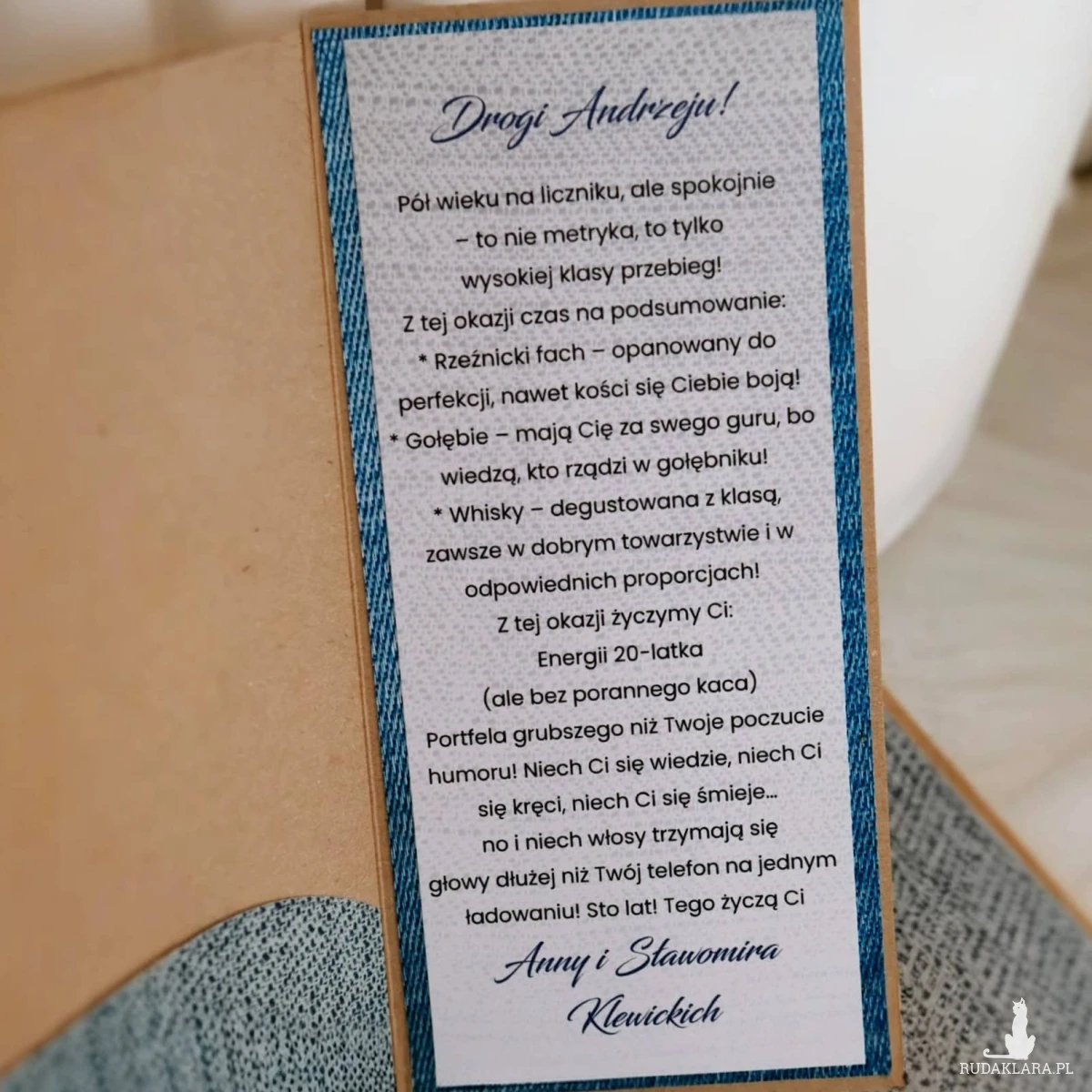 Jeśli chcesz wręczyć coś więcej niż kopertę, to ta kartka będzie idealnym rozwiązaniem. To prezent i pamiątka w jednym, w żartobliwym stylu, która łączy humor i elegancką formę wręczenia.