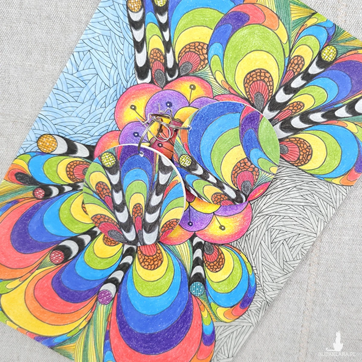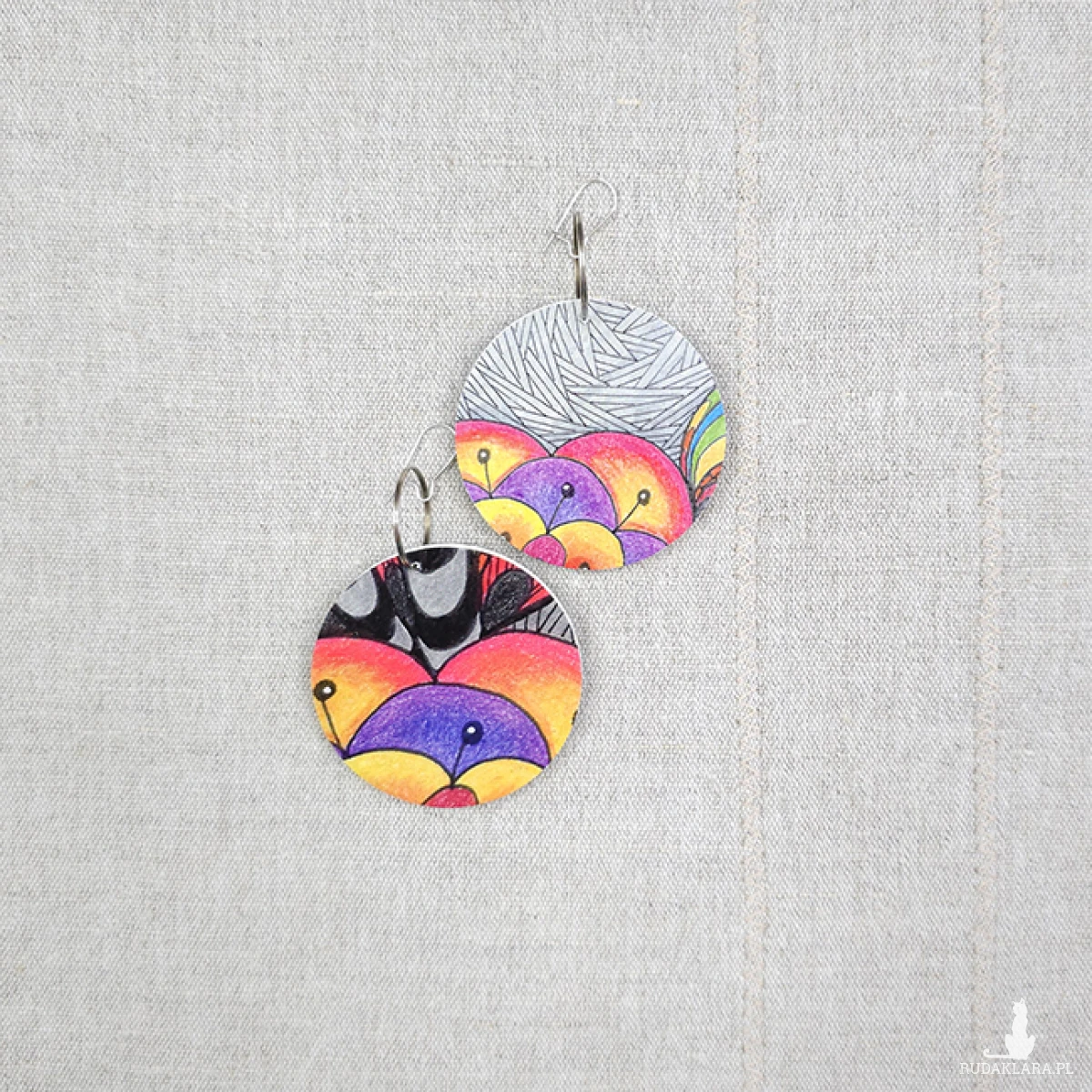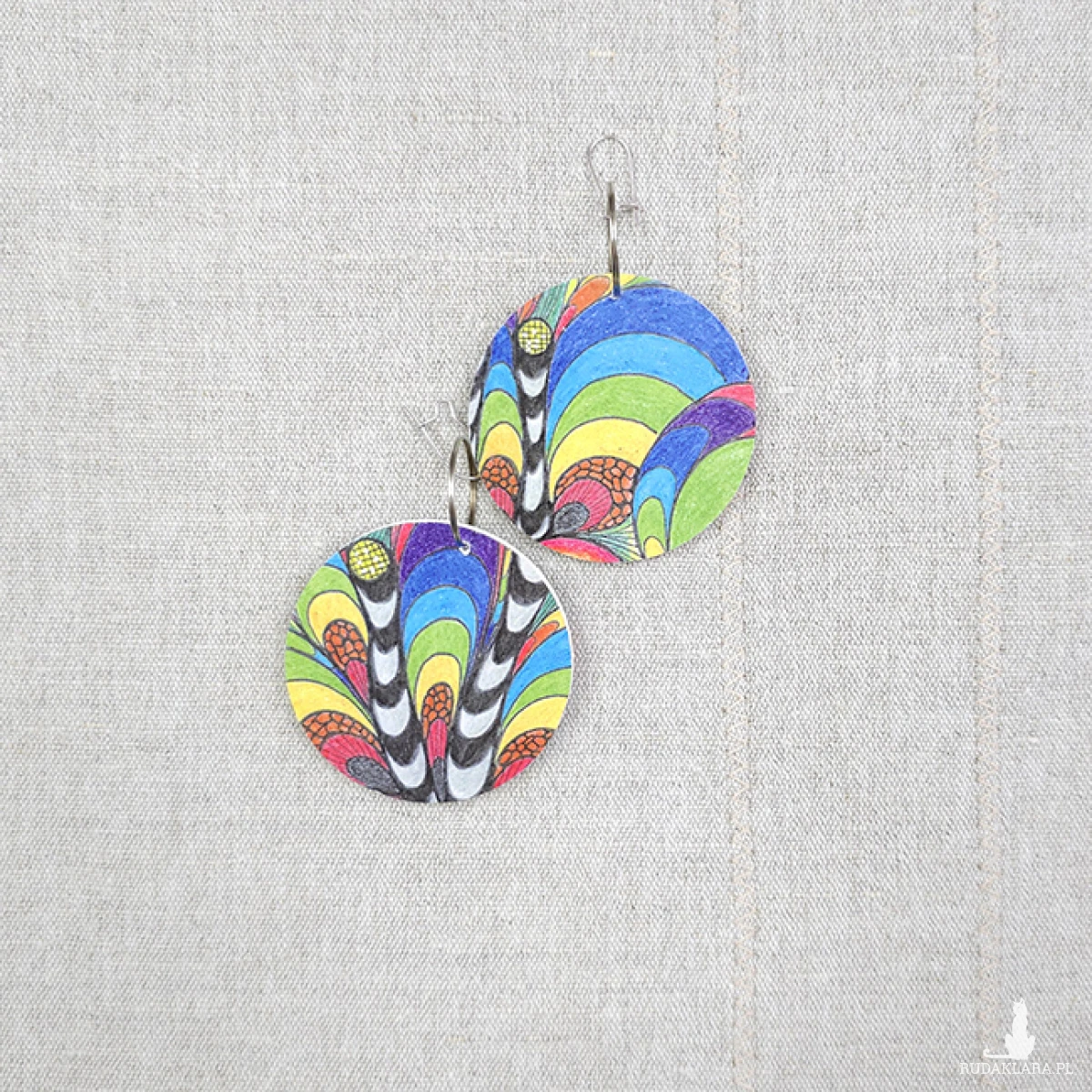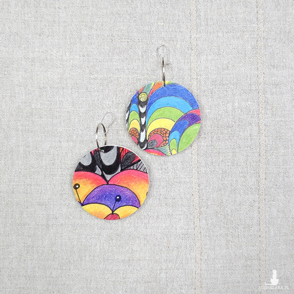 6689 kolorowe, niepowtarzalne, duże, dwustronne kolczyki; tęcza
