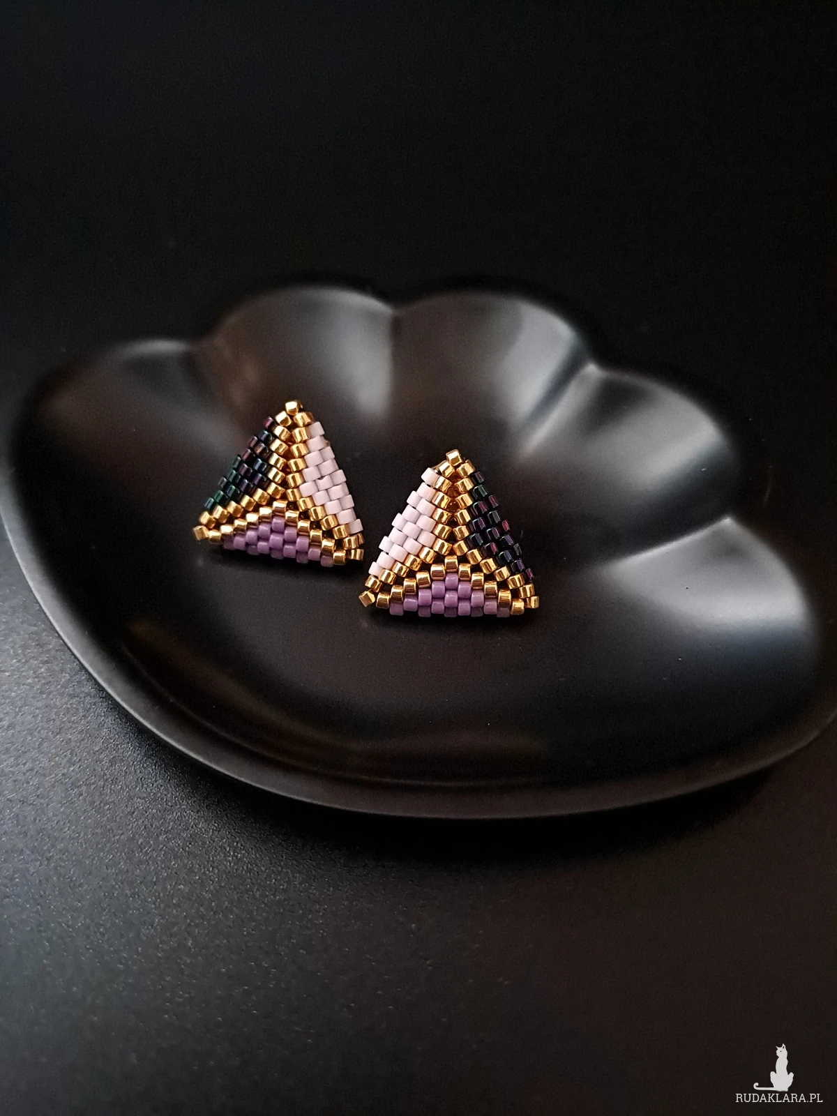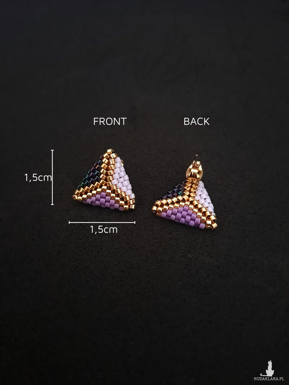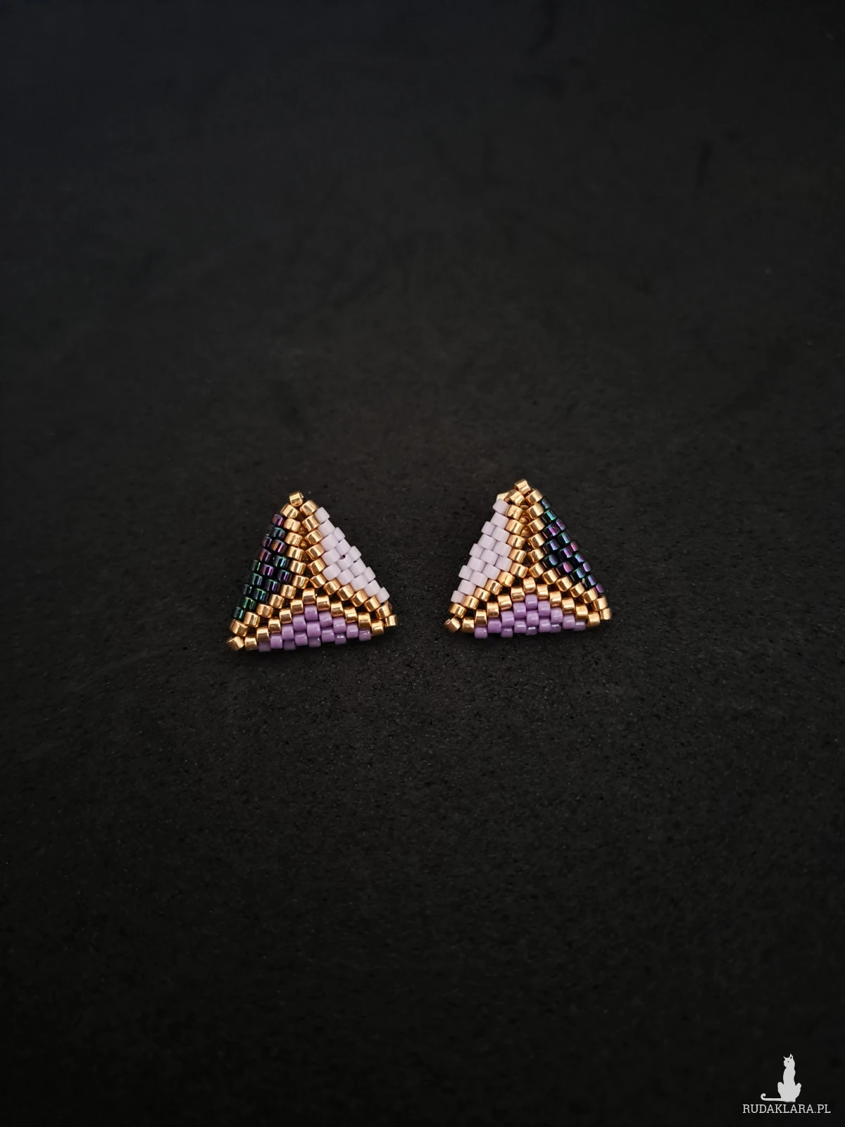 Wyjątkowe, fioletowe trójkątne sztyfty to doskonały wybór dla kobiet, które szukają biżuterii łączącej w sobie subtelność, nowoczesność i oryginalność. Wykonane ręcznie z najwyższej jakości koralików Miyuki Delica, te niewielkie, lecz wyraziste kolczyki to małe dzieła sztuki. Ich geometryczny kształt w formie trójkąta przyciąga uwagę i podkreśla wyjątkowość każdej stylizacji, zarówno codziennej, jak i wieczorowej. Połączenie głębokiego fioletu i złota dodaje kolczykom elegancji i luksusowego charakteru, dzięki czemu stanowią idealny wybór na każdą okazję.