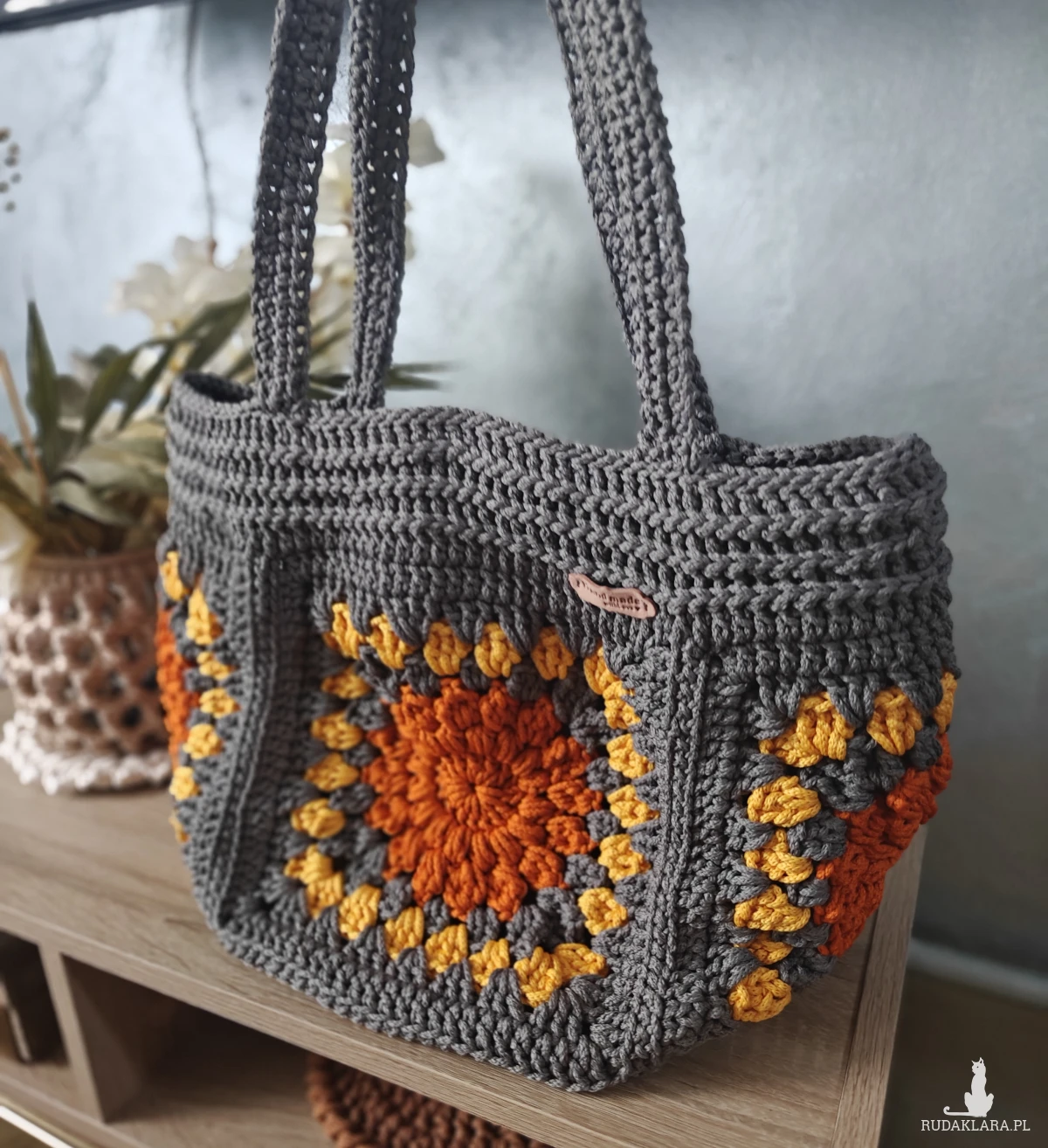 Torebka z 5 kwadratów, kwadrat 22x22, wysokość torebki 28cm mierzona na środku, uszy ok70cm.