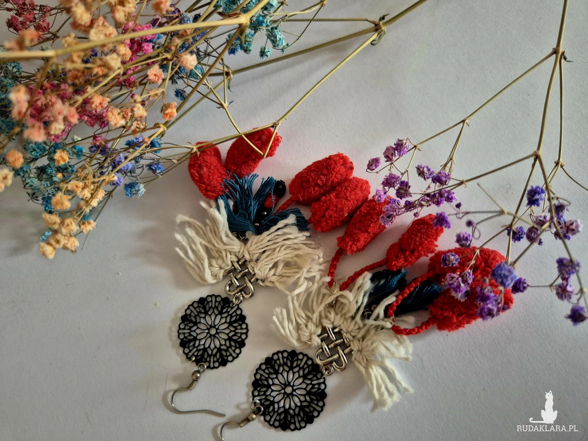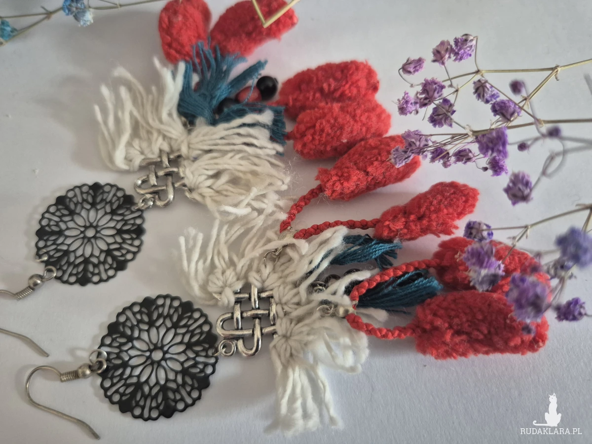 Kolczyki boho z pomponami lekkie polecam Box X1