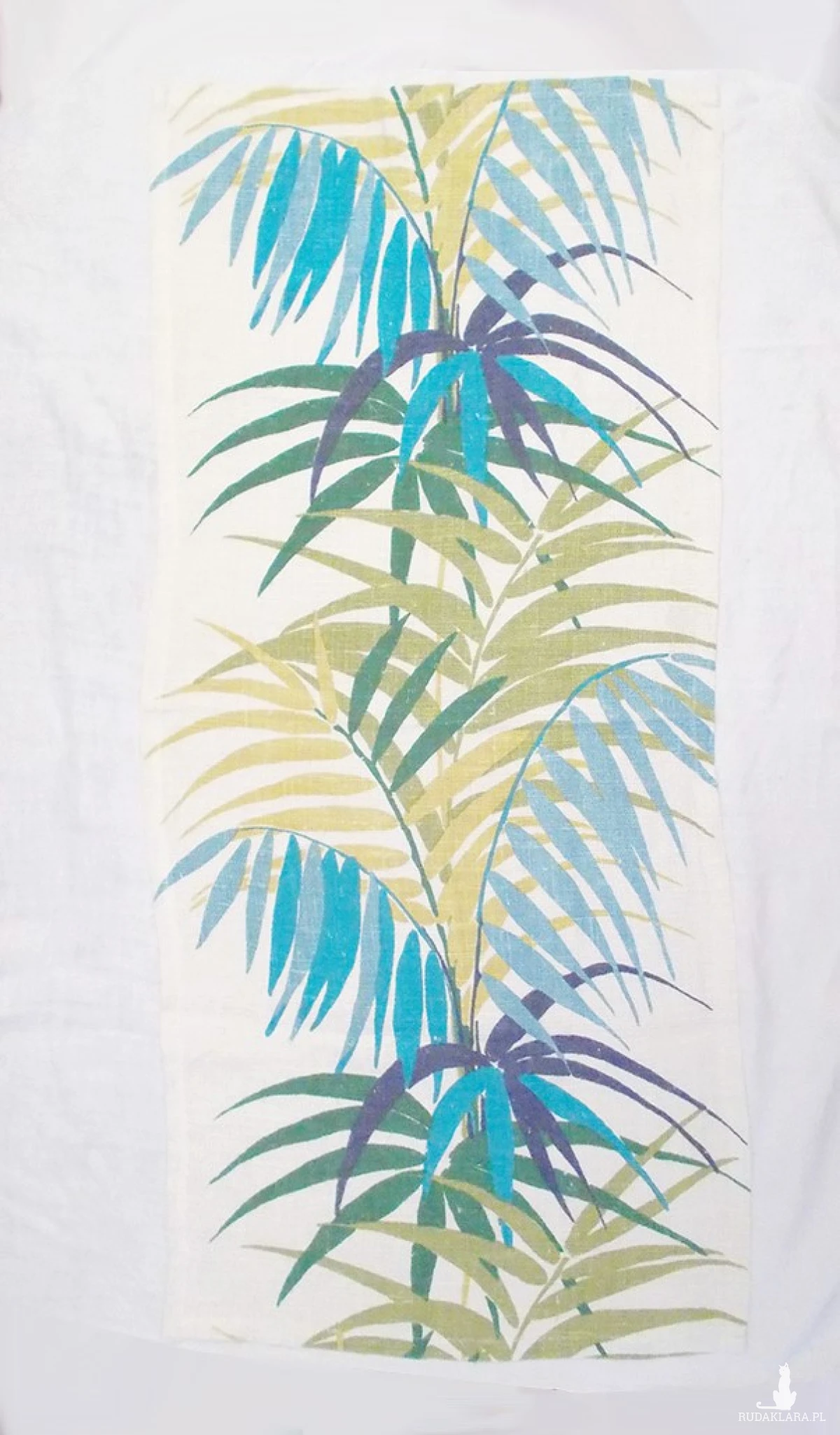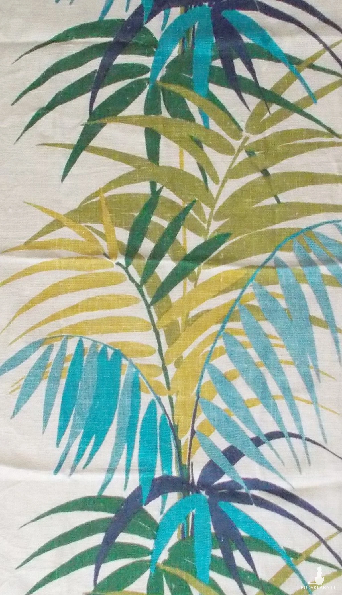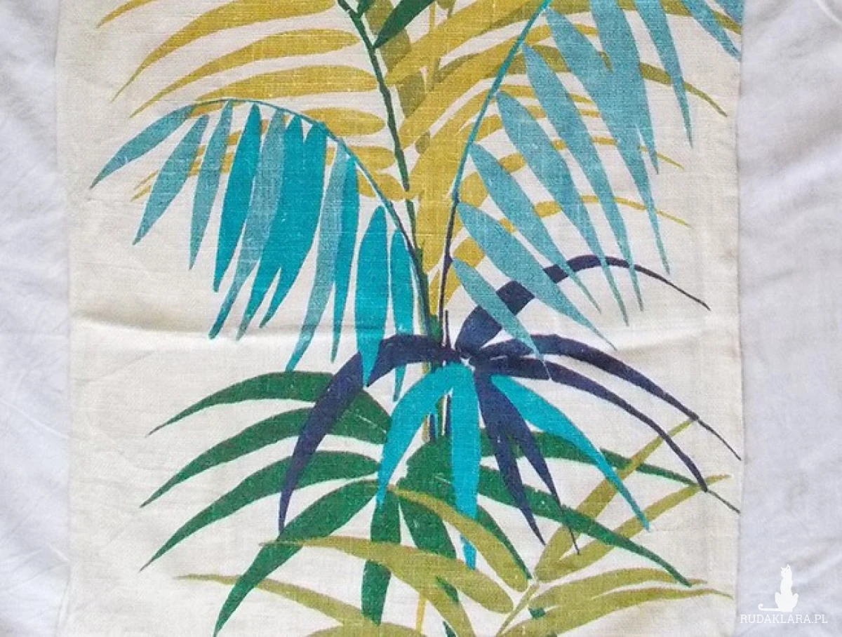 Oryginalny przedmiot vintage. Tkanina dekoracyjna z lat 60-70. Wymiary 122 cm x 55 cm. Materiał len lub juta. Zastosowanie: bieżnik na komodę lub makatka do kuchni, na ścianę do pokoju itp.. Prac w 40 stopniach.