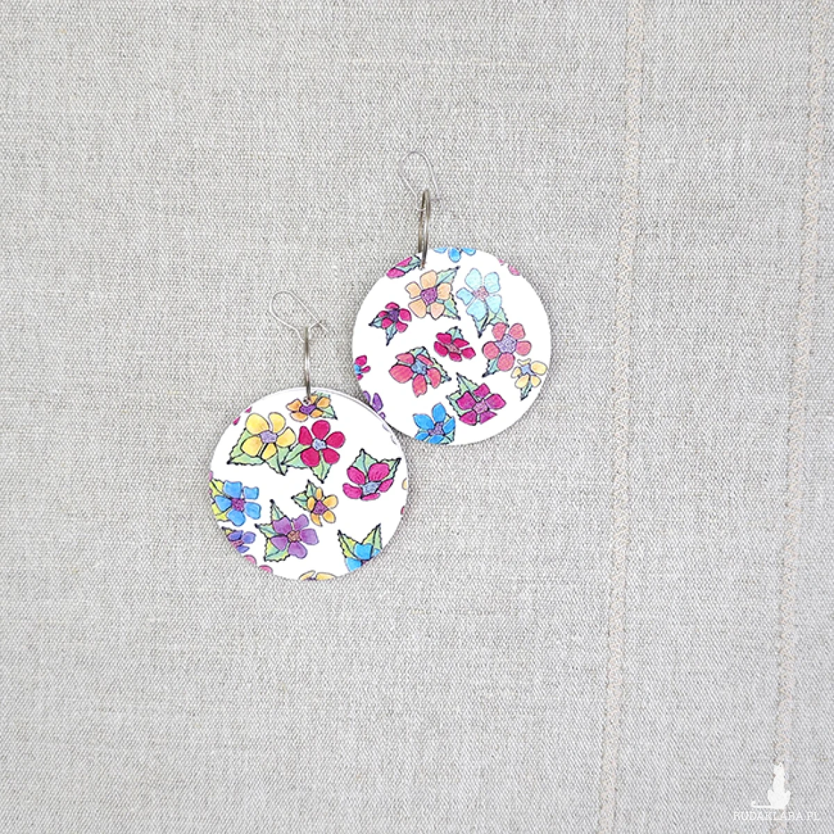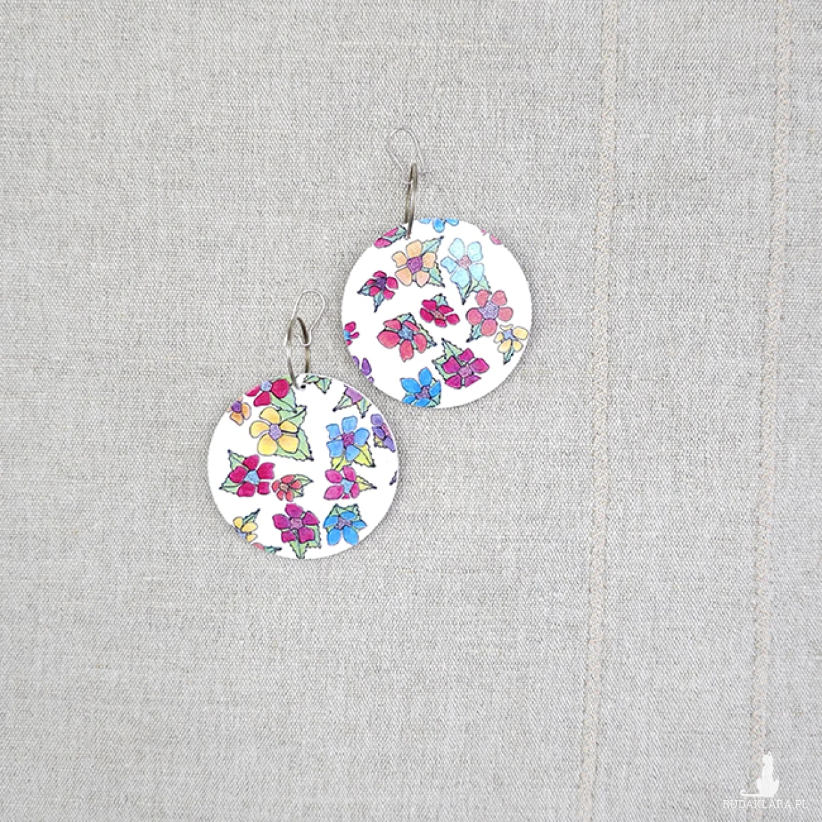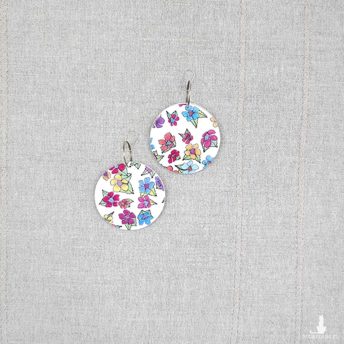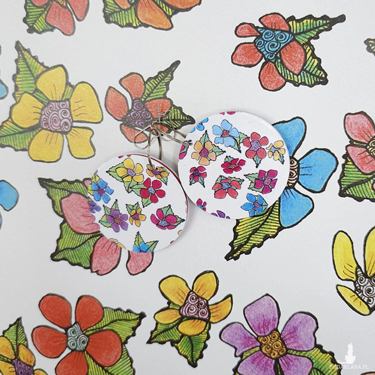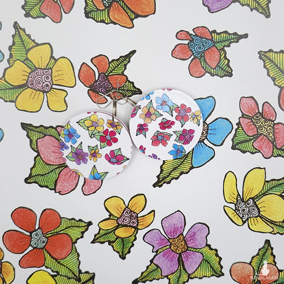 6703 kolorowe, niepowtarzalne, duże, dwustronne kolczyki; kwiaty