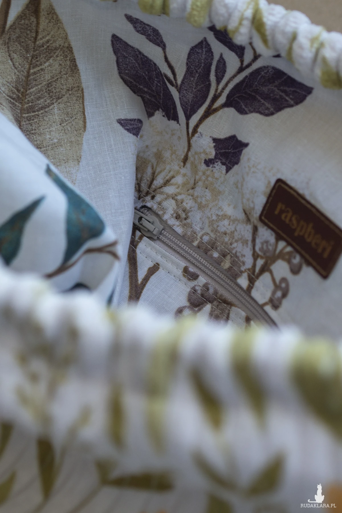 Bawełniana podszewka w kwiaty. Kieszonka w środku.