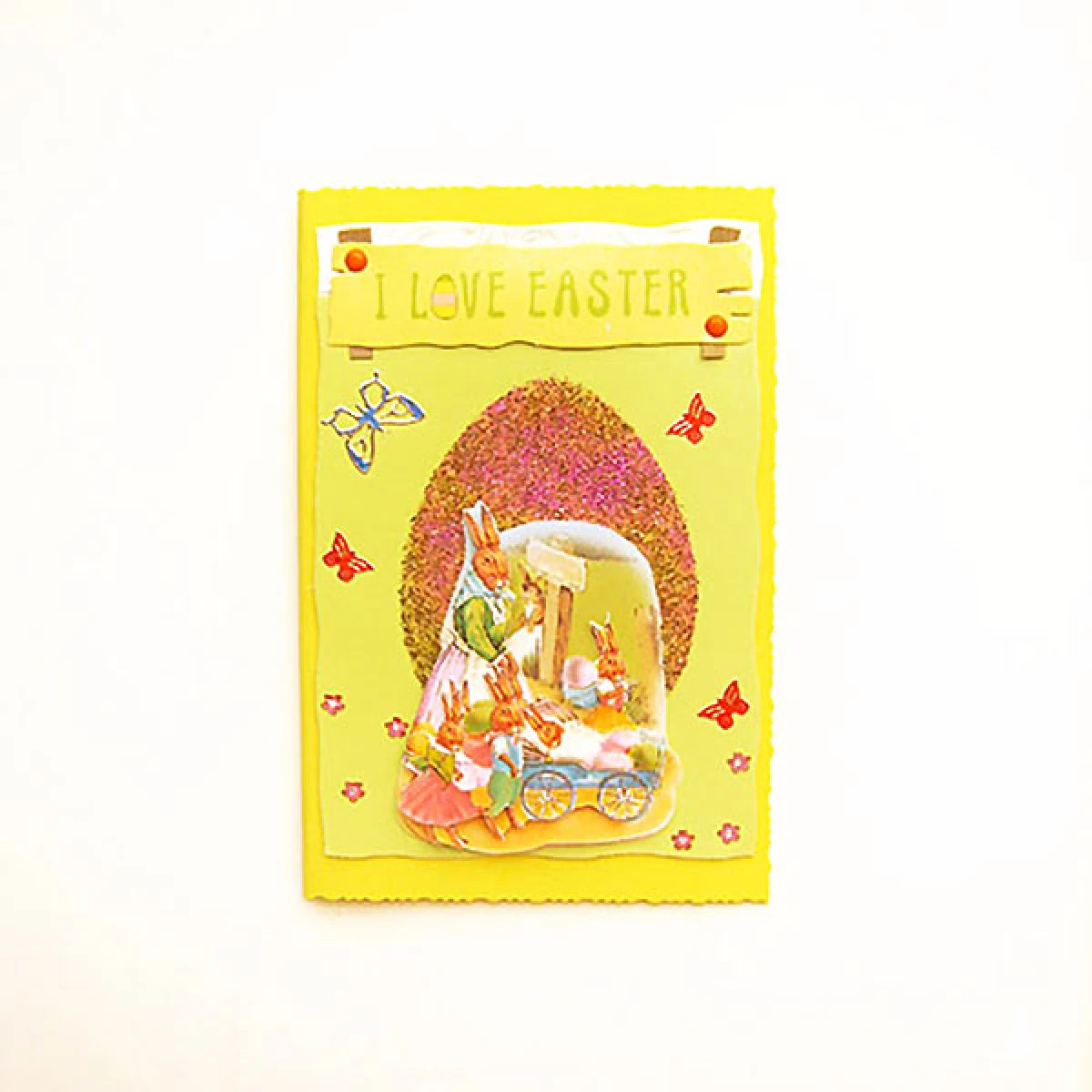 Oryginalna, otwierana kartka z okazji Wielkanocy, gruby kartonik. Świąteczny karnet jest bez życzeń. Dołączona biała koperta.