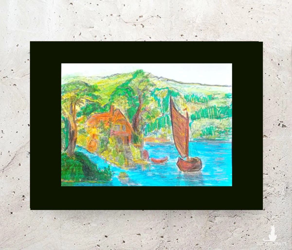 Nowy, kolorowy plakat w stylu retro. Ilustracja na czarnym kartoniku A4. Poster wystarczy tylko umieścić w ramce 21x30 cm. Grafika na ścianę do sypialni, jadalni, biura, gabinetu, salonu, pokoju dziecięcego lub młodzieżowego, kuchni, garderoby, przedpokoju, kawiarni, restauracji, herbaciarni itp. Przedmiot do dekoracji wnętrz.