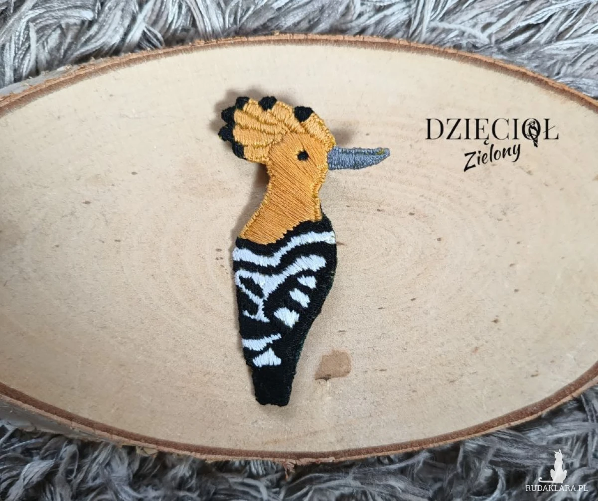 Ręcznie haftowana broszka Dudek. Idealny dodatek dla miłośników przyrody 🙂