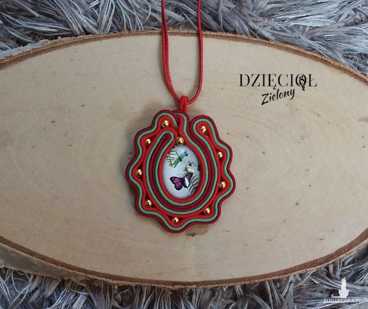 Ręcznie szyty wisiorek wykonany w technice sutasz