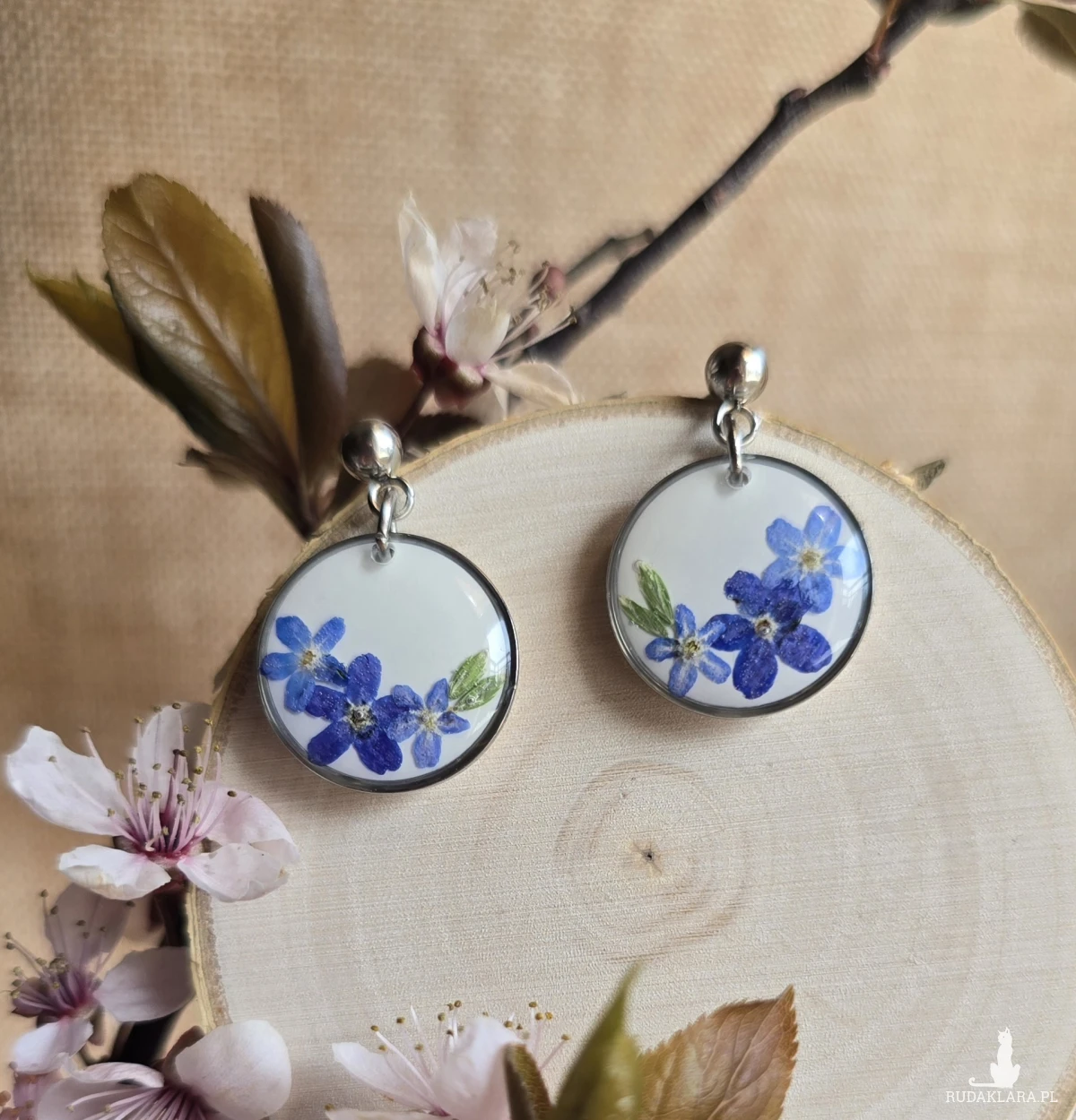 Oferuję Państwu unikalną biżuterię. Kolczyki są wykonane z suszonych kwiatów i żywicy epoksydowej. Biżuteria jest wspaniałym i oryginalnym prezentem na lata.