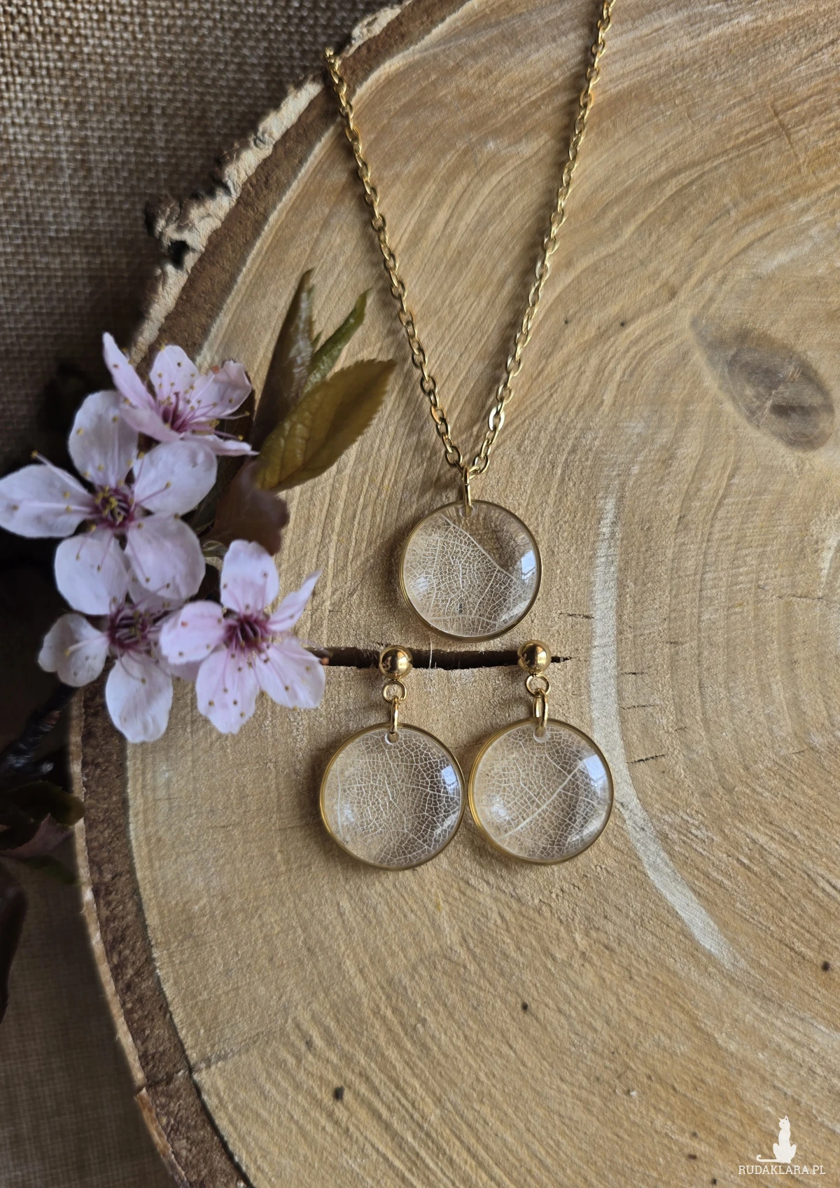 Oferuję Państwu unikalną biżuterię. Komplet jest wykonany z suszonych kwiatów i żywicy epoksydowej. Biżuteria jest wspaniałym i oryginalnym prezentem na lata.