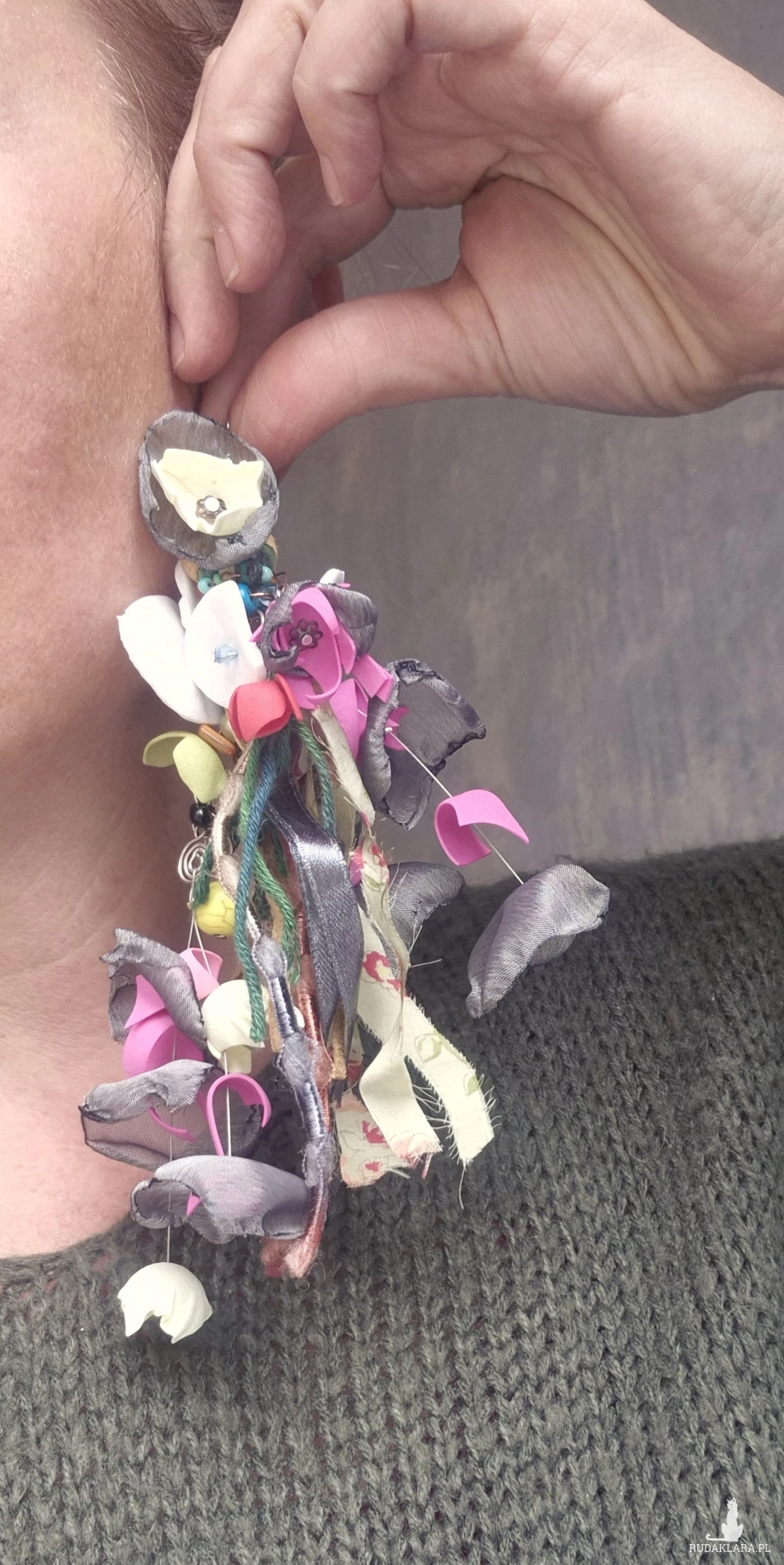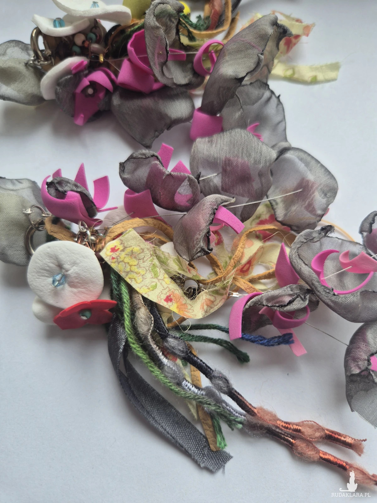 Kolczyki boho totalnie zwariowane bogate z nitek sznurków koralików kwiatów trzeba lubić takie szaleństwo są lekkie