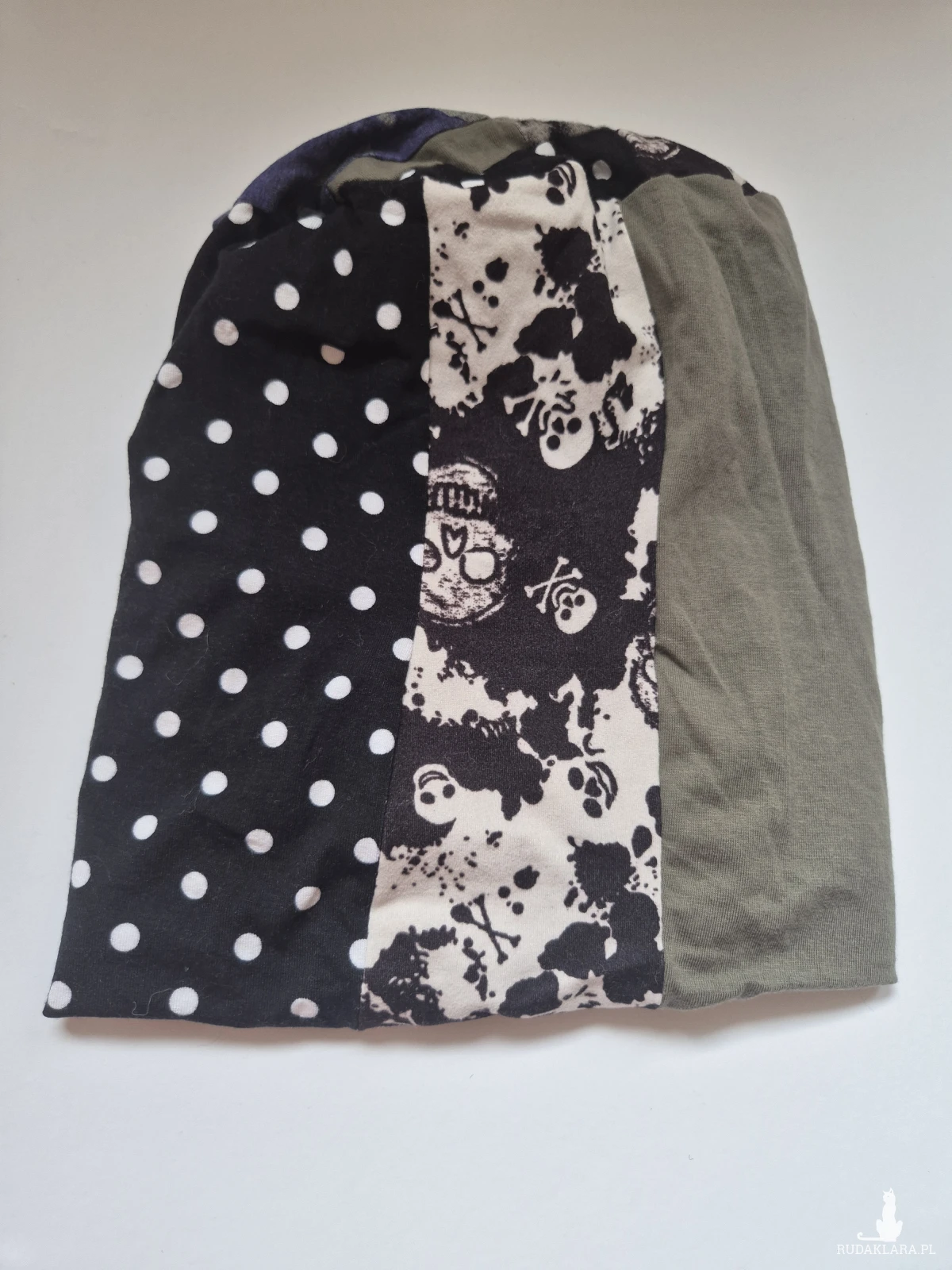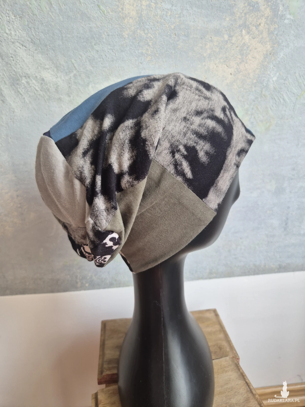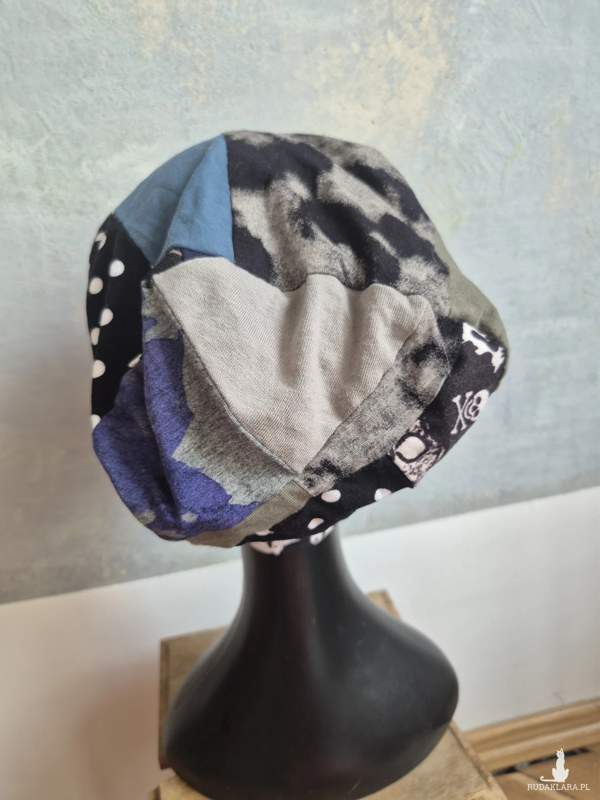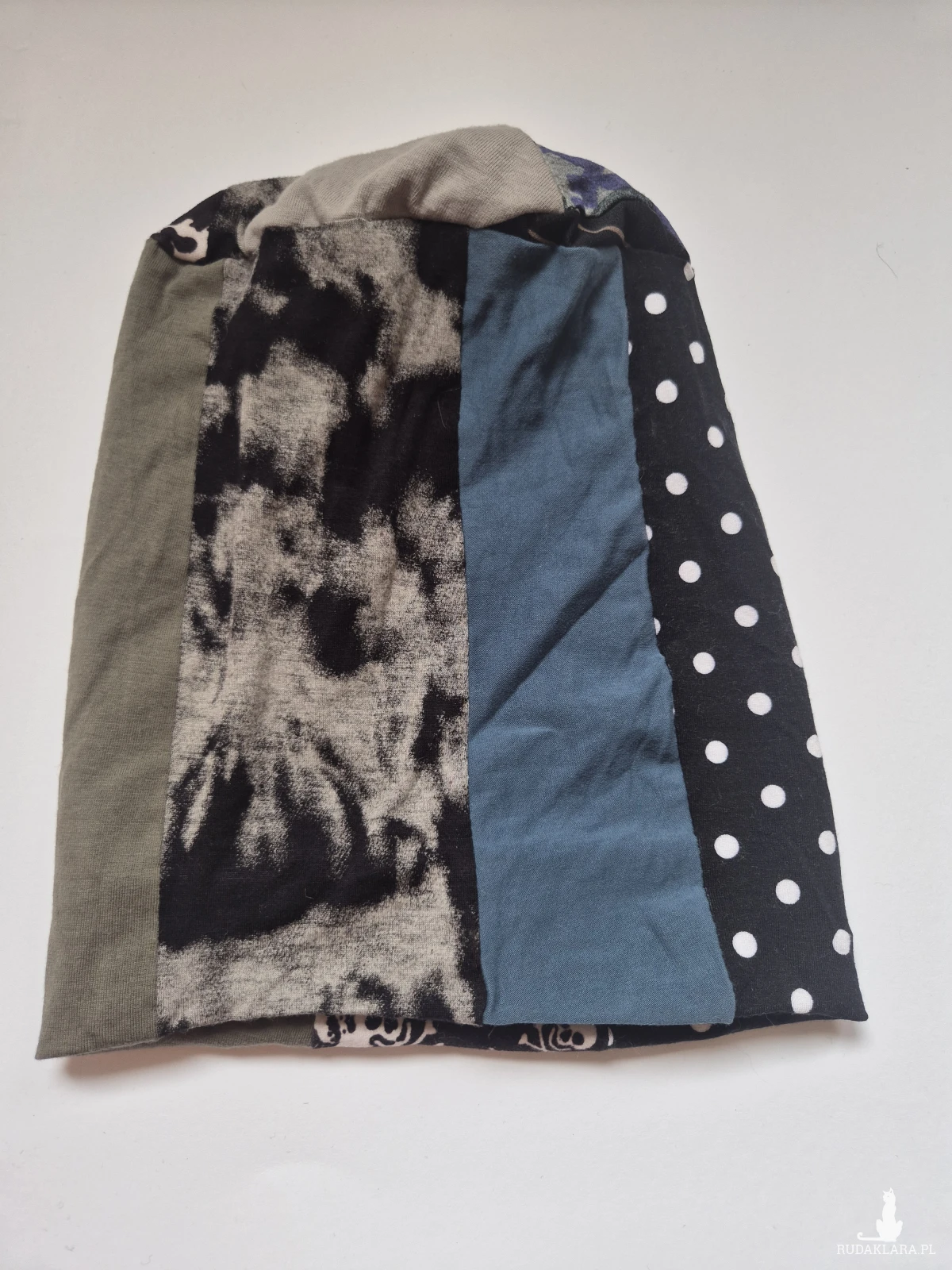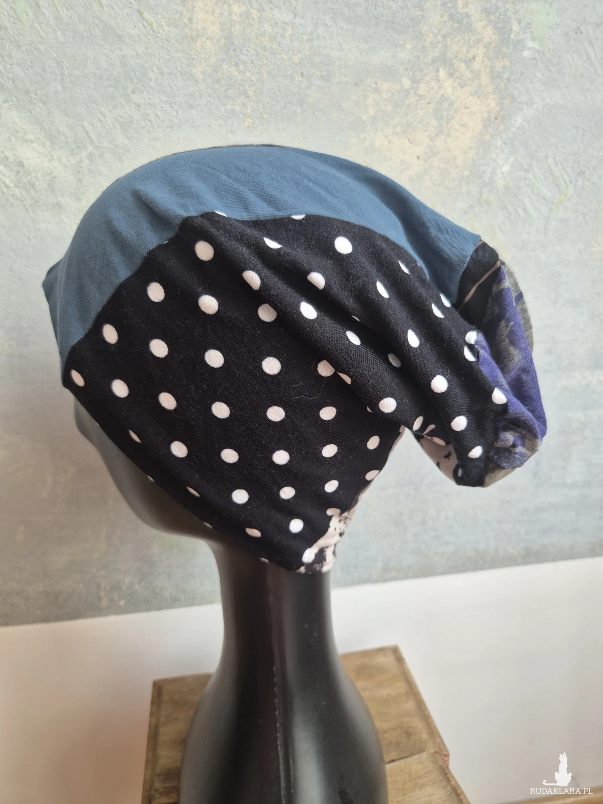 Czapka patchworkowa smerfetka wiosenna uniwersalna na podszewce świetna na codzienne noszenie, świetna na nadmorski wiatr, polecam rekodzielo rudaklara box m1