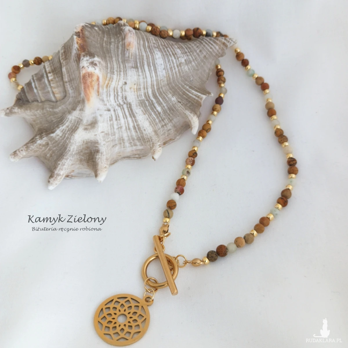 biżuterii wykorzystano kuleczki matowego jaspisu krajobrazowego o